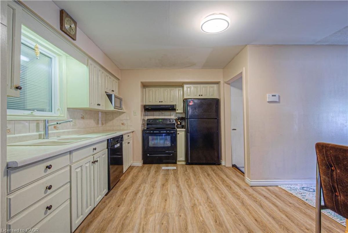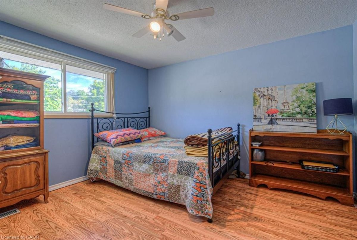 Beautiful family home nestled in a well-established neighborhood, just steps from bus stops, grocery stores, schools, parks, and with easy access to highways. Close to shopping, restaurants, and countless amenities. A short 4-minute drive or convenient 12-minute bus ride to Conestoga College Doon Campus. This charming 2-storey home offers 4 bedrooms, including a main floor bedroom and full bathroom. A spacious den/office provides the flexibility to be converted into an additional bedroom. The second floor features a spacious master bedroom with an oversized Jack-and-Jill washroom, along with two additional bedrooms. The basement offers a finished area and has potential for an in-law suite. The driveway accommodates up to 4 vehicles, and the large fully fenced backyard features landscaping, a storage shed, and a cozy back porch. An addition was completed in 2000, with numerous updates including: Kitchen & Basement Recreation Room (2021), Laminate Flooring (2022), Furnace (2021), Air Conditioner (2021), and Roof (2012). Perfect for multi-generational living or investors, this property offers separate dwelling potential with dual entrances.