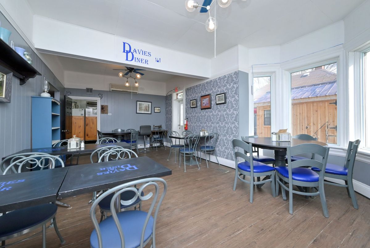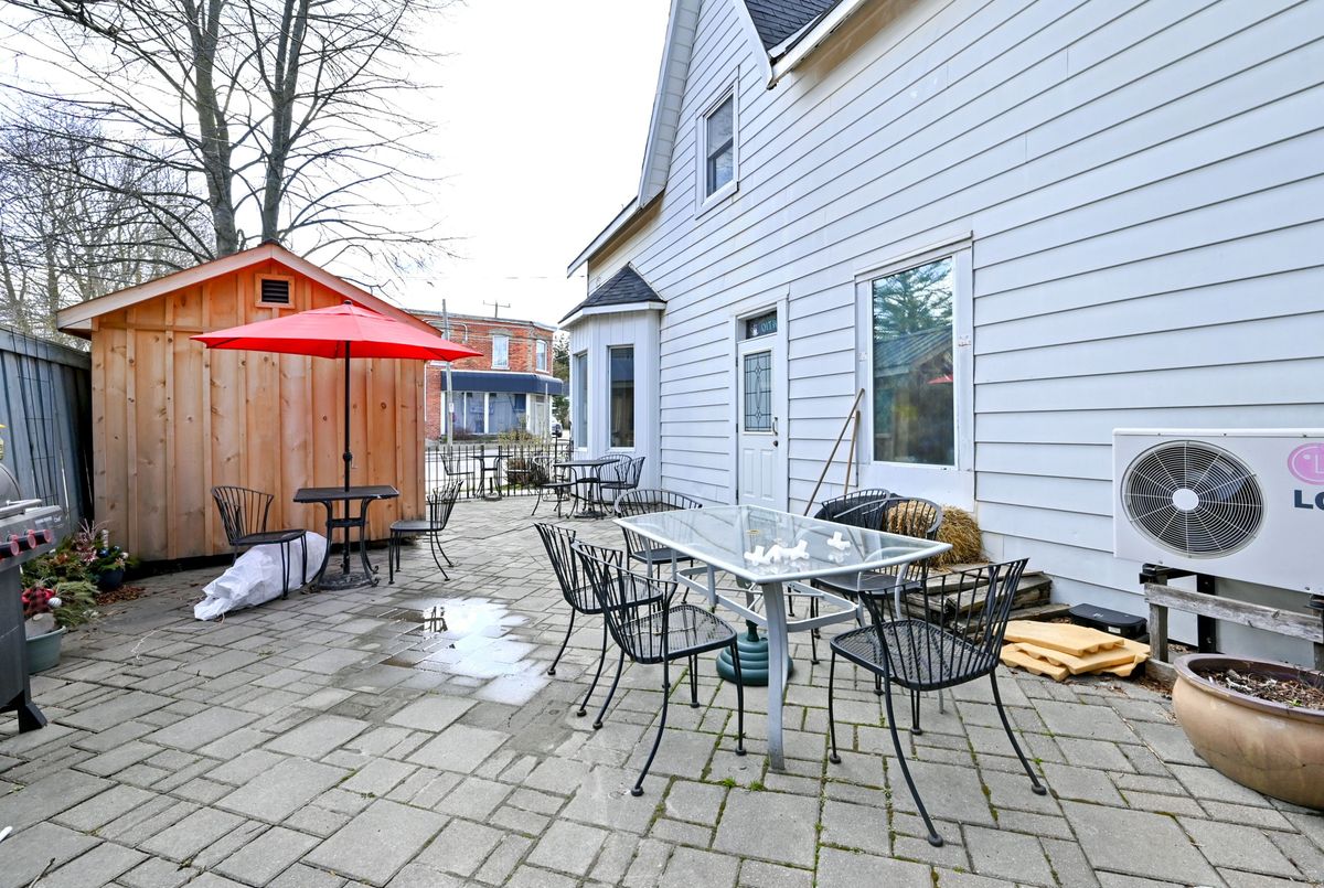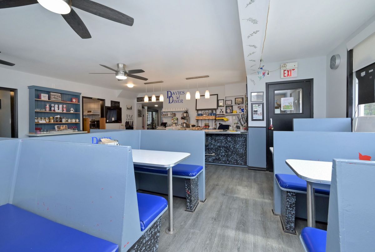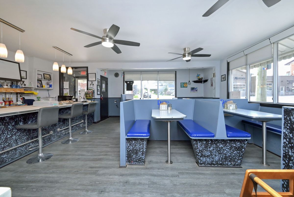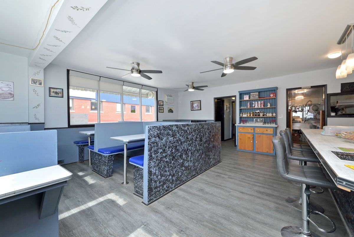 Excellent opportunity to be your own boss in this multi use commercial/residential building. High profile location on busy Main Street Grand Valley. Bring your ideas and imagination. Ideal for laundry, restaurant, retail store, gym and so much more. Lots of parking on street. Easy access to major highways. Previously operated as a Family Diner but easily adaptable to your specific needs and ideas. All restaurant equipment (on site) and chattels included. Upper level has two bedrooms and a 4 piece bath and laundry facilities. New furnace in december 2024. Small wired building in side yard was used for ice cream sales. Outside storage buildings. Main Floor features diner area, dining room, cook area and prep area and 2 -2 piece baths. Well maintained. Ideal set up for upper level living space to live and work from home. Private building parking (2).