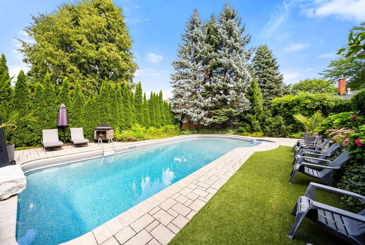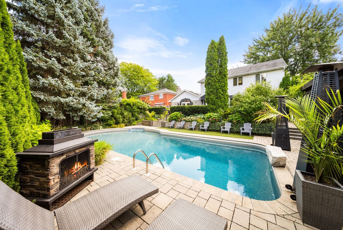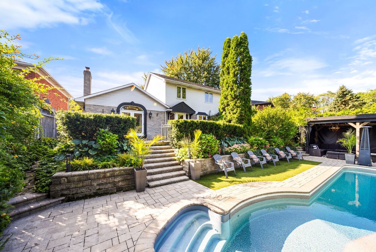 Entertainers Dream in Prestigious Ancaster. Welcome to this exceptional residence in one of Ancasters most sought-after neighbourhoods. From its striking curb appeal with mature landscaping, stone walkway and double interlock driveway, to its resort-inspired backyard oasis, this home offers elegance, comfort and entertainment. A thoughtfully designed floor plan showcases hardwood flooring, wood staircase, wall panelling, upgraded lighting, French doors, crown molding & LED potlights throughout. The gourmet custom kitchen is the heart of the home, boasting granite counters, Sub-Zero fridge, Miele gas convection oven, speed oven/microwave, built-in coffee/espresso machine, LG dishwasher, and dinette. It opens to a vaulted Great Room with skylight, gas fireplace, custom built-ins and patio doors with transom window leading to the deck for al fresco dining. An elegant dining room flows into the living room with views of the private yard. A main-level office/den and convenient laundry room complete the main level. Upstairs, the primary retreat features double closets, custom walk-in dressing room and a stunning 5-pc ensuite with Bain Ultra air jet tub, heated floors and premium finishes. Two additional bedrooms share another 5-pc bath. The fully finished lower level, with separate entrance and oak staircase, offers a recreation area with gas fireplace, 4th bedroom, and beautifully updated 5-piece bath. The private backyard paradise is the showstopperprofessionally landscaped and designed for entertaining. Enjoy a 20x40 saltwater Martinique pool (new liner 2025, upgraded equipment 20222023), hot tub, 2 outdoor fireplaces, covered cabana with 30 custom wet bar, deck, stone patio, irrigation and landscape lighting. Additional highlights: double garage with epoxy flooring and built-in shelving, Broan central vac, custom closet organizers & more. This home truly has it allsophisticated interiors, a backyard paradise and a prime Ancaster location.