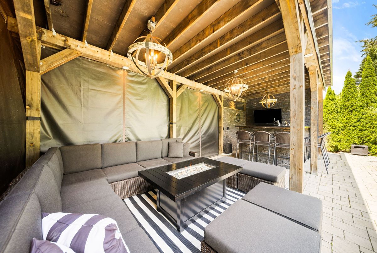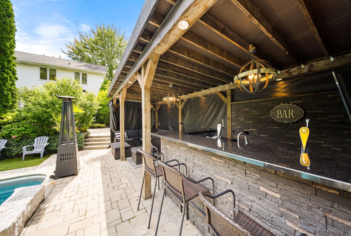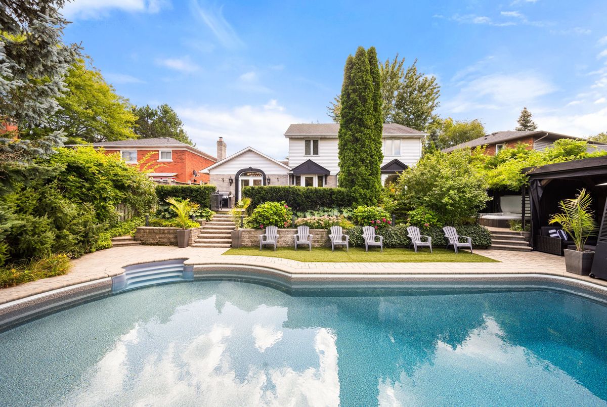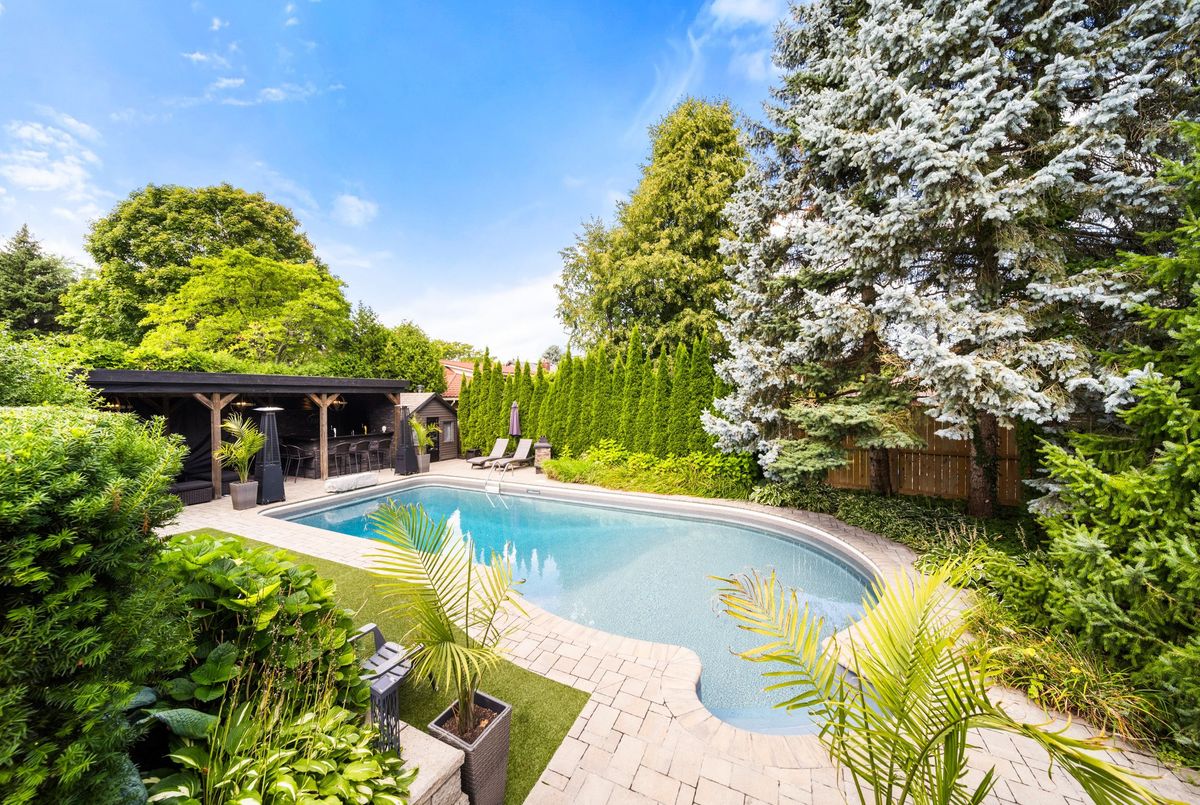 Entertainers Dream in Prestigious Ancaster. Welcome to this exceptional residence in one of Ancasters most sought-after neighbourhoods. From its striking curb appeal with mature landscaping, stone walkway and double interlock driveway, to its resort-inspired backyard oasis, this home offers elegance, comfort and entertainment. A thoughtfully designed floor plan showcases hardwood flooring, wood staircase, wall panelling, upgraded lighting, French doors, crown molding & LED potlights throughout. The gourmet custom kitchen is the heart of the home, boasting granite counters, Sub-Zero fridge, Miele gas convection oven, speed oven/microwave, built-in coffee/espresso machine, LG dishwasher, and dinette. It opens to a vaulted Great Room with skylight, gas fireplace, custom built-ins and patio doors with transom window leading to the deck for al fresco dining. An elegant dining room flows into the living room with views of the private yard. A main-level office/den and convenient laundry room complete the main level. Upstairs, the primary retreat features double closets, custom walk-in dressing room and a stunning 5-pc ensuite with Bain Ultra air jet tub, heated floors and premium finishes. Two additional bedrooms share another 5-pc bath. The fully finished lower level, with separate entrance and oak staircase, offers a recreation area with gas fireplace, 4th bedroom, and beautifully updated 5-piece bath. The private backyard paradise is the showstopperprofessionally landscaped and designed for entertaining. Enjoy a 20x40 saltwater Martinique pool (new liner 2025, upgraded equipment 20222023), hot tub, 2 outdoor fireplaces, covered cabana with 30 custom wet bar, deck, stone patio, irrigation and landscape lighting. Additional highlights: double garage with epoxy flooring and built-in shelving, Broan central vac, custom closet organizers & more. This home truly has it allsophisticated interiors, a backyard paradise and a prime Ancaster location.