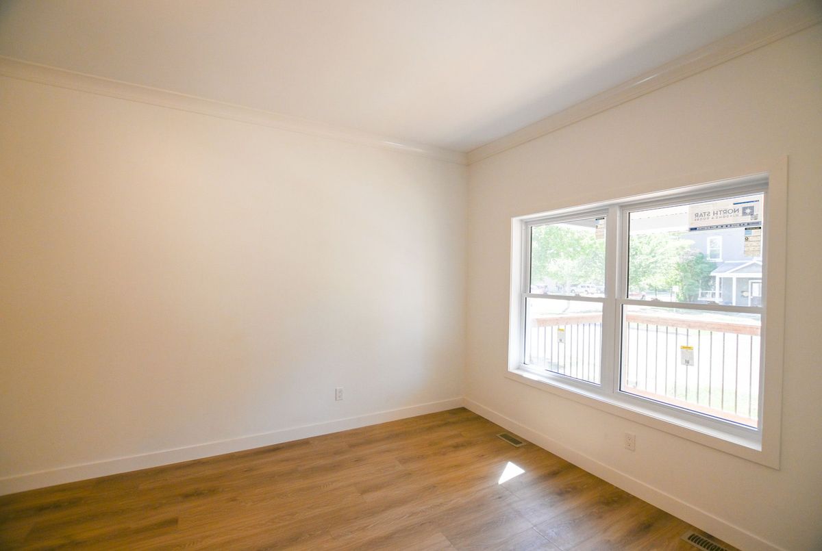 Super Cute . Completely re done back to the studs. This 2 bed 1 bath is bright airy and surprisingly large on the inside and one of the few that has a parking spot. This is a really affordable home.Everything is new and modern. The basement is full height and would easily accommodate further living space. Walking distance to schools, churches and shopping. Suit first time buyer, retirement or empty nester. No repairs and zero worries with even a small garden for those craving out door space or sit on the large front deck and watch the world go by. Taxes will be re assessed now the building is complete