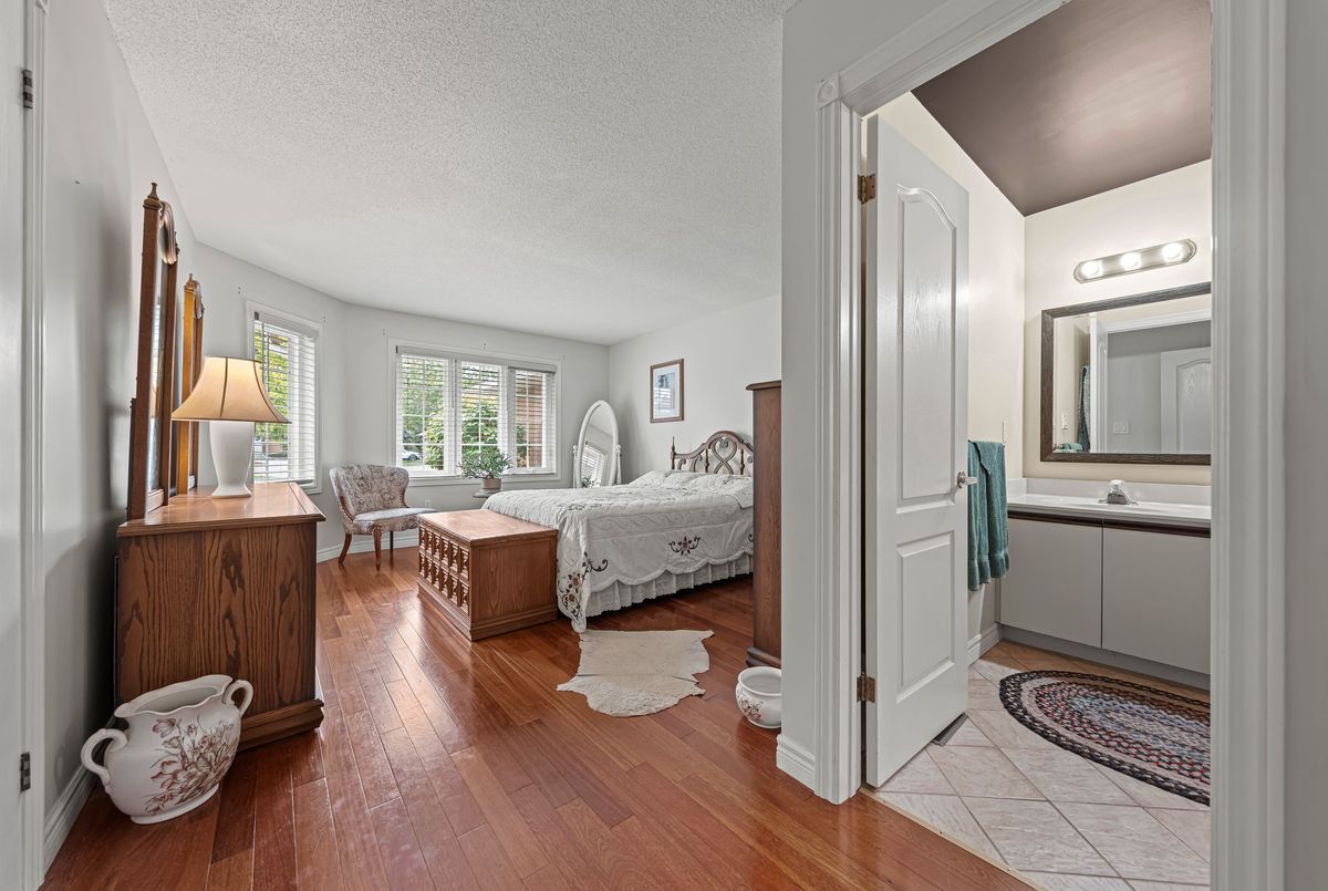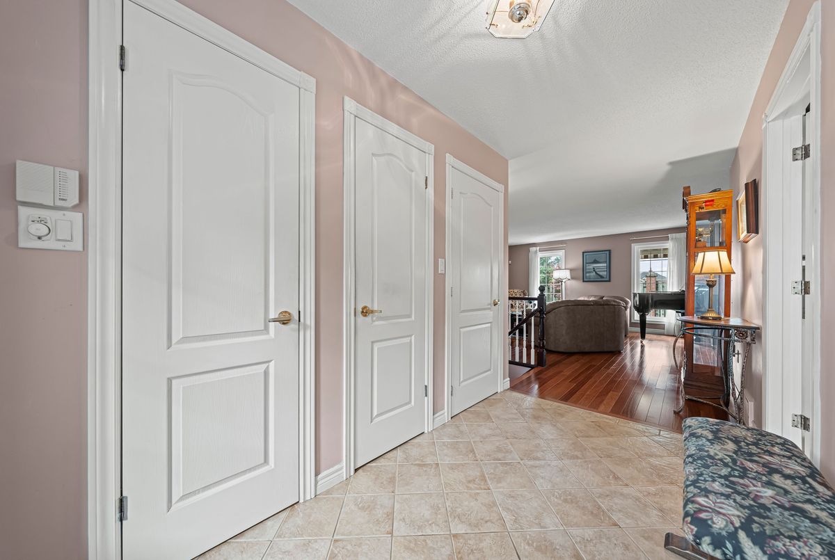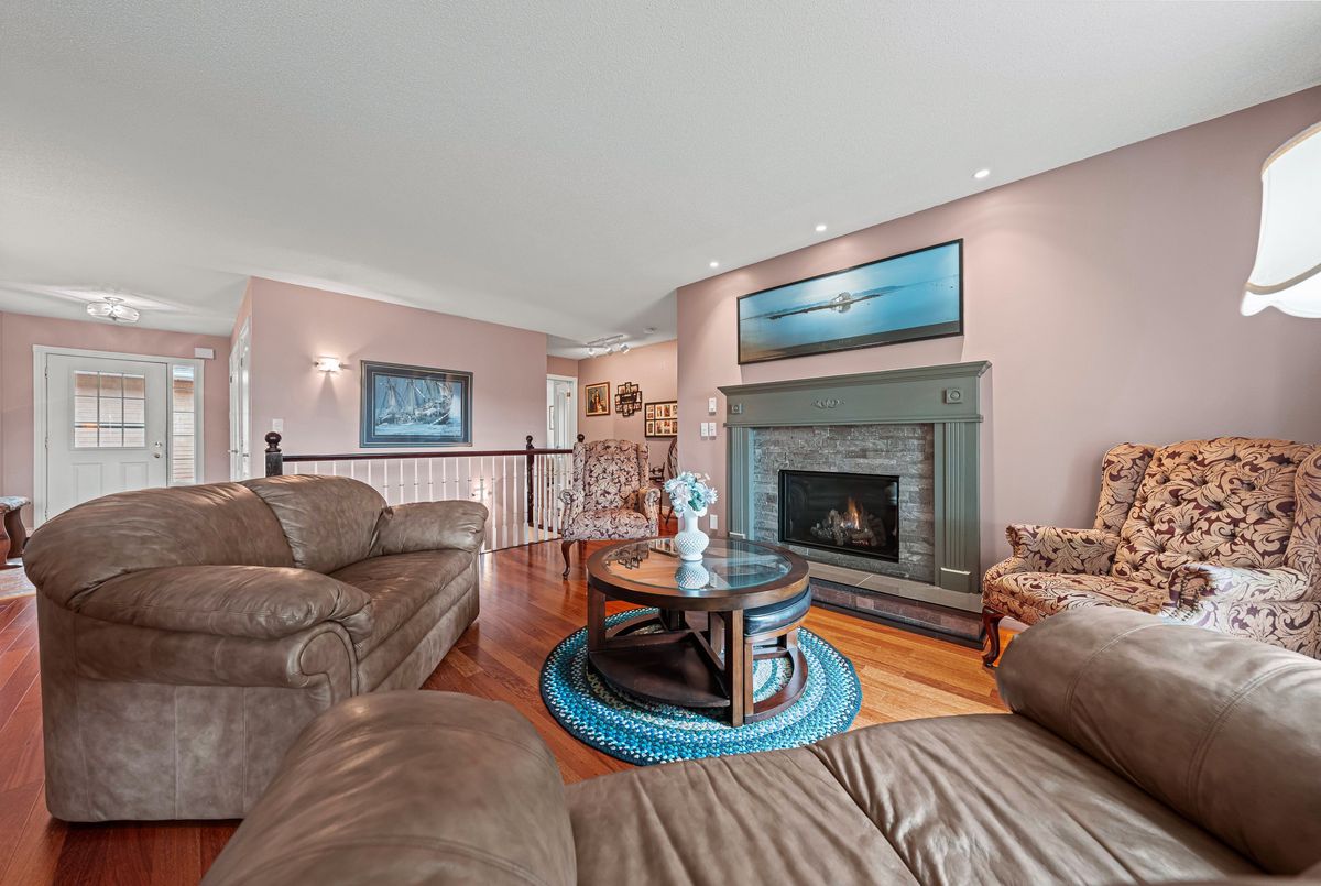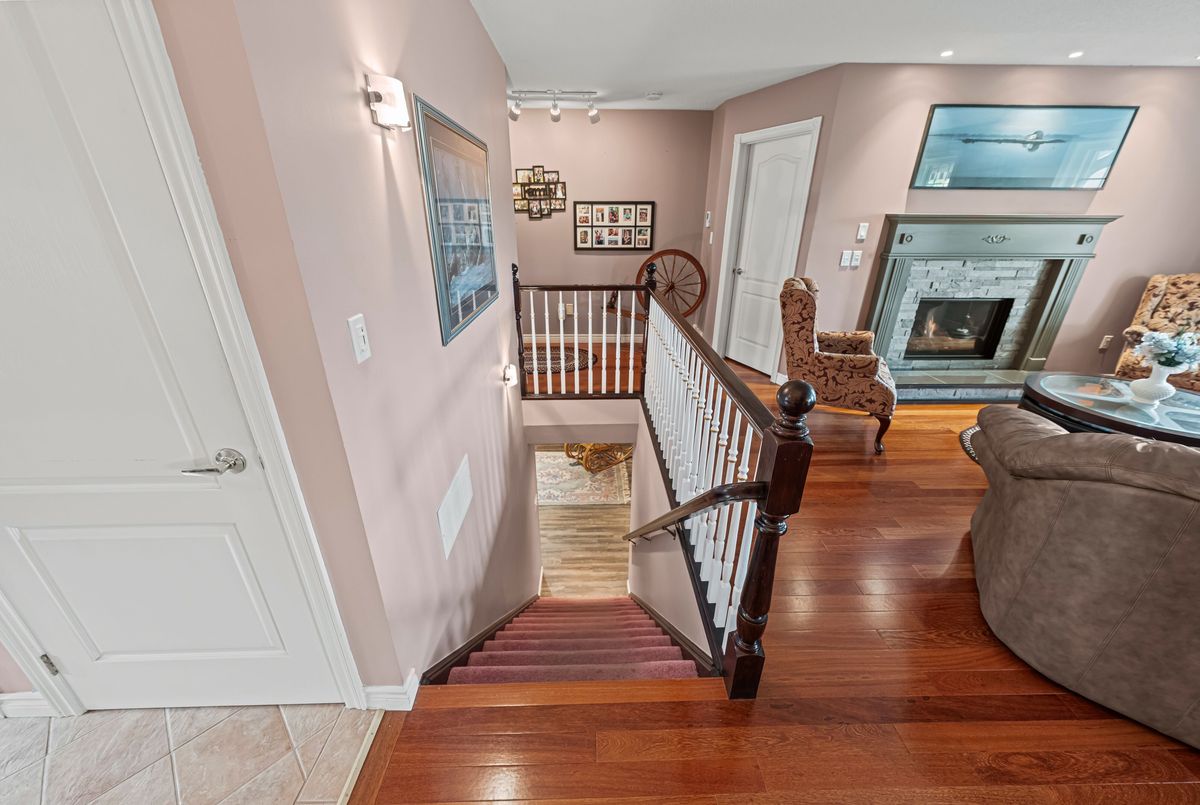 This beautifully upgraded home offers premium comfort, energy efficiency, and true pride of ownership throughout. Nearly every system and space has been thoughtfully improved - making it a rare, move-in-ready gem. Enjoy enhanced insulation (R60) and sealed exterior wall penetrations, reducing energy costs and increasing year-round comfort. Extensive improvements to both electrical and plumbing systems, along with a home-owned water heater and softener for added peace of mind. The completely finished basement offers incredible flexibility and luxury, featuring a third full bathroom, games room, hobby room, workshop, freezer room, and storage area. A spacious entertainment/family room, office with built-in library, and dedicated utility space round out the lower level - equipped with a high-efficiency natural gas furnace, electrostatic filter, central A/C, central vac, and full cabling for Wi-Fi/telephone.Upstairs, relax by the rebuilt fireplace, and enjoy the high-efficiency direct-vent gas stove, tiled hearth, and pot lighting. The primary ensuite has been completely renovated with a walk-in shower, built-in linen closet, and updated vanity lighting. The kitchen has been tastefully refreshed with a built-in microwave, repurposed cabinetry, and improved ventilation. Interior painting completed in 2017 and basement freshly painted August 2025. Step outside to a maximum-width deck (2019) with a motorized, wind-sensing retractable awning, resealed front patio and walkway, and a decorative stone border around the foundation. The beautifully groomed gardens and walkways complete this picture-perfect property. This home blends comfort, function, and style, with every detail carefully considered, and though not the largest, it is easily one of the most elegantly and tastefully appointed units in the community.