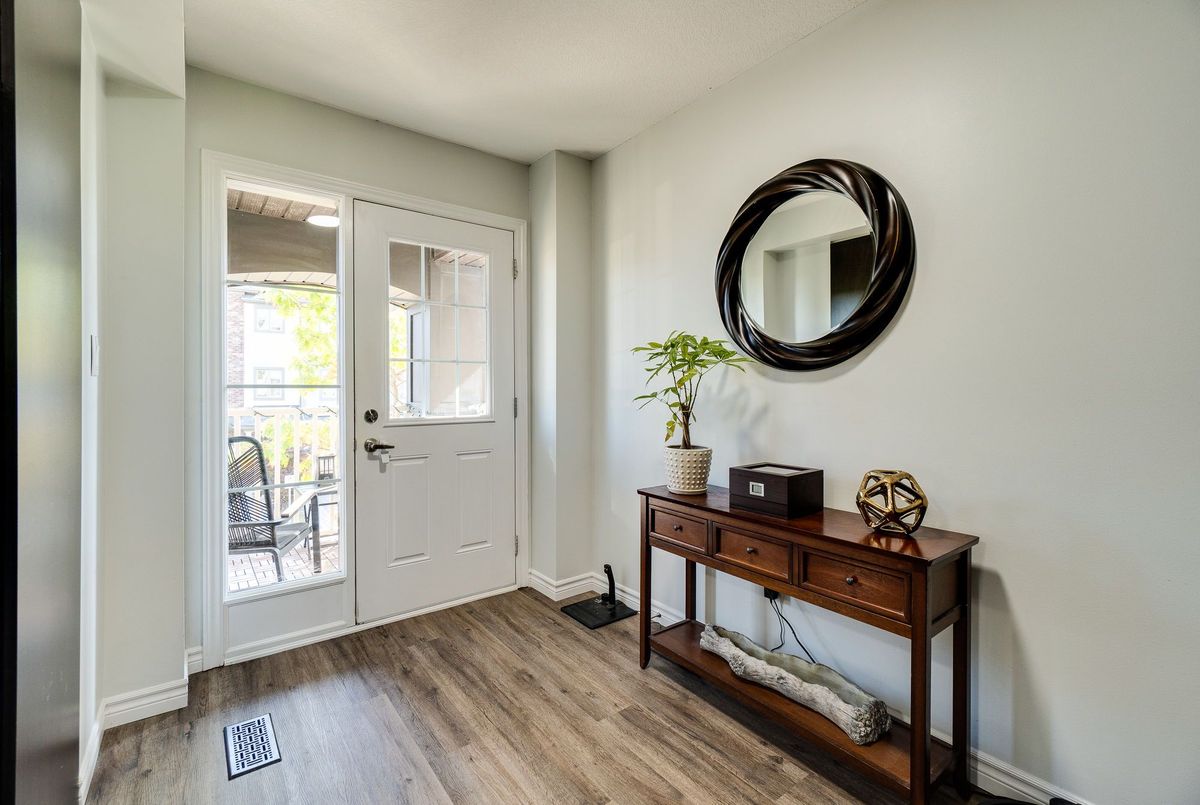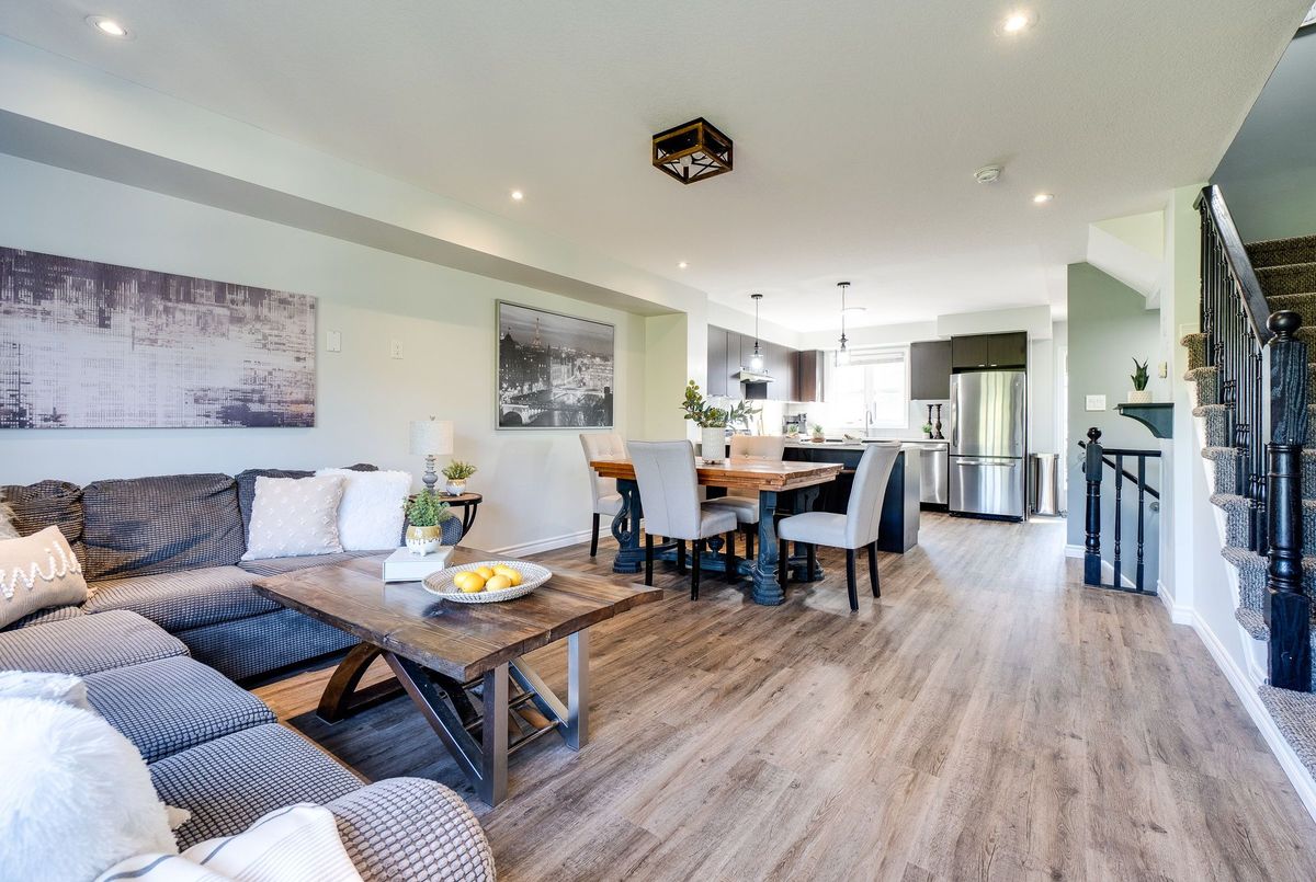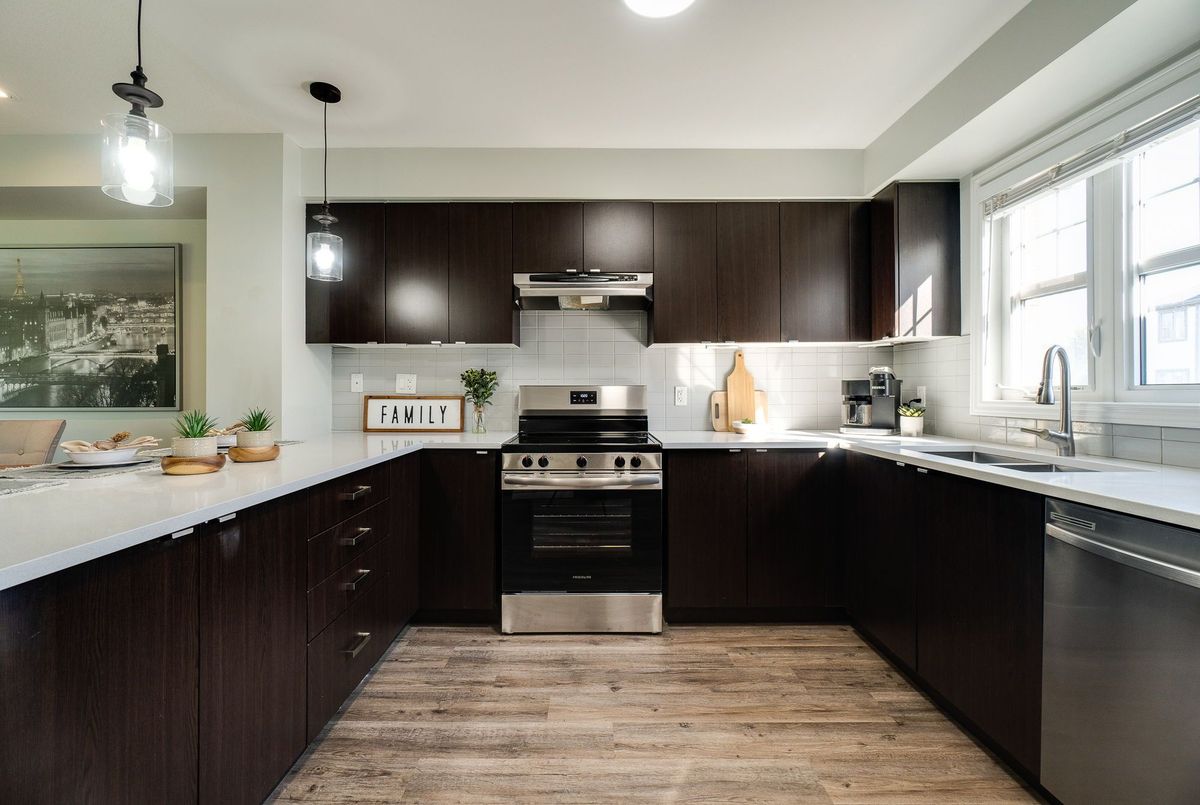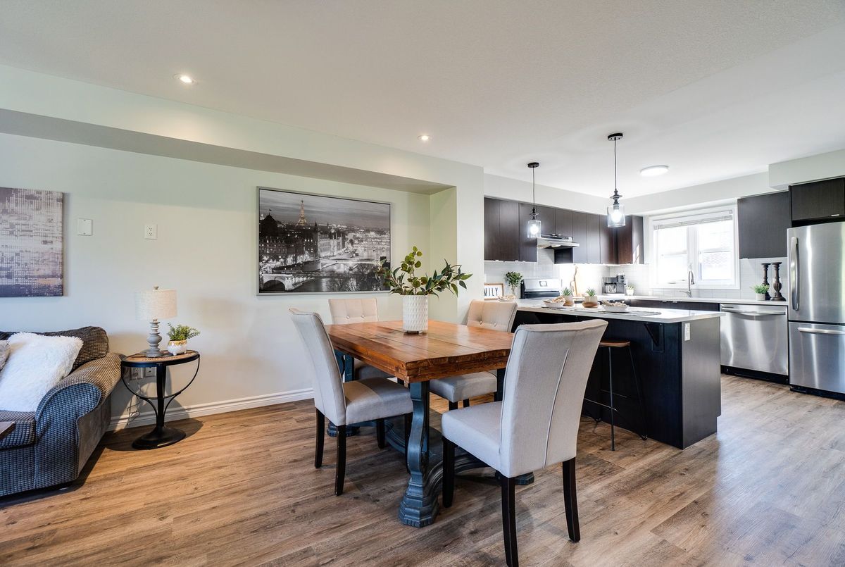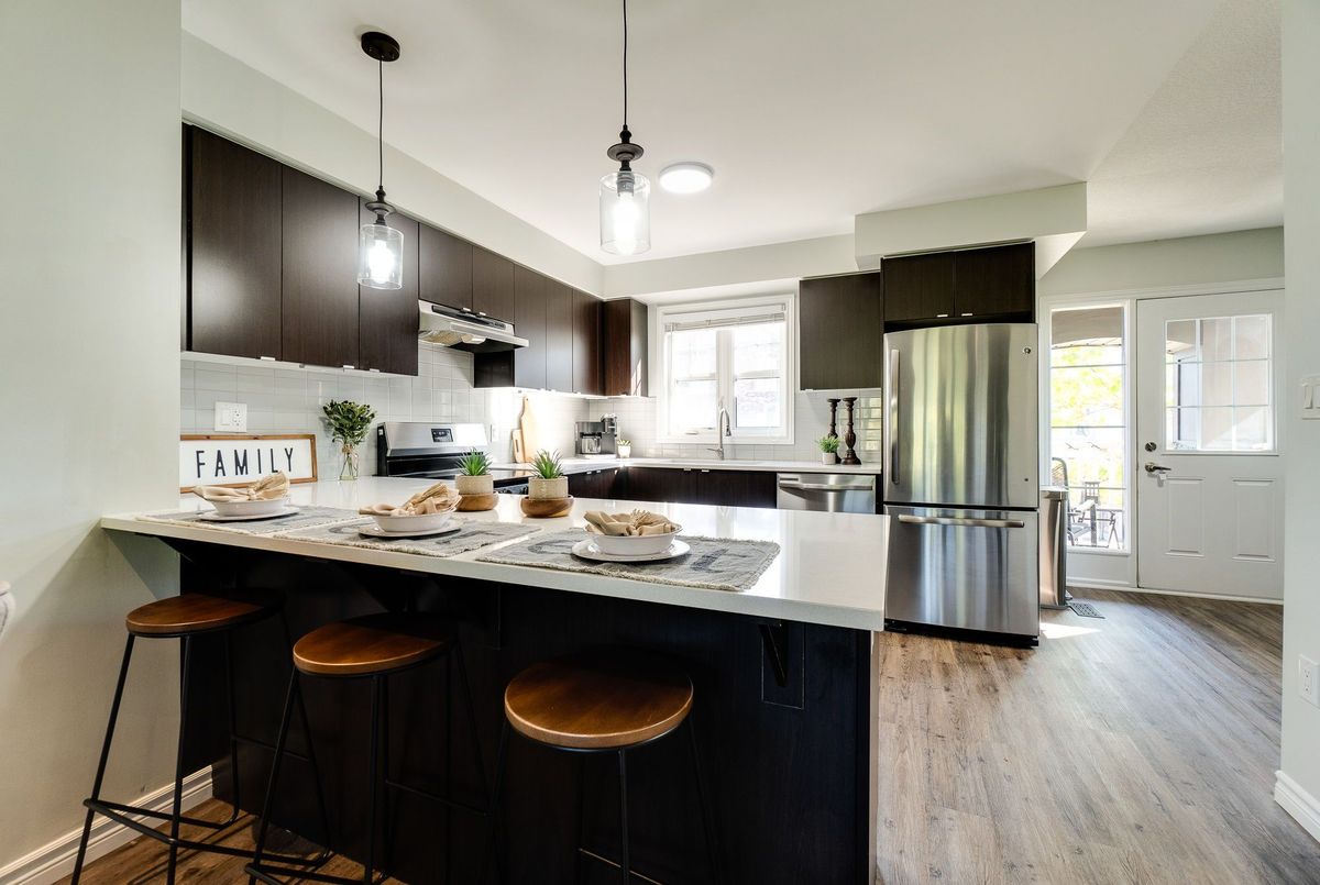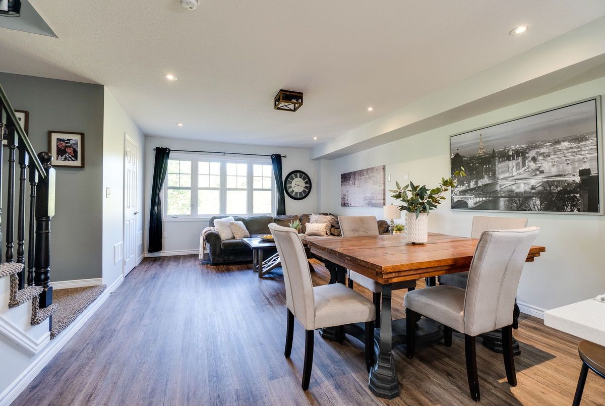 This updated freehold townhouse in the desirable Country Hills/Alpine Village area of West Kitchener is move-in-ready and offers the perfect blend of comfort, convenience, and value. Ideal for first-time buyers, young professionals, downsizers, or investors, the home features low condo fees, a private backyard, and no rear neighbours for added privacy. Inside, the main floor welcomes you with a bright kitchen complete with new quartz countertops, a breakfast bar, new faucet, double stainless steel sinks, and a brand-new stove. From the breakfast area, enjoy your morning coffee while watching the sunrise from the covered balcony. The spacious living and dining room, featuring all new modern luxury vinyl flooring, is perfect for family living and entertaining. Upstairs, you'll find three generous bedrooms, including a primary with a walk-in closet, along with the convenience of upper in-suite laundry. The above-grade finished lower level adds valuable living space, ideal for use as a family room, home office, or guest suite, with direct access to the single-car garage and patio doors leading to the deck and yard. The fourth level offers a bathroom rough-in and tons of storage. Outdoors, enjoy your own private yard perfect for kids, pets, or hosting summer barbecues. The home has been professionally updated and is ready for you to unpack and settle in. This location is a highlight, with steps to McLennan Park, the Hydro Path, and Activa Sportsplex, plus quick access to Conestoga College, the LRT, Highway 401, and essential shopping. The community is family-friendly and offers excellent recreation and transit options. 4th level unfinished basement includes bonus room and rough-in for bathroom and lots of storage.