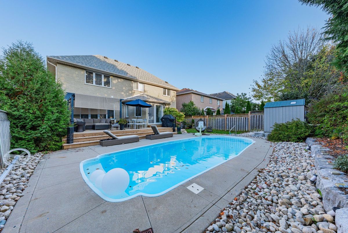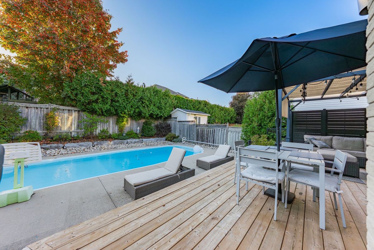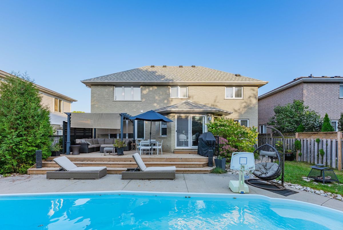 Welcome to your turn-key dream home in Cambridge! This stunning 4+1 bedroom, 4 bathroom property combines modern design with exceptional functionality, offering everything todays family could want. Inside, youll find tile and hardwood flooring throughout, with quartz countertops featured in the kitchen and all bathrooms. A custom, oversized walk-in closet adds luxury and convenience to your primary suite. The fully finished basement extends your living space with an additional bedroom, full bathroom, large recreation room, wet bar, and office. Step outside to your backyard oasis. The heated fiberglass, liner-free pool features a 9ft deep end and 4ft shallow end, perfect for both relaxing and entertaining. The surrounding deck, was updated just two years ago, Mature trees provide a natural backdrop, creating a peaceful and secluded atmosphere.. The garage has been upgraded with epoxy flooring, custom paneling, cabinets and ceiling lights - completed last year at a cost of over $10K. This home truly checks all the boxes - modern finishes, functional design, and a luxurious backyard oasis ready to enjoy. Conveniently located in one of Cambridges most desirable neighborhoods, close to schools, parks, shopping, just minutes to Highway 401, and all amenities. Book your showing today!