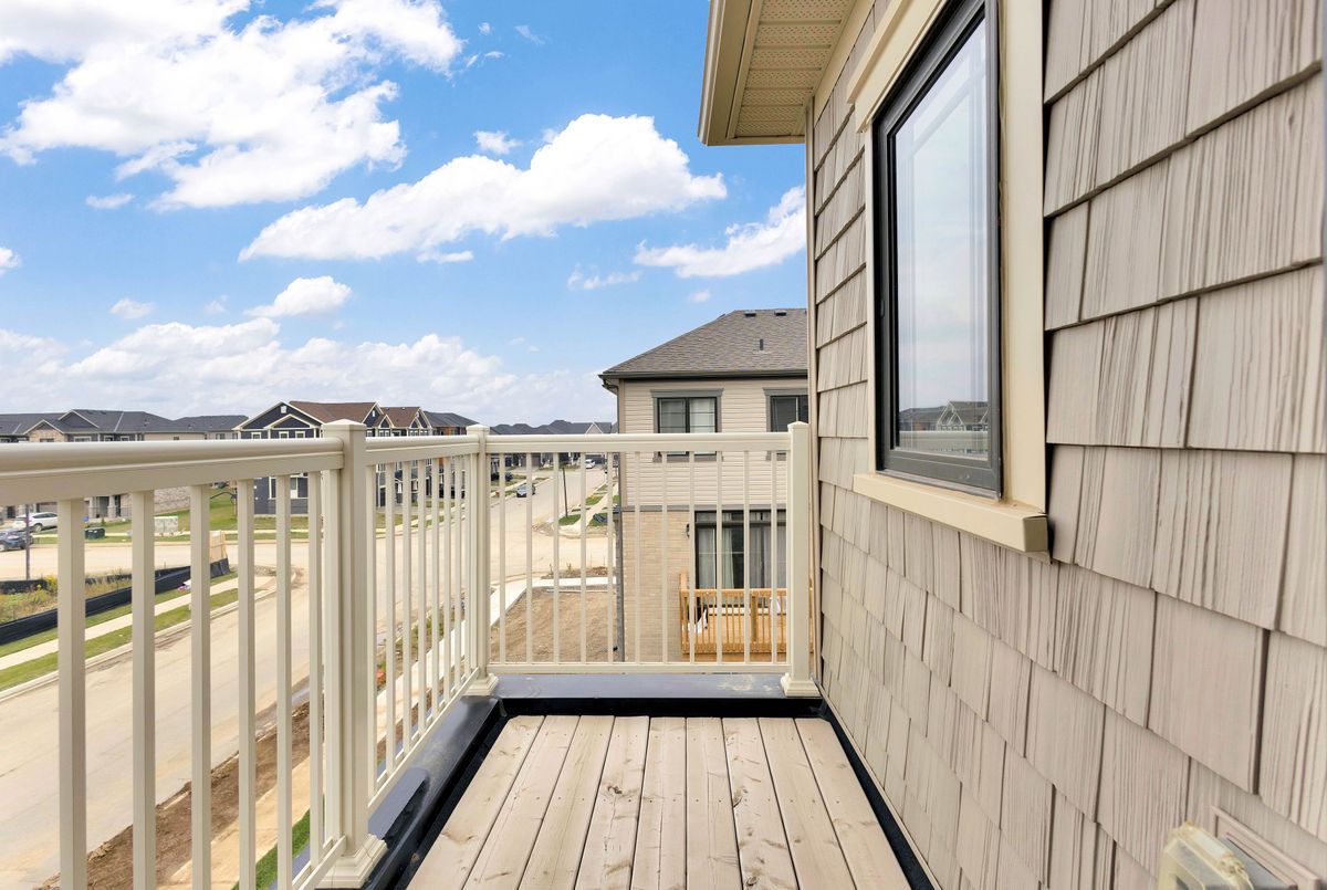 Welcome home to Wyndfield. This Fowler model offers an oversized 26ft deep garage with 2 exterior doors from this level. Continuing upstairs you will see a large family room with hardwood flooring and a large kitchen and dining area with ceramic floors with a rear balcony. Heading upstairs on a hardwood staircase to the bedroom area with primary having a balcony along with an ensuite plus 2 good size bedrooms. This area is family-friendly with a conservation area 5 minutes drive away with walkable trails, schools, parks. Minutes away from shopping. A beautiful matured community to live in.