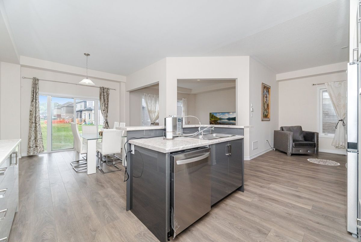Welcome to this beautiful detached home featuring 4 spacious bedrooms, 3.5 bathrooms, and a double-car garage, ideally situated in the sought-after Nature's Grand community by LIV Communities in Brantford. Positioned on a premium lot with captivating views of the Grand River and lush surrounding greenery, this residence offers the perfect blend of natural beauty and modern comfort. The main floor showcases soaring 10-foot ceilings, upgraded windows, and large patio doors that flood the space with natural light, creating an open, airy atmosphere throughout. Designed with both style and functionality in mind, this home provides a serene retreat for quiet moments while offering plenty of room for family living. Each generously sized bedroom serves as a personal haven, ensuring comfort and privacy for all. The open-concept layout seamlessly connects the kitchen, dining, and living areas, making it ideal for both entertaining and everyday life. Perfectly located near the river, parks, ponds, and walking trails, the home also enjoys easy access to Hwy 403, conservation areas, and scenic pathways leading to the prestigious Brantford Golf & Country Club. Dont miss it.