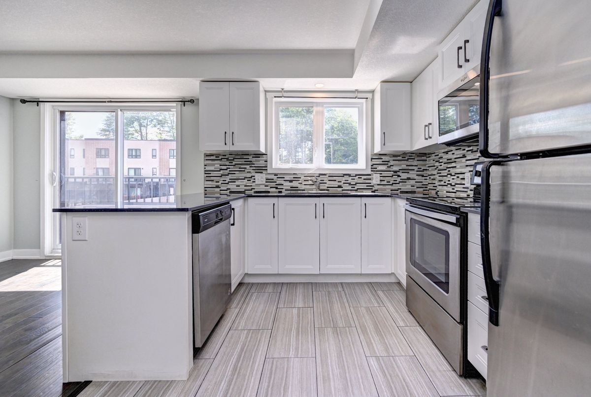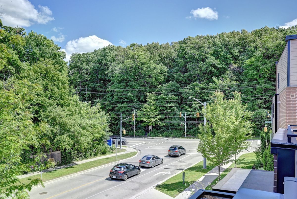 Welcome to A4-190 Century Hill Drive a beautiful townhouse nestled in a desirable, modern complex that blends style, comfort, and convenience. Step into the heart of the home: a sophisticated kitchen featuring crisp white cabinetry, gleaming granite countertops, elegant tile flooring, and a chic subway-tile backsplash. Premium stainless steel appliances elevate the space, while a walk-in pantry ensures ample storage. A large window above the sink fills the room with natural light, creating a bright and welcoming atmosphere. The dining area has a view of the parking lot. Adjacent to this space, a converted bonus room offers a cozy retreat with a large window and direct access to your private balcony, perfect for morning coffee or evening relaxation. Upstairs, on the second level, is a versatile study area with the ideal setup for a home office or study zone, while the upper-level loft adds even more flexibility, whether as a reading corner, creative space, or quiet escape. The spacious primary bedroom is a sanctuary, illuminated by two large windows and complemented by a generous walk-in closet. A second well-sized bedroom and a beautifully finished 4-piece bathroom with an expansive vanity and shower/tub combo complete the upper level. The location includes quick access to Highway 401 and Conestoga College, perfect for commuters and students alike. Nature lovers will appreciate being just steps from Steckle Woods, offering scenic trails and peaceful surroundings. With shopping, dining, and parks nearby, every convenience is within reach.