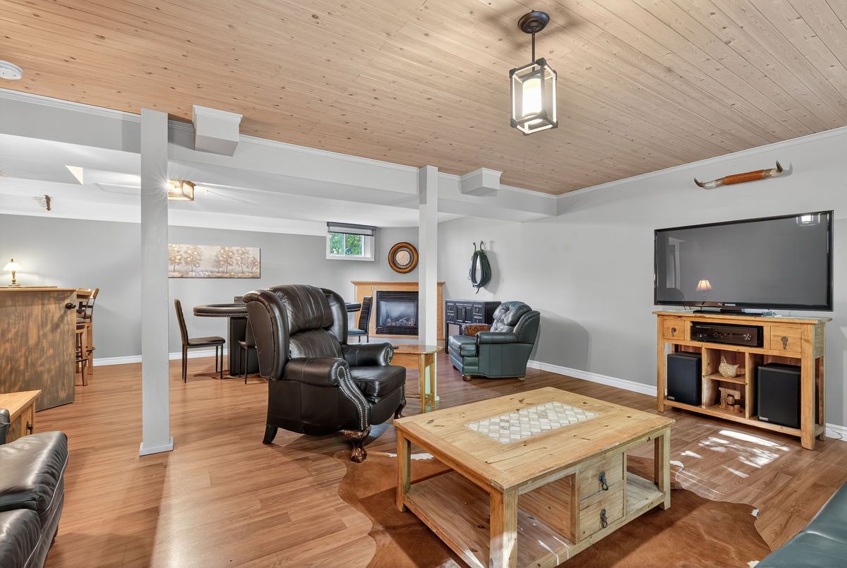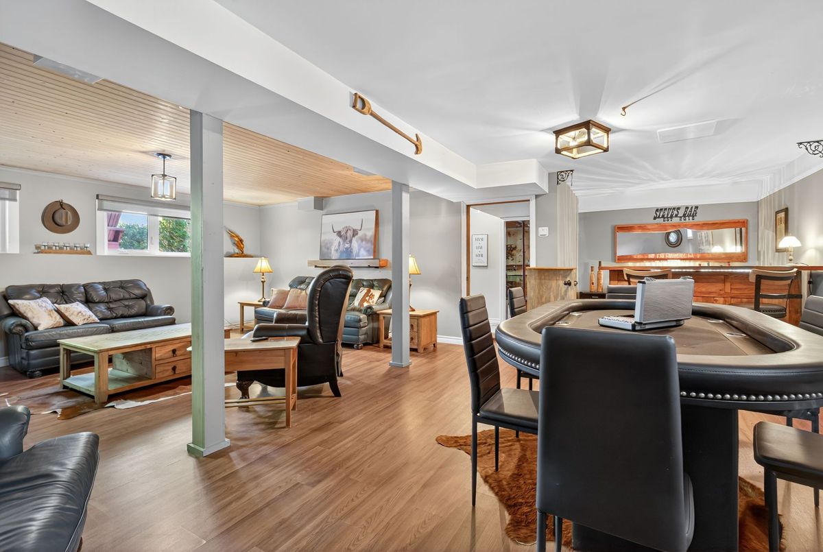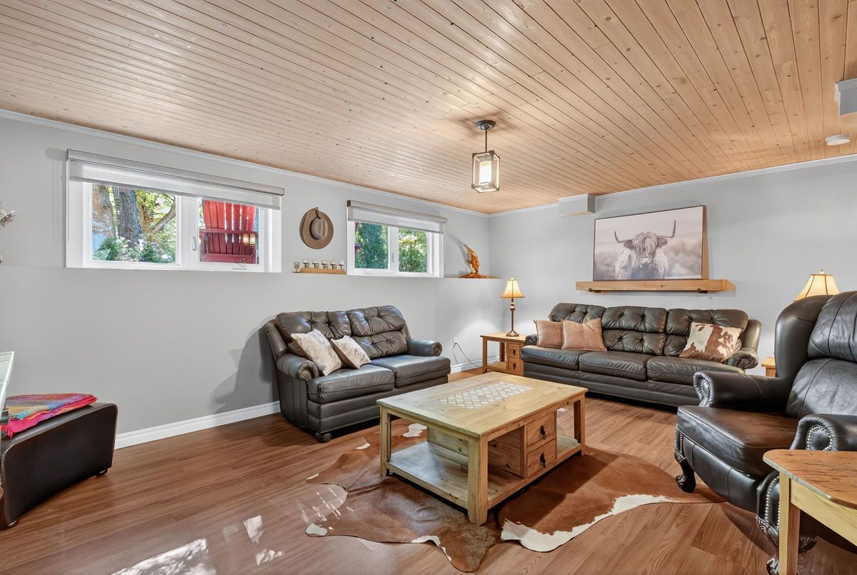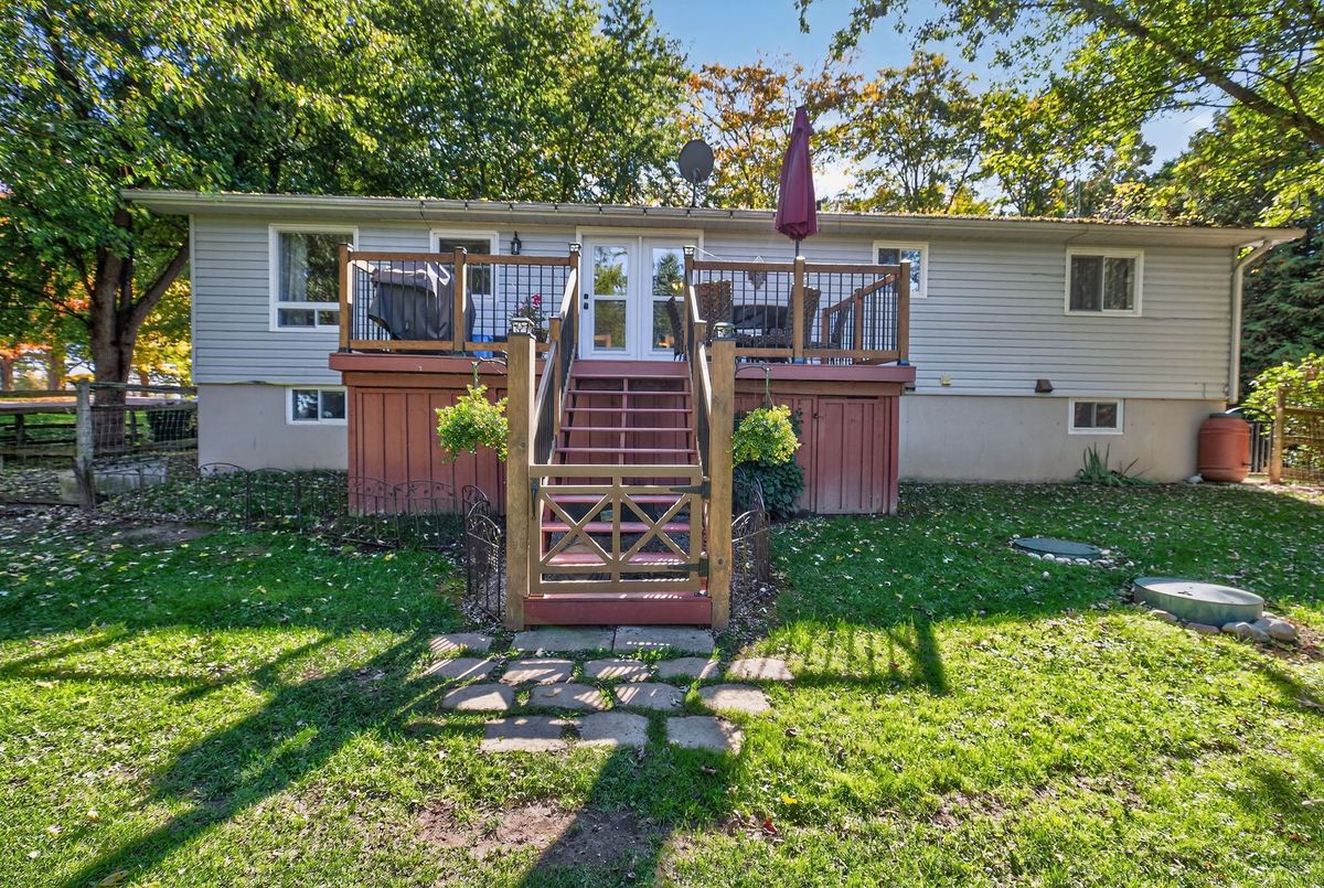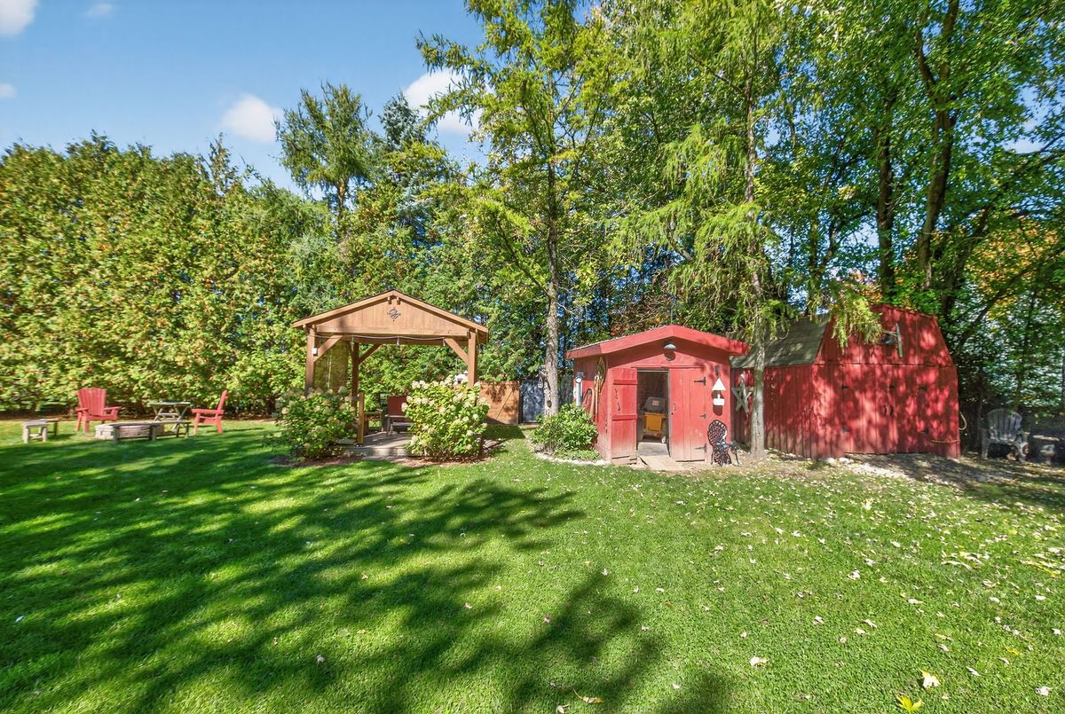 Nature-Infused Living on Half an Acre! Nestled on a private lot, this raised bungalow is embraced by a complete tree enclosure that provides both privacy and tranquility. The backyard feels like your own natural retreat, with a canopy of mature trees surrounding the property and tall, majestic maples in front adding to the sense of variety and warmth. Sunlight filters beautifully through the branches and streams in from the many windows on both levels, creating a bright, inviting atmosphere throughout the home. Inside, you'll find a wonderful balance of modern updates and rustic charm. The kitchen and bathrooms have been tastefully refreshed, while touches of natural wood maintain the homes cozy, welcoming character. The layout offers generous space for everyday living and entertaining alike, featuring a formal dining room, a large eat-in kitchen with a walkout to an elevated deck overlooking the stunning backyard, perfect for indoor-outdoor dining and gatherings. A spacious living room with a gas fireplace sets the tone for relaxation, while the lower level recreation room provides a great space for games, movie nights, or hosting, complete with another gas fireplace and a custom wood bar. The large utility room offers endless versatility, ideal for a workshop, home gym, office, or additional storage. Outside, theres ample parking for large vehicles, multiple storage sheds, and even a chicken coop for those who love the idea of a touch of country living. Just a short walk away, Luther Lake offers year-round outdoor enjoyment with trails for hiking, biking, fishing, and even horseback riding. This is a place where comfort meets nature, a warm, private, and peaceful setting you'll love to call home.