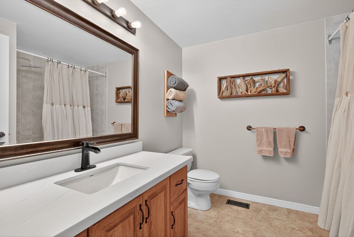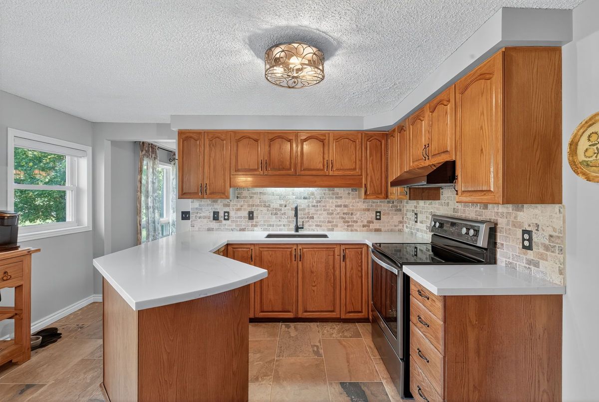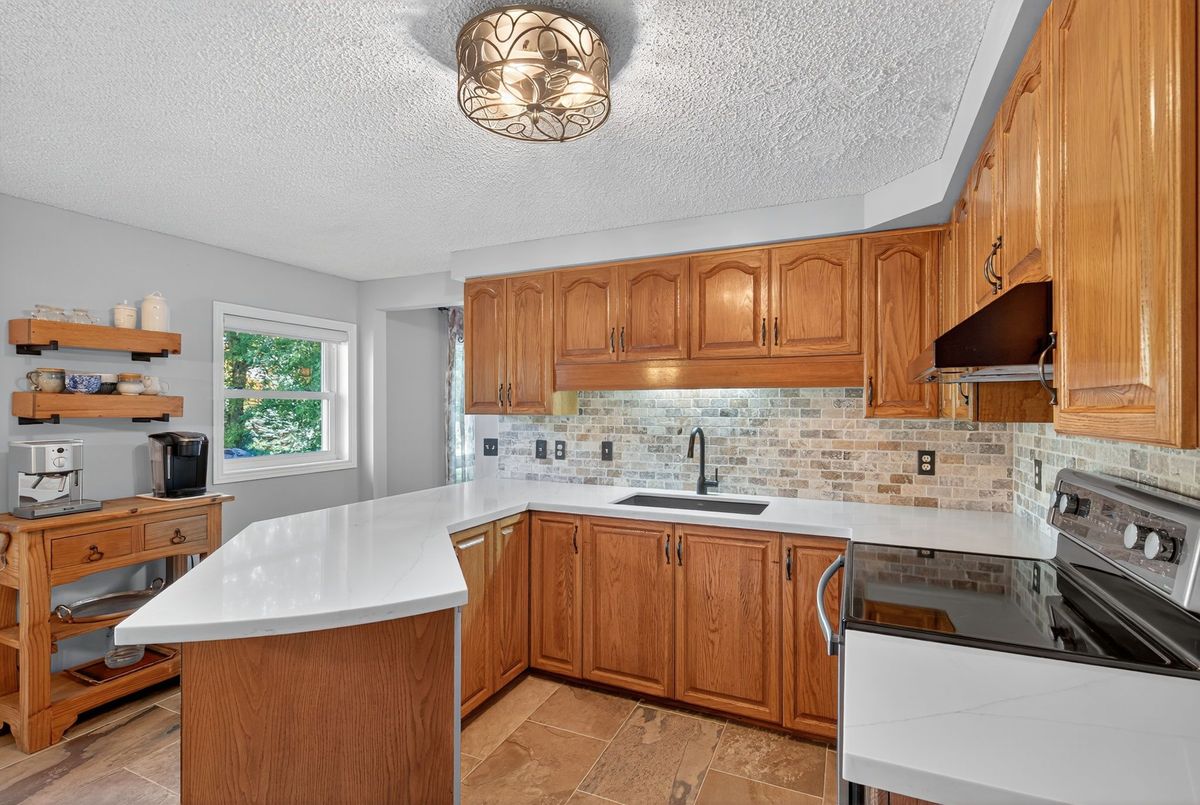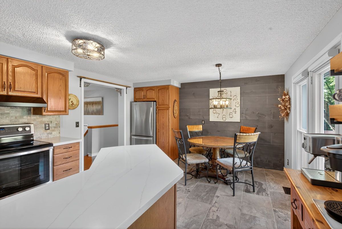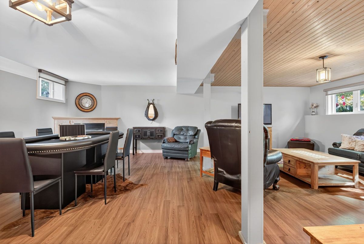 Nature-Infused Living on Half an Acre! Nestled on a private lot, this raised bungalow is embraced by a complete tree enclosure that provides both privacy and tranquility. The backyard feels like your own natural retreat, with a canopy of mature trees surrounding the property and tall, majestic maples in front adding to the sense of variety and warmth. Sunlight filters beautifully through the branches and streams in from the many windows on both levels, creating a bright, inviting atmosphere throughout the home. Inside, you'll find a wonderful balance of modern updates and rustic charm. The kitchen and bathrooms have been tastefully refreshed, while touches of natural wood maintain the homes cozy, welcoming character. The layout offers generous space for everyday living and entertaining alike, featuring a formal dining room, a large eat-in kitchen with a walkout to an elevated deck overlooking the stunning backyard, perfect for indoor-outdoor dining and gatherings. A spacious living room with a gas fireplace sets the tone for relaxation, while the lower level recreation room provides a great space for games, movie nights, or hosting, complete with another gas fireplace and a custom wood bar. The large utility room offers endless versatility, ideal for a workshop, home gym, office, or additional storage. Outside, theres ample parking for large vehicles, multiple storage sheds, and even a chicken coop for those who love the idea of a touch of country living. Just a short walk away, Luther Lake offers year-round outdoor enjoyment with trails for hiking, biking, fishing, and even horseback riding. This is a place where comfort meets nature, a warm, private, and peaceful setting you'll love to call home.