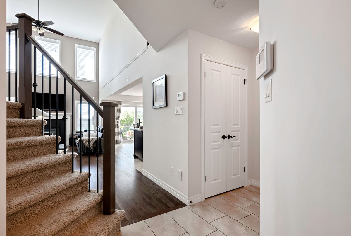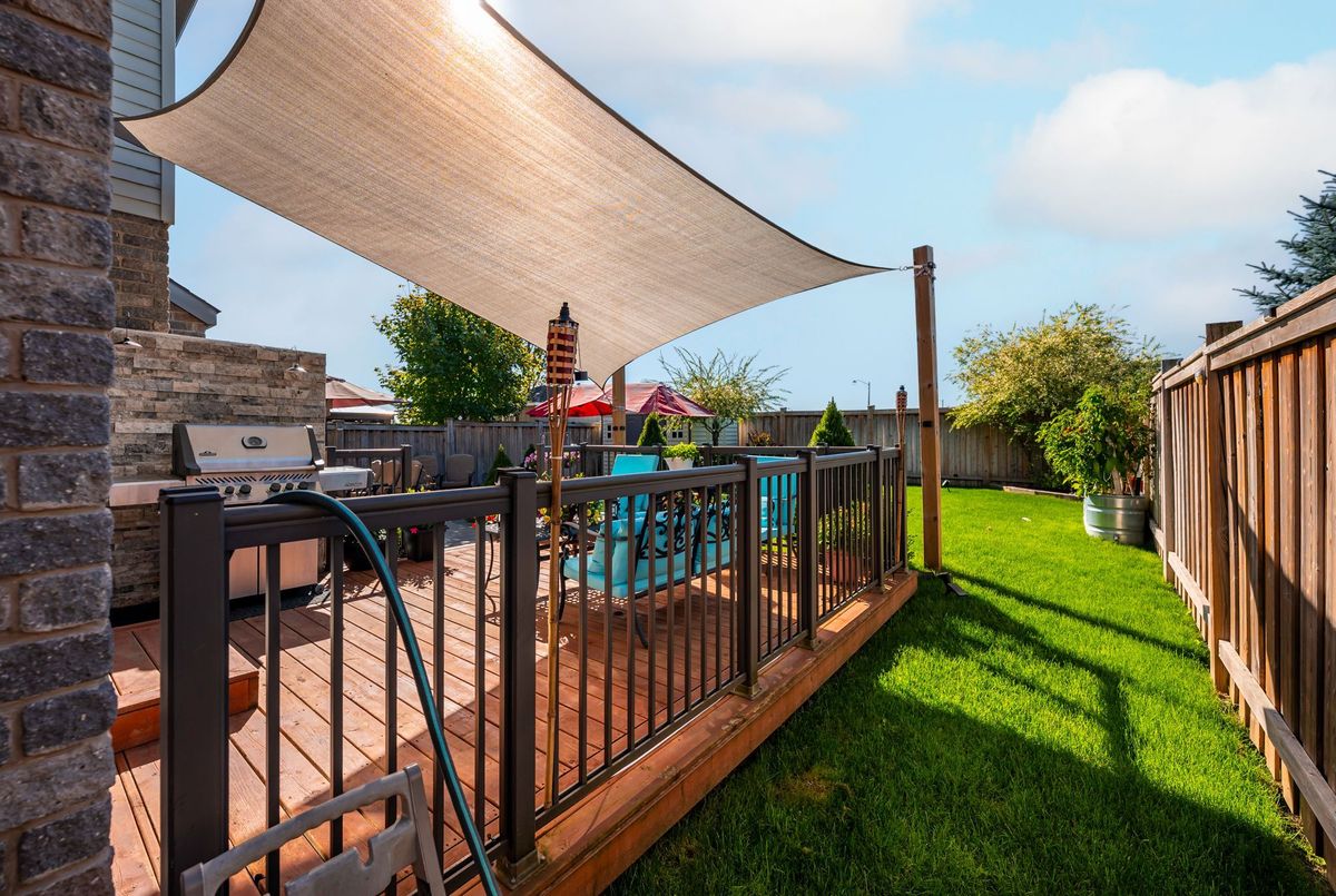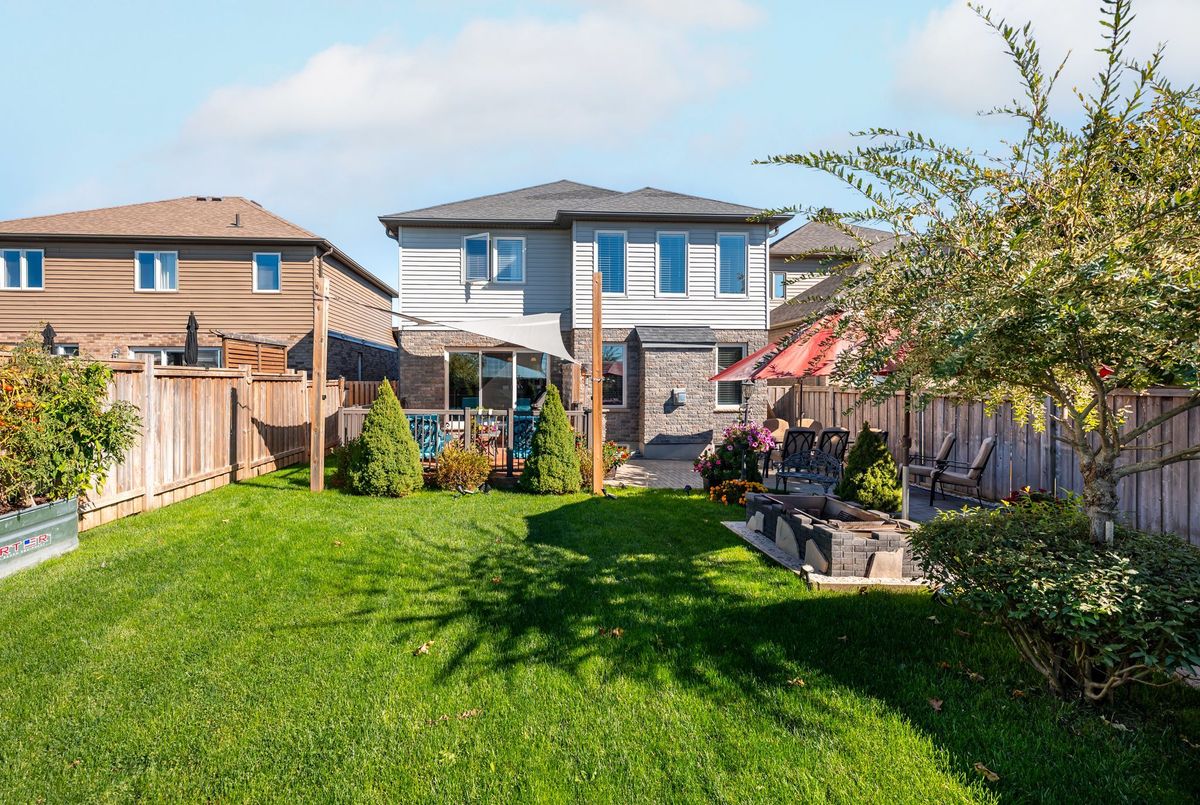 Welcome to Mayberry Hill, a peaceful Grand Valley community where small-town life meets modern comfort. This Thomas Field-built home offers about 2,000 square feet of bright, open living space designed for family and friends to gather and enjoy. Built with quality craftsmanship, it features an open-concept main floor that draws you in with its soaring 17-foot great room ceiling and large windows that fill the living area with natural light. The kitchen blends function and style with stainless steel appliances, a tile backsplash, and plenty of prep space for family dinners or quiet mornings. Hardwood and tile floors flow throughout the main level, leading to a convenient mudroom and laundry with inside access to the double garage. The garage itself adds flexibility, featuring an overhead/retractable screen door so you can enjoy the space as a bug-free outdoor area perfect for summer evenings or weekend projects. Upstairs, you'll find three spacious bedrooms, including a large primary suite with a walk-in closet and an ensuite featuring a double vanity and a walk-in shower. The basement is ready for your ideas, complete with a rough-in for a future bathroom and a large cold room for storage. Step outside to a fully fenced backyard made for relaxing and gathering with a deck, patio, firepit, garden shed, and shade sail offering the perfect spot to unwind. Located minutes from trails, conservation areas, and just 15 minutes from Orangeville, this home combines the peace of small-town living with the convenience of nearby amenities.