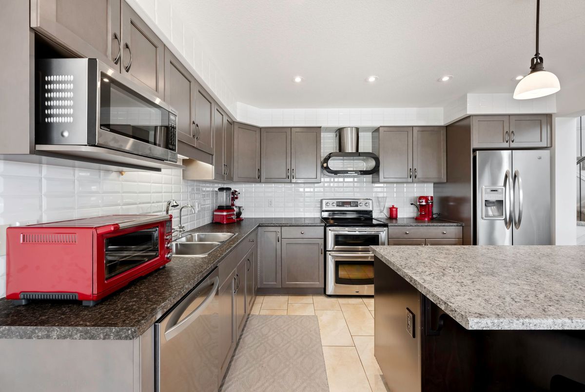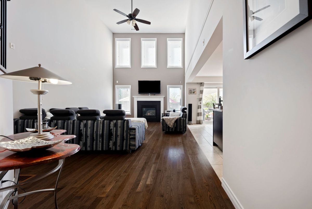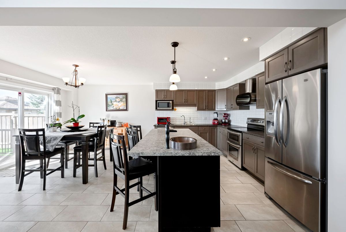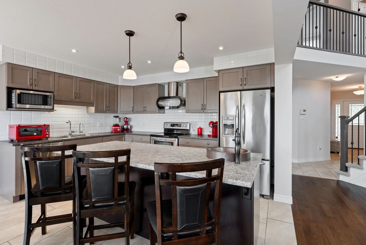 Welcome to Mayberry Hill, a peaceful Grand Valley community where small-town life meets modern comfort. This Thomas Field-built home offers about 2,000 square feet of bright, open living space designed for family and friends to gather and enjoy. Built with quality craftsmanship, it features an open-concept main floor that draws you in with its soaring 17-foot great room ceiling and large windows that fill the living area with natural light. The kitchen blends function and style with stainless steel appliances, a tile backsplash, and plenty of prep space for family dinners or quiet mornings. Hardwood and tile floors flow throughout the main level, leading to a convenient mudroom and laundry with inside access to the double garage. The garage itself adds flexibility, featuring an overhead/retractable screen door so you can enjoy the space as a bug-free outdoor area perfect for summer evenings or weekend projects. Upstairs, you'll find three spacious bedrooms, including a large primary suite with a walk-in closet and an ensuite featuring a double vanity and a walk-in shower. The basement is ready for your ideas, complete with a rough-in for a future bathroom and a large cold room for storage. Step outside to a fully fenced backyard made for relaxing and gathering with a deck, patio, firepit, garden shed, and shade sail offering the perfect spot to unwind. Located minutes from trails, conservation areas, and just 15 minutes from Orangeville, this home combines the peace of small-town living with the convenience of nearby amenities.