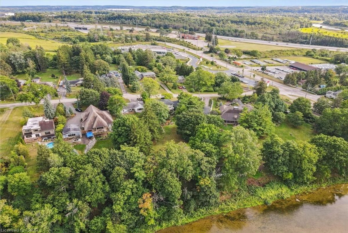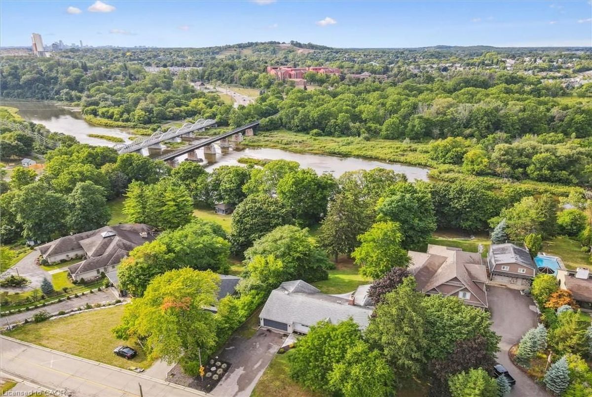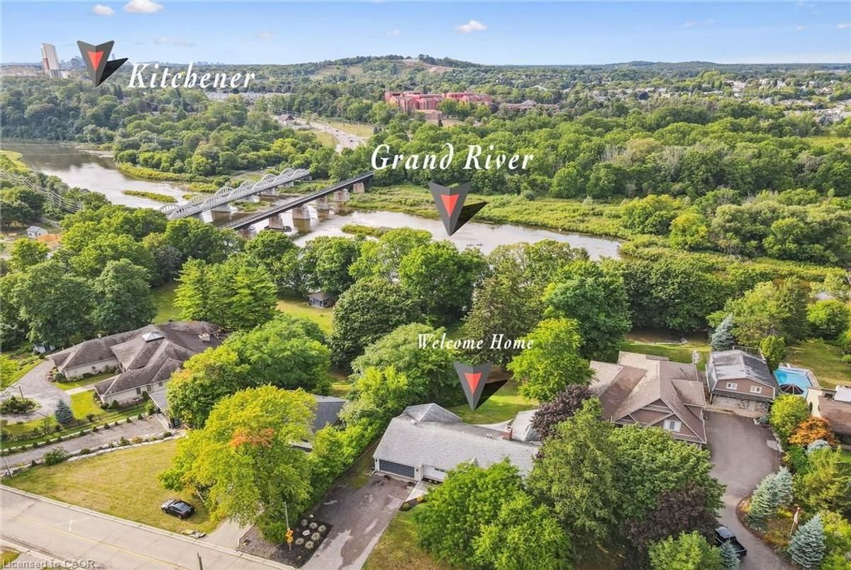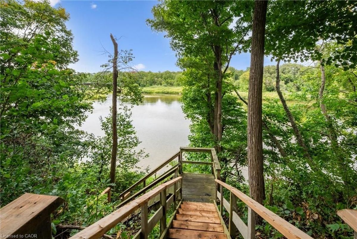 Set along the Grand River, this bungalow combines over 3,000 sq. ft. of finished living space with a rare connection to nature, all just minutes from Cambridge and Kitchener amenities. Originally built as a three-bedroom, the main floor now offers two bedrooms and two full baths, including a primary suite with river views, with the option to restore the original three-bedroom layout. Expansive windows fill the open living, dining, and kitchen areas with light, while providing a seamless view of the river and access to the deck. The lower level extends the home with a walk-out family room, third full bath, and flexible rooms that can serve as bedrooms, guest space, or a home office. Outdoors, the deep, tree-lined lot leads directly to the river-ideal for paddling, fishing, or simply relaxing in a peaceful setting. Updates include new sump pump (2025), water pressure tank (2023), deck boards (2021), shed (2021) septic tank (2016), water filtration, softener and chimney. With an attached double car garage, ample parking, and quick access to major highways, this property blends privacy, practicality, and the unique lifestyle of riverside living.