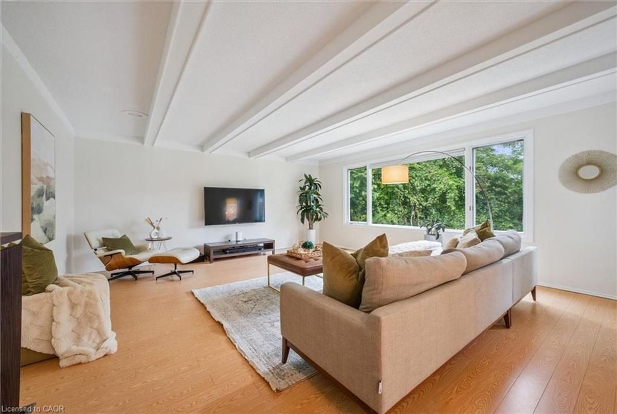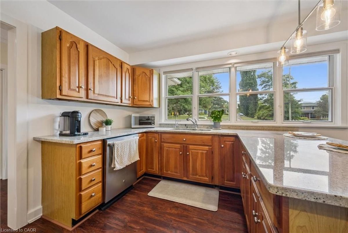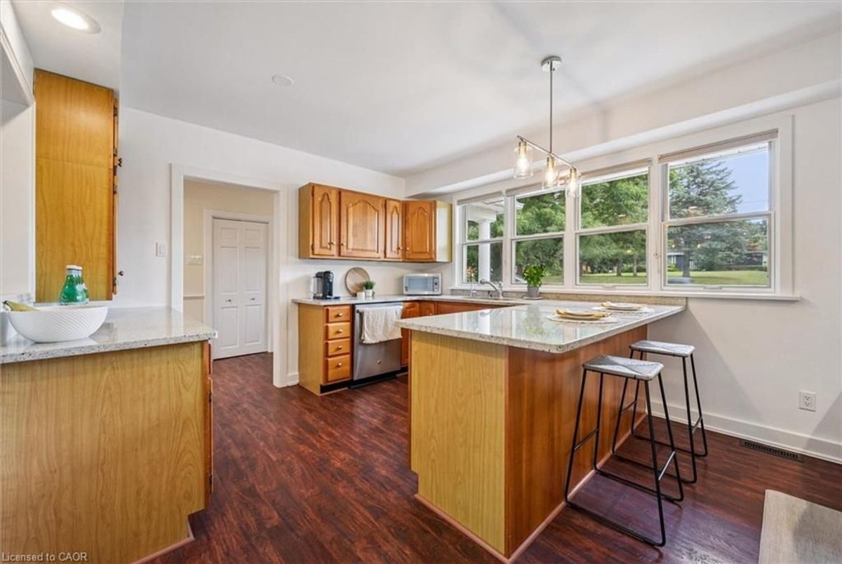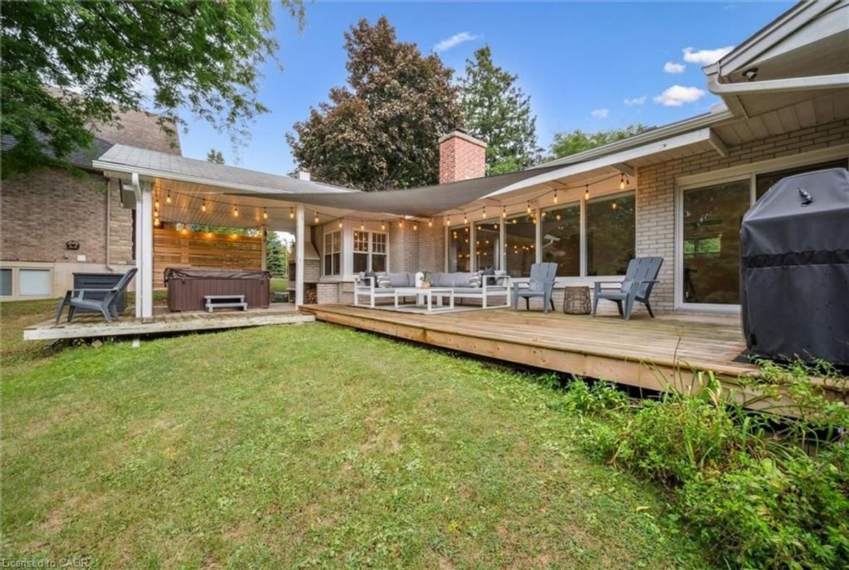 Set along the Grand River, this bungalow combines over 3,000 sq. ft. of finished living space with a rare connection to nature, all just minutes from Cambridge and Kitchener amenities. Originally built as a three-bedroom, the main floor now offers two bedrooms and two full baths, including a primary suite with river views, with the option to restore the original three-bedroom layout. Expansive windows fill the open living, dining, and kitchen areas with light, while providing a seamless view of the river and access to the deck. The lower level extends the home with a walk-out family room, third full bath, and flexible rooms that can serve as bedrooms, guest space, or a home office. Outdoors, the deep, tree-lined lot leads directly to the river-ideal for paddling, fishing, or simply relaxing in a peaceful setting. Updates include new sump pump (2025), water pressure tank (2023), deck boards (2021), shed (2021) septic tank (2016), water filtration, softener and chimney. With an attached double car garage, ample parking, and quick access to major highways, this property blends privacy, practicality, and the unique lifestyle of riverside living.
