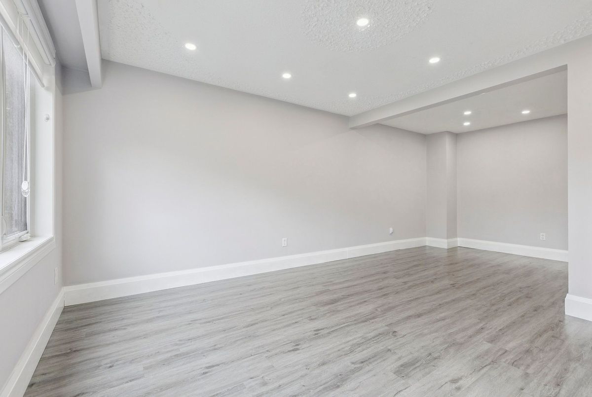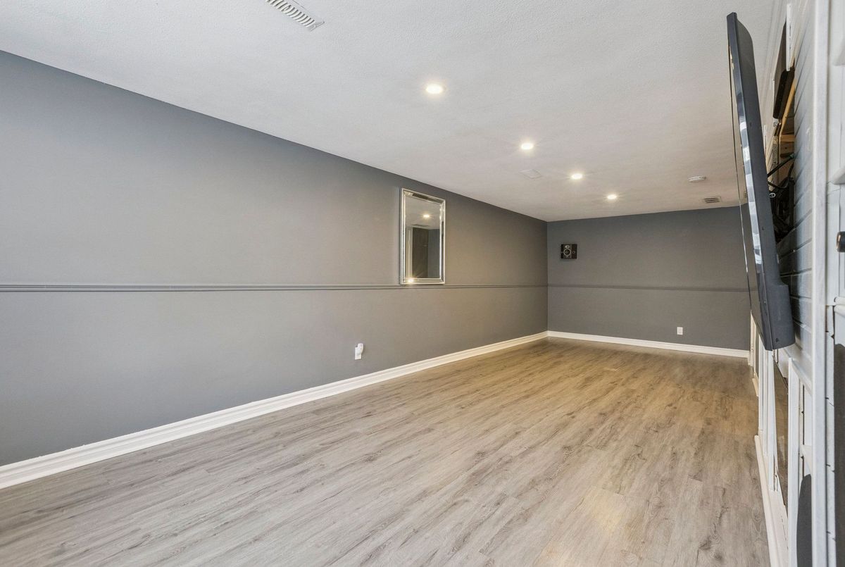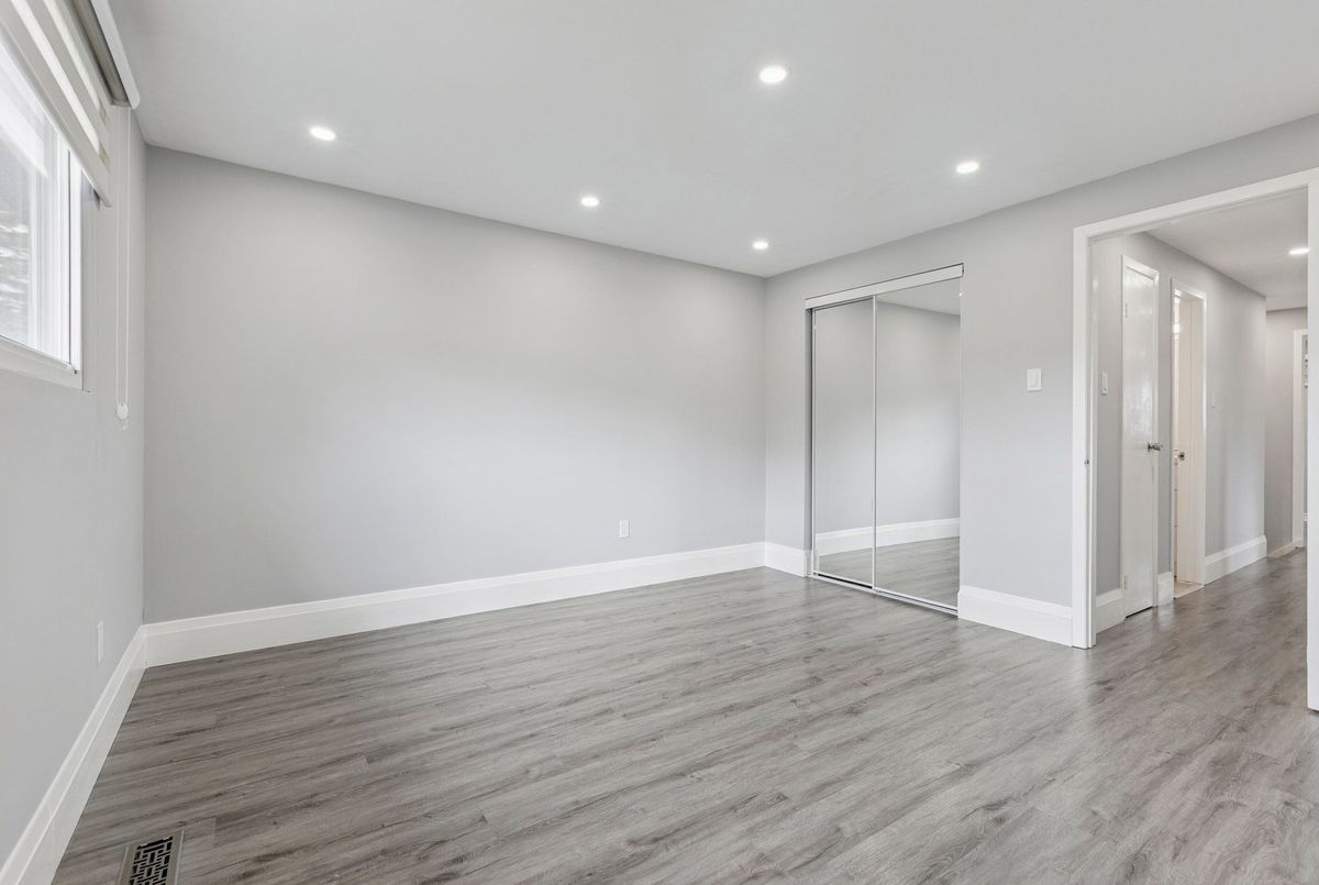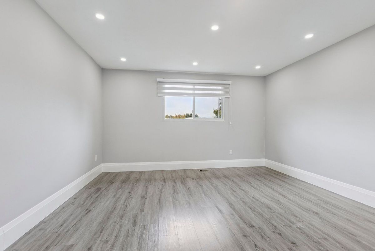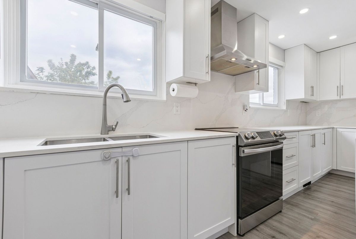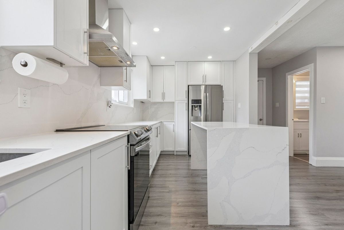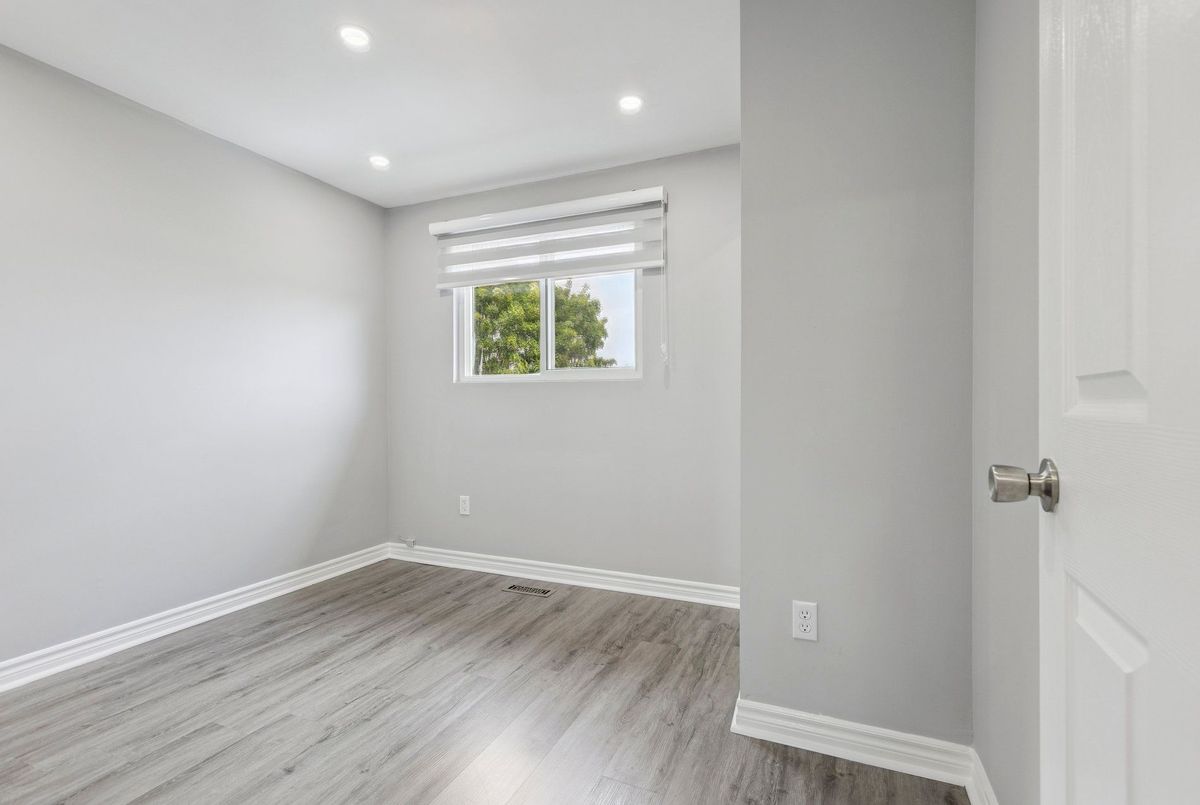 Must See: Welcome to 122 Mooregate Crescent! A fully renovated 4+1 bedroom semi-detached home with a walk-out basement.The home features a custom exposed aggregate concrete driveway with parking for 4 vehicles. Inside, you'll find a bright, open-concept main floor with premium SPC luxury vinyl flooring, pot lights throughout, a fireplace, and zebra blinds. The modern kitchen offers sleek cabinetry, quartz countertops and backsplash, stainless steel appliances, and a waterfall island ideal for both daily use and entertaining. Upstairs includes 4 generous bedrooms and a renovated 4-piece bathroom (2025).The finished walk-out basement includes a spacious rec room with a custom wall unit(entertainment system included), bedroom/den/office area, and a laundry/utility area with plenty of space. Can be easily converted to an in-law suite or a separate rental unit.Step outside to a private backyard featuring a concrete patio with shade cover (patio furniture included), two storage sheds, and outdoor lighting.Additional updates include: Furnace (2019) + Central A/C (2023)Located just steps from Victoria HillsCommunity Centre, steps from Hillside Public School, close to shopping, parks, and other amenities. This is a perfect family home, book your showing today! Some rooms have been virtually staged to help you visualize the space's potential.