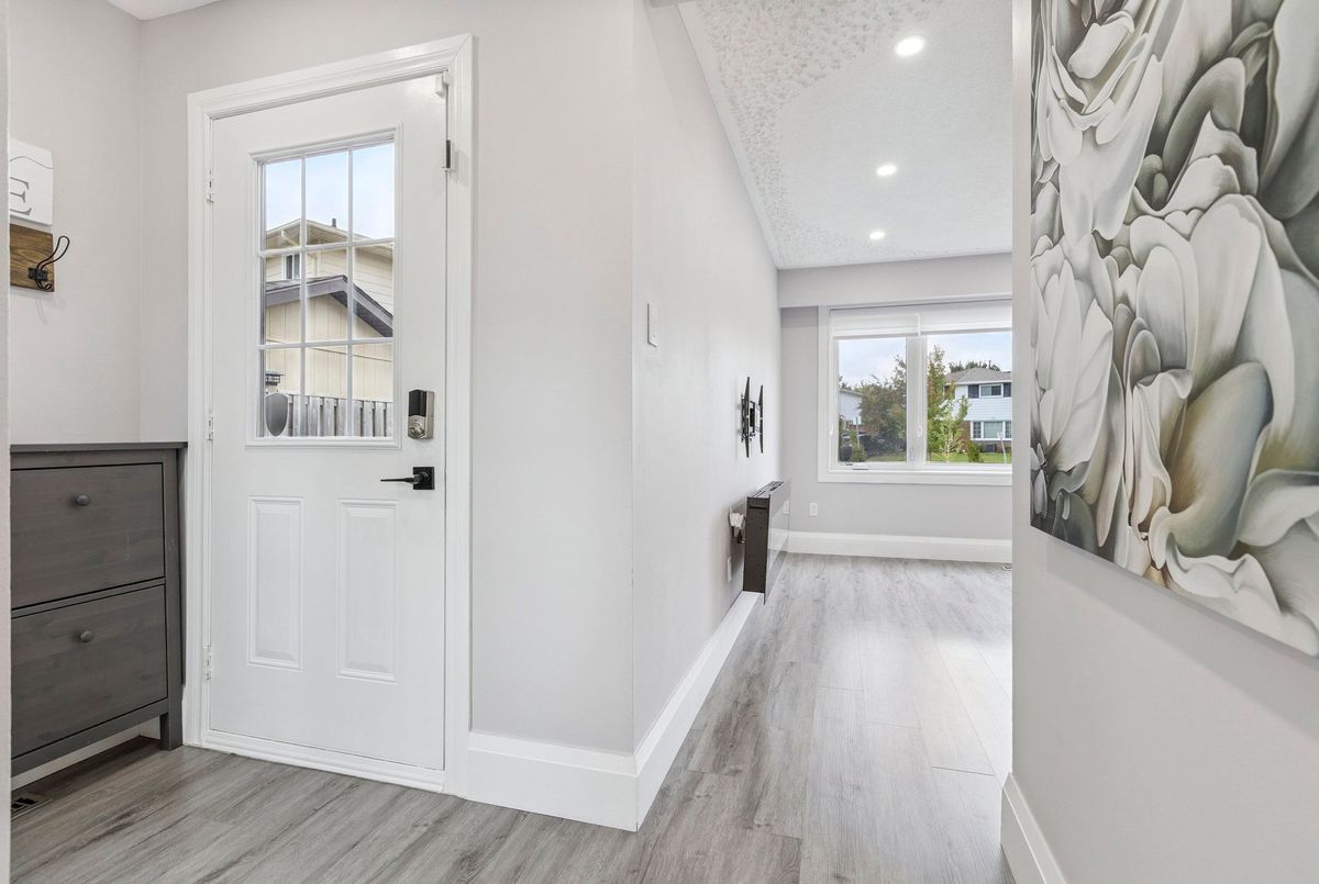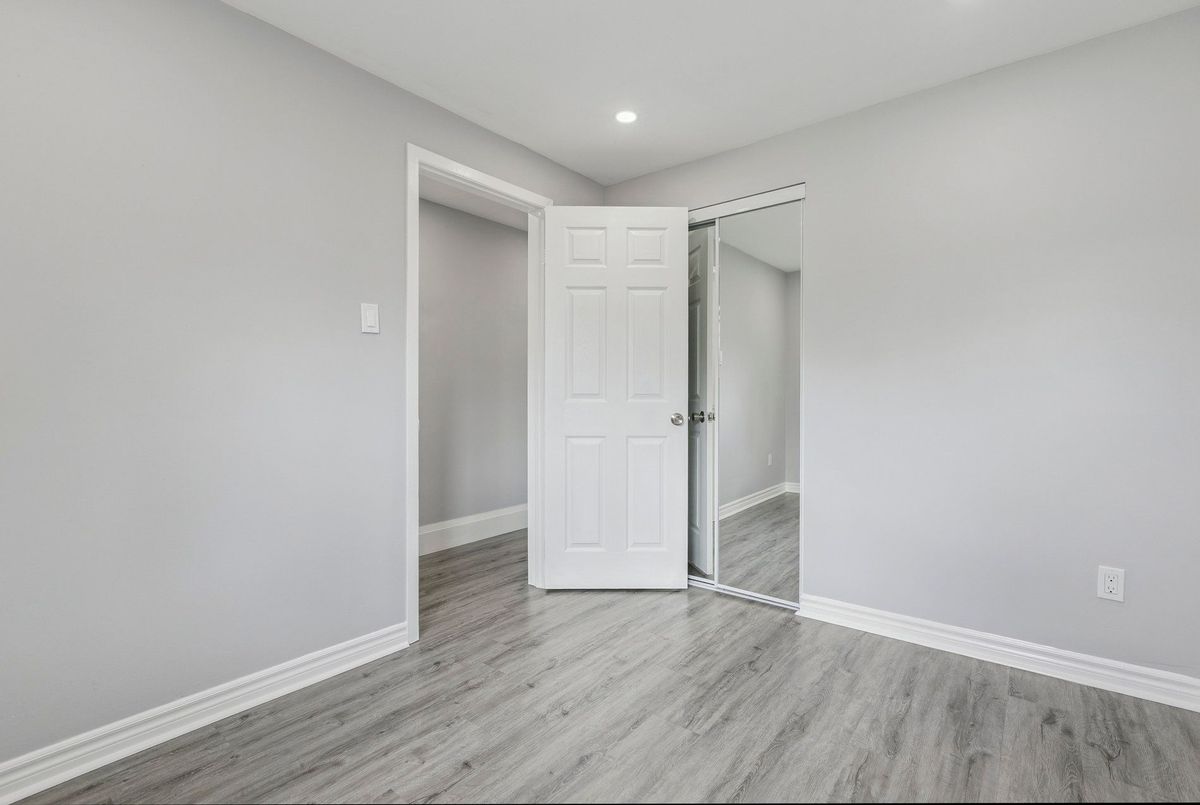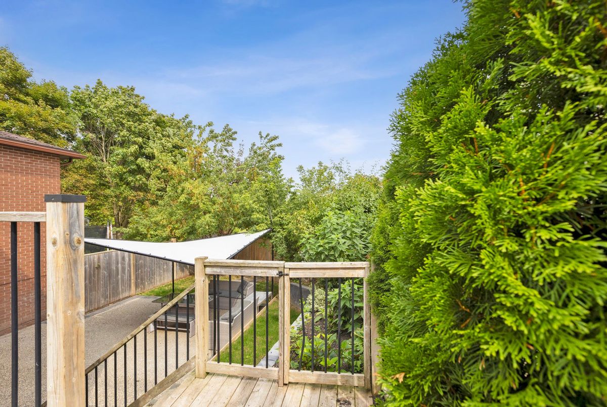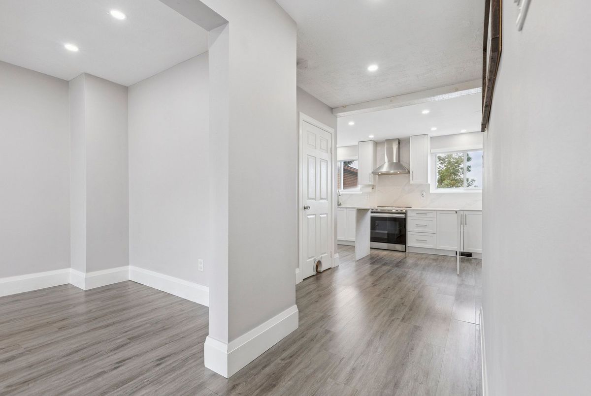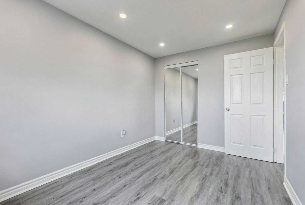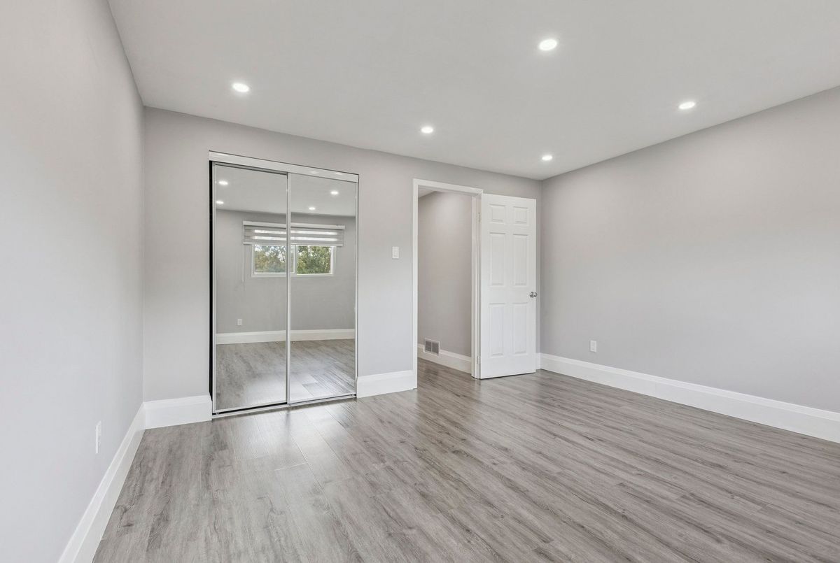 Must See: Welcome to 122 Mooregate Crescent! A fully renovated 4+1 bedroom semi-detached home with a walk-out basement.The home features a custom exposed aggregate concrete driveway with parking for 4 vehicles. Inside, you'll find a bright, open-concept main floor with premium SPC luxury vinyl flooring, pot lights throughout, a fireplace, and zebra blinds. The modern kitchen offers sleek cabinetry, quartz countertops and backsplash, stainless steel appliances, and a waterfall island ideal for both daily use and entertaining. Upstairs includes 4 generous bedrooms and a renovated 4-piece bathroom (2025).The finished walk-out basement includes a spacious rec room with a custom wall unit(entertainment system included), bedroom/den/office area, and a laundry/utility area with plenty of space. Can be easily converted to an in-law suite or a separate rental unit.Step outside to a private backyard featuring a concrete patio with shade cover (patio furniture included), two storage sheds, and outdoor lighting.Additional updates include: Furnace (2019) + Central A/C (2023)Located just steps from Victoria HillsCommunity Centre, steps from Hillside Public School, close to shopping, parks, and other amenities. This is a perfect family home, book your showing today! Some rooms have been virtually staged to help you visualize the space's potential.