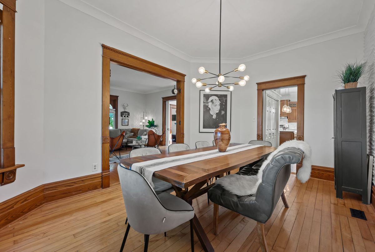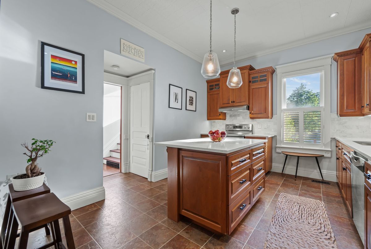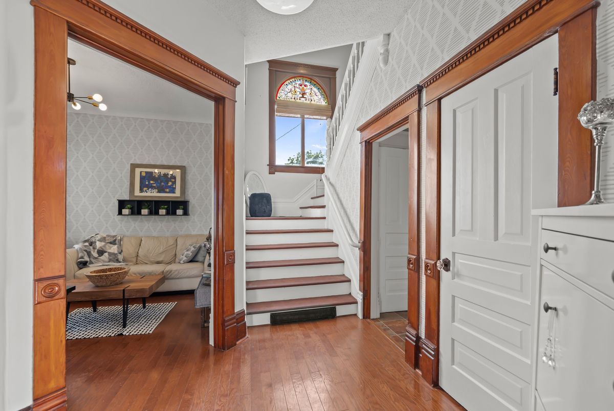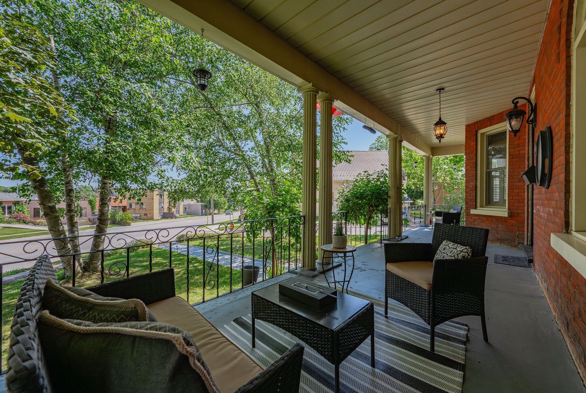 Step into timeless elegance with this beautifully preserved century home, offering over 3,500 sq ft of finished living space and brimming with charm and character. Located in the vibrant heart of Listowel on a spacious corner lot, this 5-bedroom, 2-bathroom home blends historic detail with thoughtful updates, making it ideal for families, or those looking to run a home-based business - there's a dedicated space conveniently located on the main floor perfect for an office. Rich in historic detail, the home features stunning stained glass throughout, soaring ceilings, and generous room sizes that reflect its heritage. The kitchen has been tastefully updated with solid oak cabinets, new stainless steel appliances (2025), a pantry, and a striking hand-cut Turkish marble backsplash. The main bathroom was converted in 2024 from a laundry room into a stylish and functional 4-piece bath. Additional updates include new lighting throughout the home, some newer double-hung windows, fully parged interior walls. Enjoy your mornings on the large covered front porch and host summer evenings under the backyard gazebo. Located along the school walking route, snow removal on the sidewalks is conveniently handled by the town - just one of the many perks of this unique corner lot location. Full of warmth, space, and possibility, this home is a rare gem waiting to welcome its next chapter. This is your chance to own a piece of Listowels history. Don't miss it!