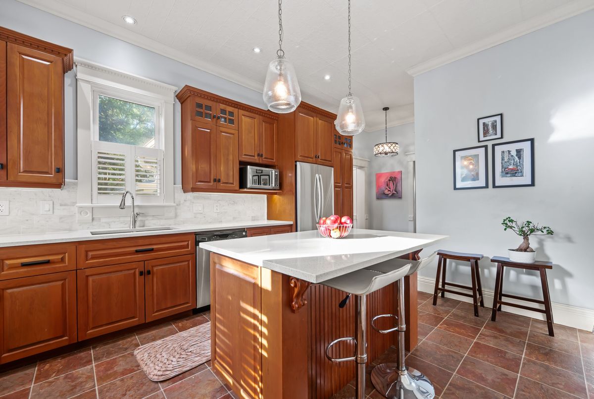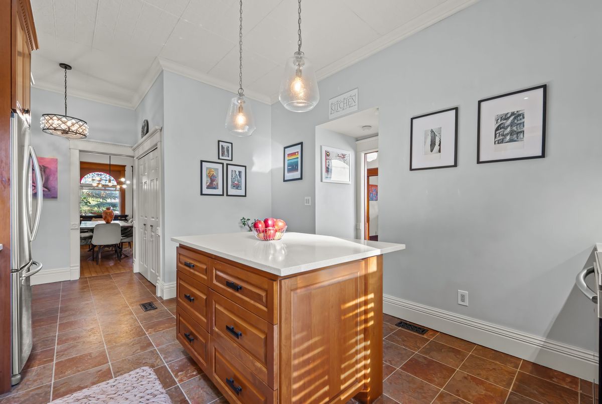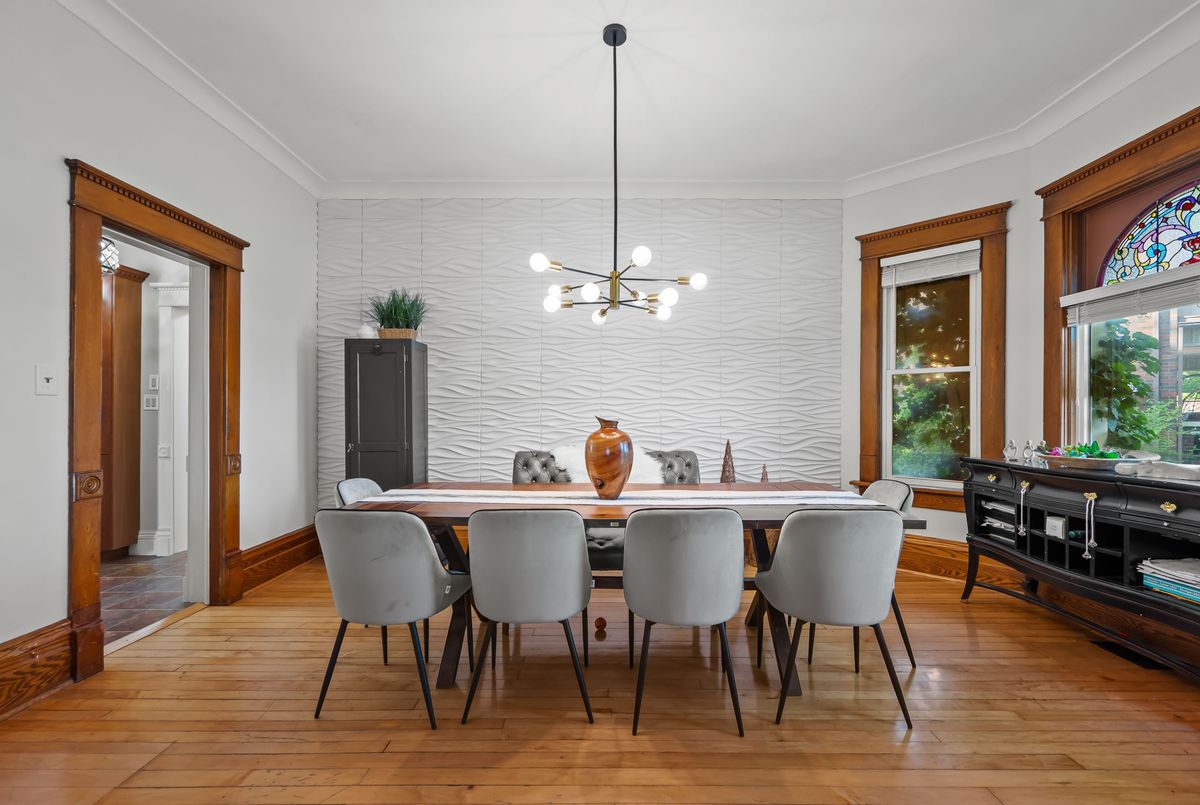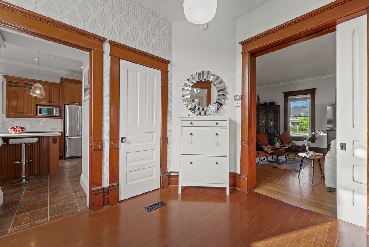 Step into timeless elegance with this beautifully preserved century home, offering over 3,500 sq ft of finished living space and brimming with charm and character. Located in the vibrant heart of Listowel on a spacious corner lot, this 5-bedroom, 2-bathroom home blends historic detail with thoughtful updates, making it ideal for families, or those looking to run a home-based business - there's a dedicated space conveniently located on the main floor perfect for an office. Rich in historic detail, the home features stunning stained glass throughout, soaring ceilings, and generous room sizes that reflect its heritage. The kitchen has been tastefully updated with solid oak cabinets, new stainless steel appliances (2025), a pantry, and a striking hand-cut Turkish marble backsplash. The main bathroom was converted in 2024 from a laundry room into a stylish and functional 4-piece bath. Additional updates include new lighting throughout the home, some newer double-hung windows, fully parged interior walls. Enjoy your mornings on the large covered front porch and host summer evenings under the backyard gazebo. Located along the school walking route, snow removal on the sidewalks is conveniently handled by the town - just one of the many perks of this unique corner lot location. Full of warmth, space, and possibility, this home is a rare gem waiting to welcome its next chapter. This is your chance to own a piece of Listowels history. Don't miss it!
