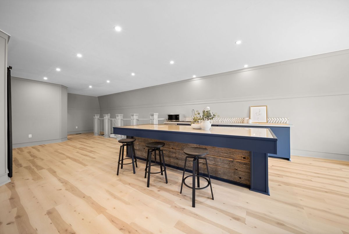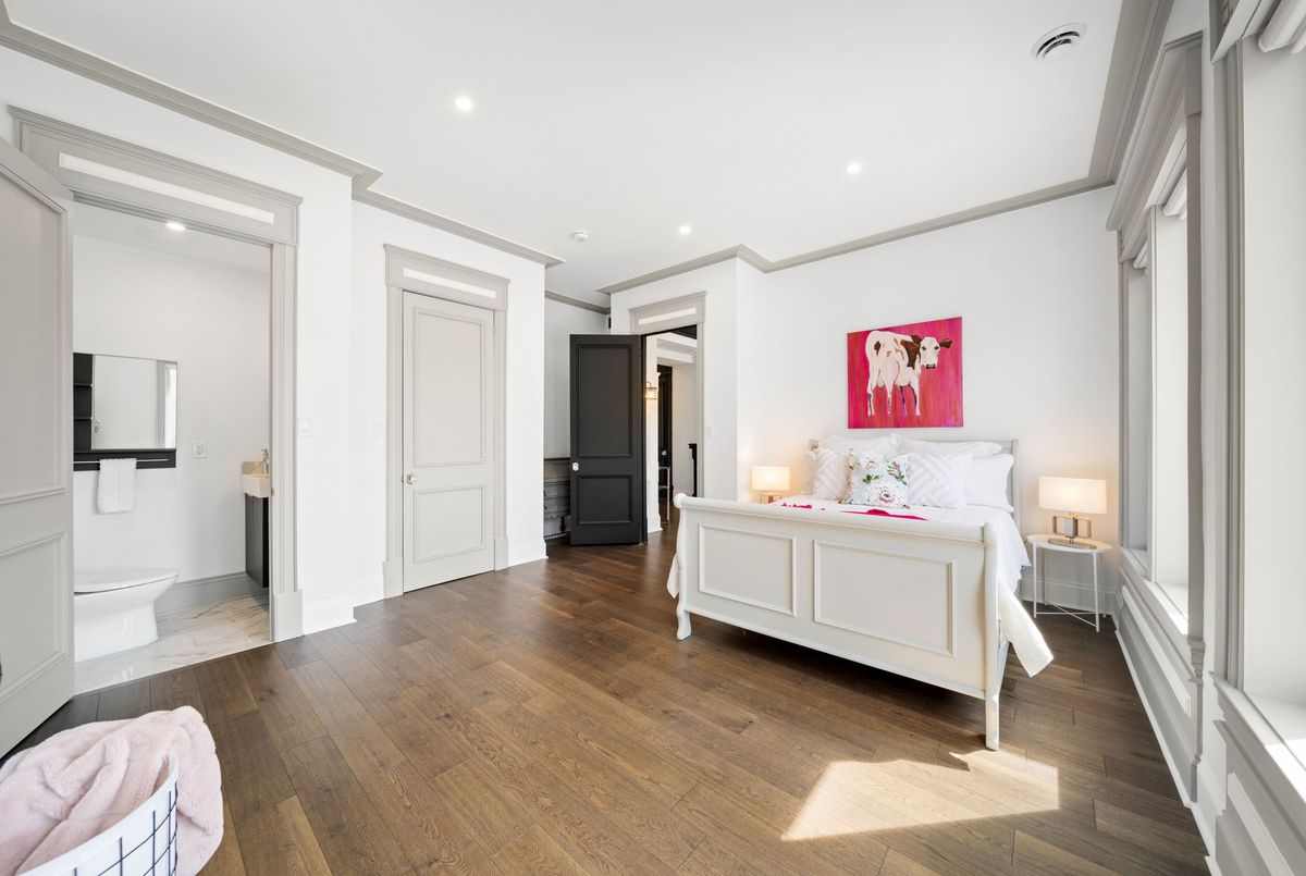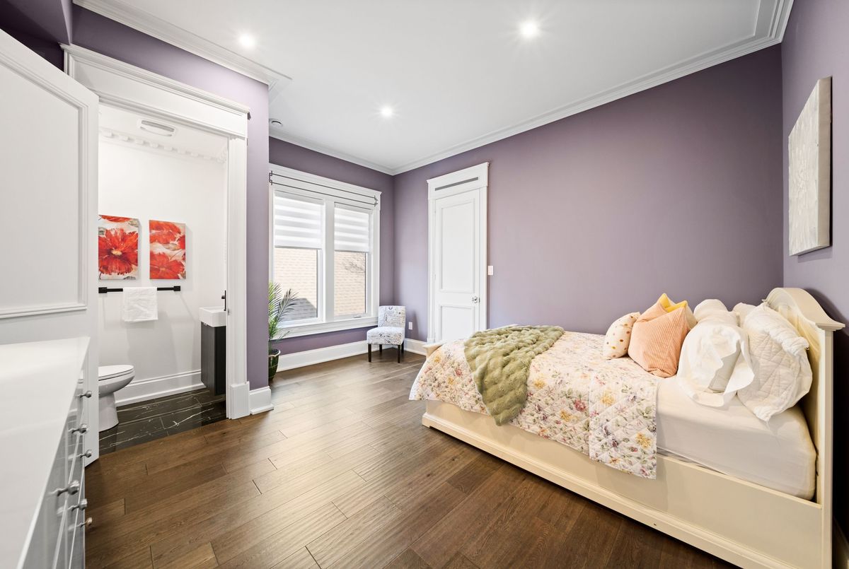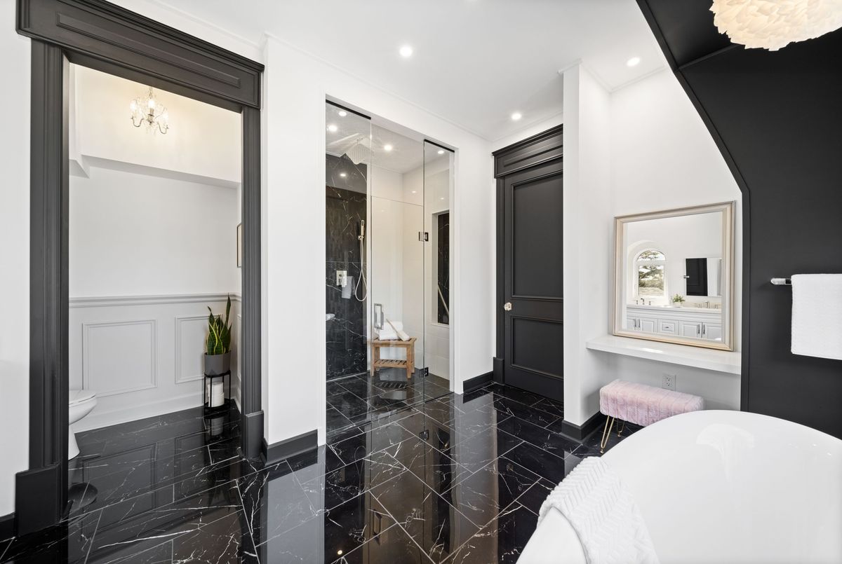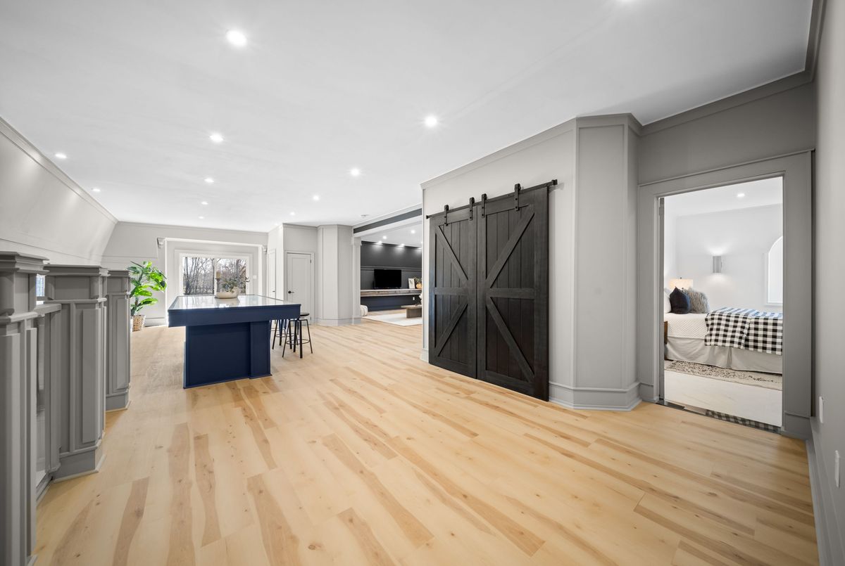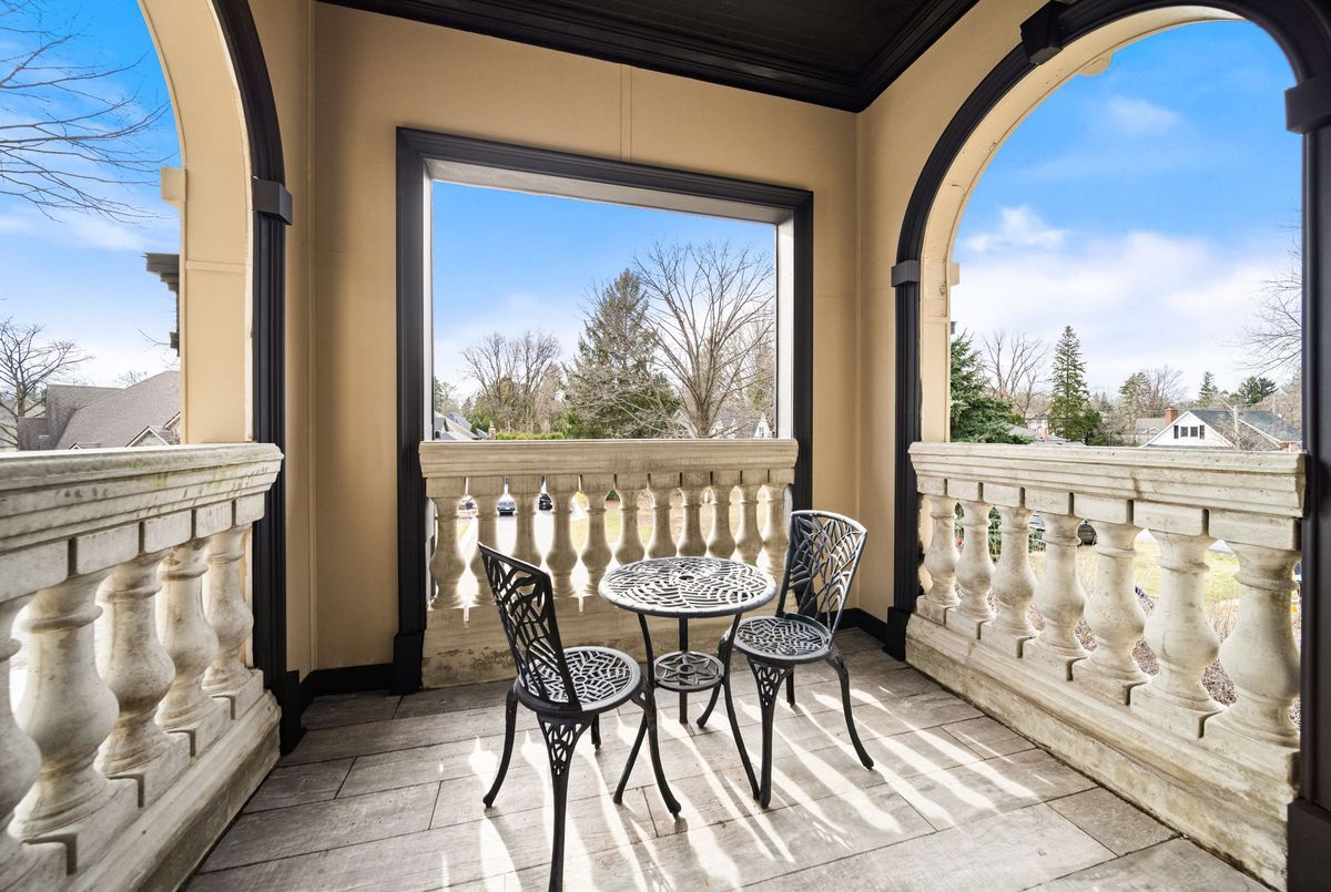 Nestled in scenic Ancaster Village, this French Chateau-inspired residence offers over 7,000 sqft of luxury backing onto the iconic Hamilton Golf Club, with sweeping views of one of Canada's premier courses. This 3-storey masterpiece features 4 beds, 7 baths, 10.5' soaring ceilings, custom millwork, and refined European design. The main floor is designed for entertaining, showcasing a gourmet kitchen with high-end appliances, quartz counters, custom cabinetry and a large island. Three sets of double doors open to a covered outdoor dining area. A formal dining room with chandelier, fireplace and wet bar adds elegance, while the family room with built-ins and fireplace connects seamlessly to the landscaped yard. Second level is dedicated to ultimate comfort, 3 spacious bedrooms each with private baths & walk-in closets. Primary suite boasts gorgeous stone fireplace, custom walk-in closet & spa-like ensuite with freestanding tub, rainfall shower, glass shower, and private terrace overlooking the golf course. Third level serves as a secluded refuge with spacious living room, large bedroom, full bath & kitchenette. A walk-out portico terrace offers panoramic views of the golf course. Lower level features 9' ceilings, a recroom, fitness room, family room with another fireplace, full bathroom, heated floors & a kitchenette. A wine cellar completes your chateau experience. The property boasts a cedar-ceiling covered deck, outdoor gas fireplace, mature trees for privacy, 5 fireplaces, 3 dishwashers, Terrazzo concrete driveway & large tandem garage with 4-post car lift for the car enthusiast. Crafted with an ICF foundation and whole-home hydronic in-floor heating across all four levels, the residence delivers year-round comfort, remarkably low operating costs, and a reduced carbon footprint-luxury that's as smart as it is beautiful. Close to fine dining, shopping, trails, and conservation areas, this property is a rare haven of sophistication, luxury, and timeless elegance.