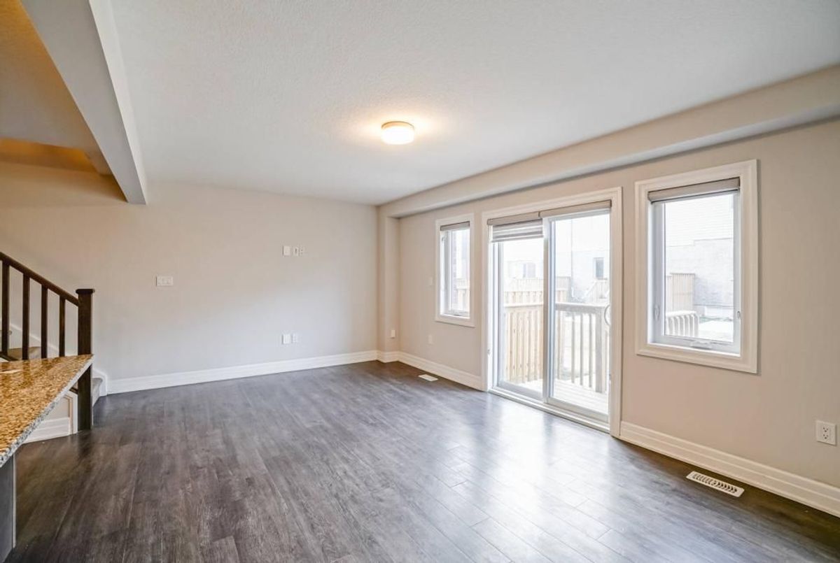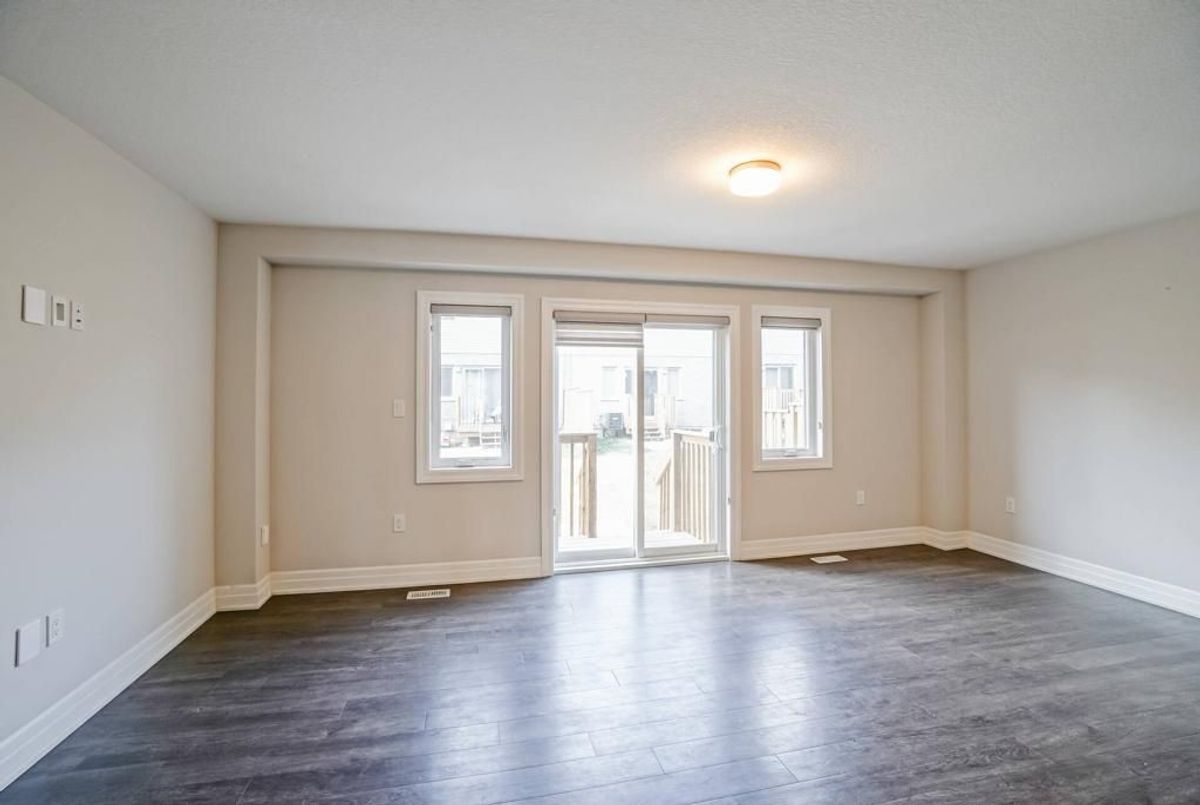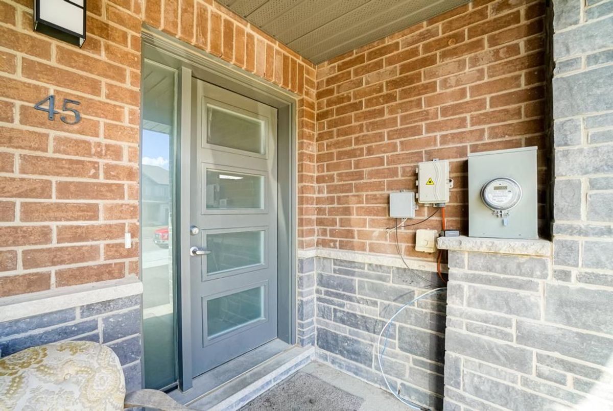 Gorgeous townhouse in desirable family friendly neighbourhood. 45 Nieson St is ideally located close to schools, parks, shopping and only minutes from Hwy 401. this modern townhome Freshly painted features a stone and brick exterior, single car garage with huge Driveway for 2 additional car parking and covered porch. Step inside the chic foyer with powder room and access to the garage, and make your way into the main living space with Modern Finish Vinyl Flooring throughout. The open concept main floor features a light-filled living room and dining room with sliding patio doors leading to the backyard area. The upgraded kitchen offers stainless steel appliances, ample counterspace, modern cabinet and an L-shaped granite counter with breakfast bar and room for 4 stools. Heading upstairs, you will be pleasantly surprised to find a spacious master retreat, with a large walk-in closet, ensuite bath with walk-in shower and additionally 2 bright bedrooms, a shared bathroom, and a convenient upstairs laundry.