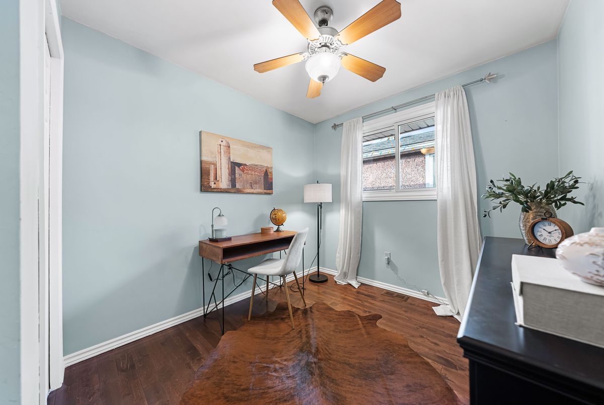 Welcome to this charming all-brick bungalow, perfectly situated on a fully fenced lot with mature trees, offering both privacy and a serene setting. The home exudes warmth and character from the moment you step inside, with gleaming hardwood floors throughout the main level, creating an inviting, cohesive living space. The bright, functional kitchen is designed for everyday living, featuring durable laminate countertops, convenient remote-controlled under-cabinet lighting, and high-quality Samsung stainless steel appliances, including a stove, refrigerator, and microwave with range hood-ideal for everything from quick meals to gourmet dinners. With four bedrooms-three on the main floor and one finished bedroom in the lower level-this home provides ample space for a growing family, guests, or a home office. The finished basement offers incredible versatility, featuring a cozy gas-burning fireplace, a wet bar with double sink, and a stylish 3-piece bathroom. This space is perfect for entertaining, creating a comfortable in-law suite, or designing a recreation area for family fun. Step outside to a lovely patio, seamlessly blending with the beautifully landscaped, treed backyard. Whether relaxing with morning coffee, hosting summer gatherings, or enjoying quiet evenings, this outdoor space provides charm and functionality. The fully fenced yard ensures privacy and safety, ideal for children, pets, or peace of mind. This meticulously maintained home balances comfort and practicality, offering a welcoming atmosphere, versatile living spaces, and a prime location. Combining classic design, modern amenities, and thoughtful upgrades throughout, it's an ideal place to create lasting memories, entertain effortlessly, and enjoy the tranquility of a well-established, treed setting. A truly inviting property that blends charm, function, and warmth in every corner.