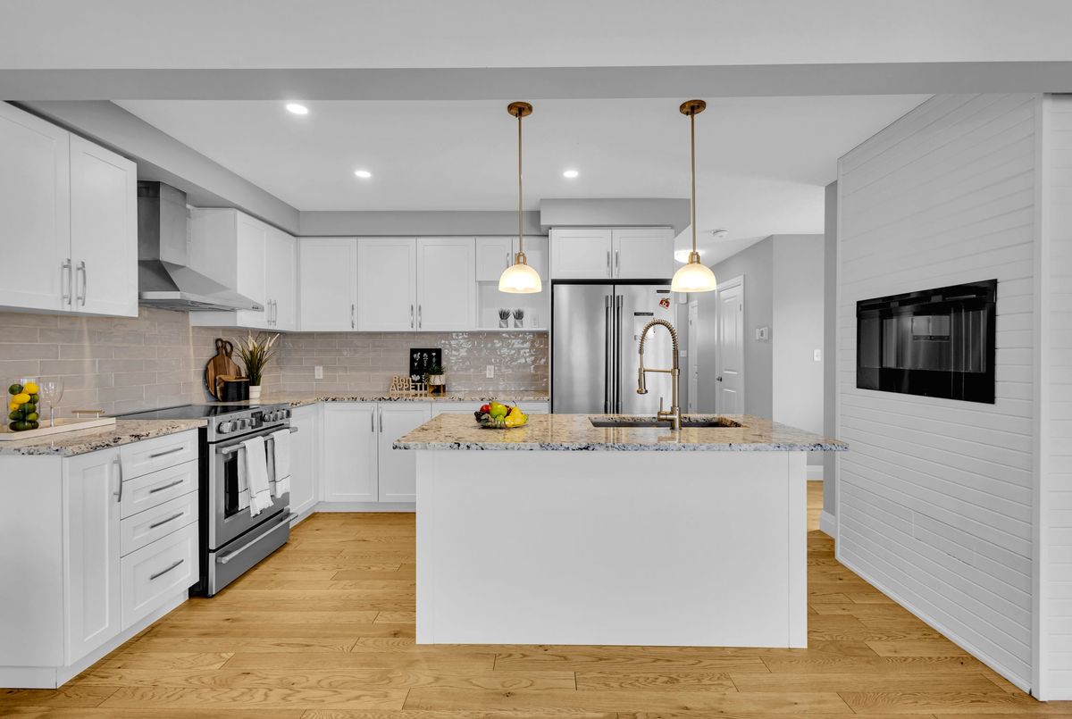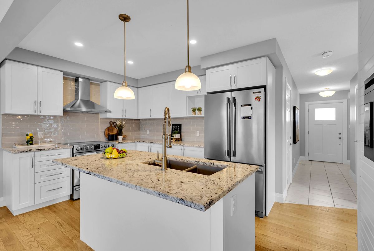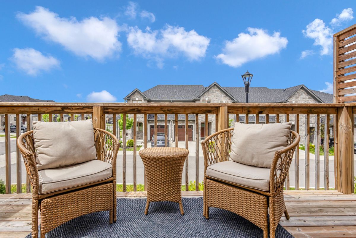 Welcome to 121 Hollybrook Trail! This stunning end-unit condo townhouse is filled with natural light from three sides and is ideally situated in the highly sought-after Doon South - Forest Creek community. This neighbourhood is celebrated for its lush green spaces, scenic trails, excellent schools, convenient amenities, and quick access to Highway 401. This home has been immaculately maintained, showcasing pride of ownership through thoughtful upgrades and attention to detail. The exterior's elegant stonework and full brick façade make a striking first impression. Inside, the main floor offers a welcoming foyer with ceramic tile, flowing seamlessly into the living and dining areas adorned with rich engineered hardwood. The modern kitchen is a showstopper, featuring an electric wall-mounted fireplace, granite countertops, stylish backsplash, abundant cabinetry, stainless steel appliances, a central island and an upgraded granite sink. The open-concept dining and living space is bathed in natural light, complete with California shutters and direct access to a private 9'x17' raised deck-perfect for morning coffee or evening relaxation with a view. Upstairs, hardwood continues through the hallway, which also hosts convenient bedroom-level laundry. This floor offers three spacious bedrooms and two full bathrooms, including a bright and peaceful primary suite with a large walk-in closet and a 3-piece ensuite featuring a glass walk-in shower and granite vanity. The look-out basement with oversized windows is unfinished, providing endless potential for customization. It includes a rough-in for a future bathroom and a cold room for extra storage. Additional features include: freshly painted interiors, a 200-amp electrical panel, rough-in for an electric vehicle charger in the garage, and low-maintenance living with snow removal and lawn care handled by condo management.