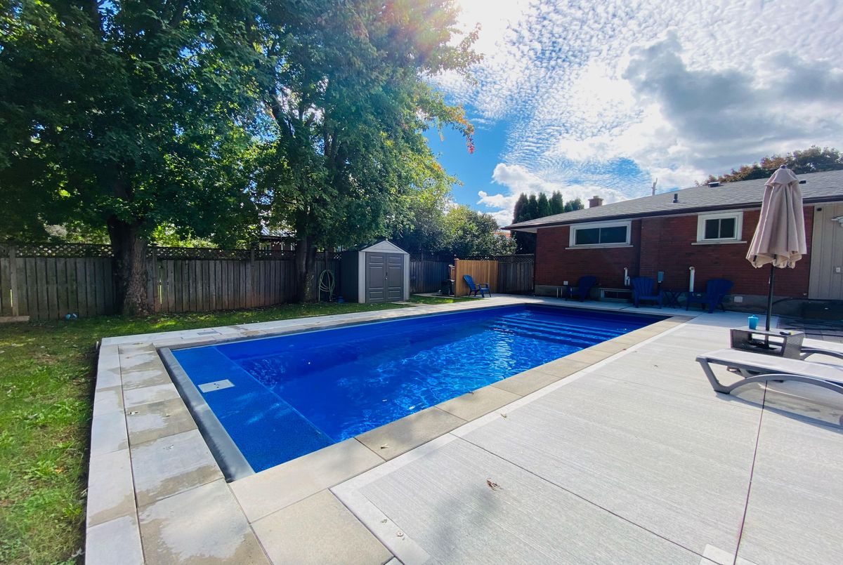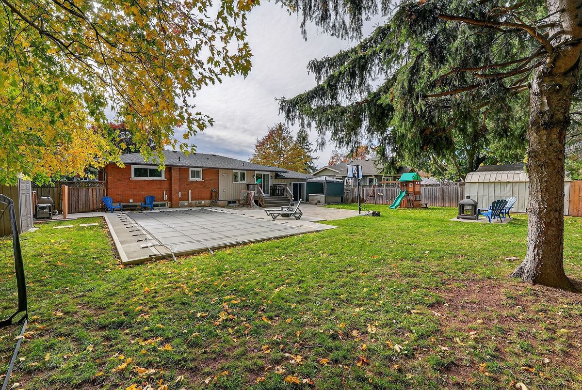 Gorgeous, immaculately maintained, move-in-ready, spacious, 3 bedroom, 2 bathroom detached bungalow, located in desirable Old Grimsby, in a family friendly neighborhood on a quiet cul-de-sac. Walk out from sliding doors of the large family room with fireplace or walk up a few stairs to a beautifully updated modern open concept kitchen leading out from patio doors to a huge fenced in backyard oasis great for entertaining and relaxation - this beautiful private backyard has all you could wish for, boasting a fibreglass inground salt water pool with retractable cover, concrete deck around the pool, hot tub with retractable cover & firepit area. Large spacious kitchen features quartz countertops, stainless steel appliances, eat-in breakfast area, bar/wine fridge, gas stove, lots of cupboard space and open concept to a bright living room with fireplace. Primary bedroom has a 4 piece en-suite walkthrough bathroom. Lower level is perfect for guests or in-law suite with its own kitchen, living room, large bedroom, 4 piece bathroom, laundry room and storage areas. This home combines both comfort and convenience. Roof (July 2024); Inground pool (May 2023); Concrete deck around the pool (May 2024); Heater installed (Sept. 2025); Main Floor Fridge (summer 2023). Minutes to parks, schools, shopping, restaurants & all amenities. A great place to live, located close to major highways.