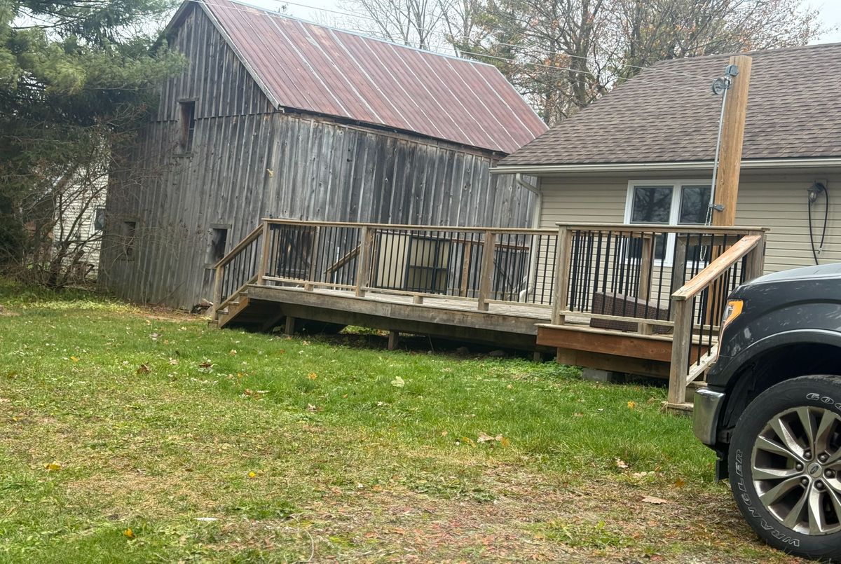 Cute as a button starter home in the quaint village of Holstein. Quiet dead end street. Many extras and up grades. Large deck (side and rear) ideal for entertaining. Home is bigger than it looks and well maintained. New laminate flooring in bedrooms (oct 2025) Large eat in kitchen with under cabinet lighting and brick backsplash. Pot lighting in family room. Patio doors to deck and single door to side deck. Living / Dining room combination. Main floor laundry and 2 piece powder room (updated) Drilled well. Septic pumped October 2025. 2 storey barn at back of property 20' x 26'. Upper level may require some work but ideal for the handy man and storage.