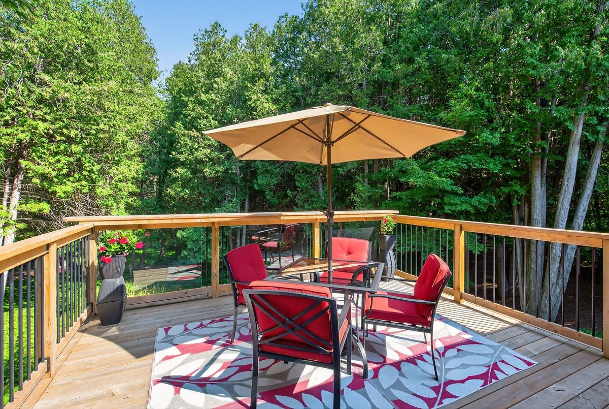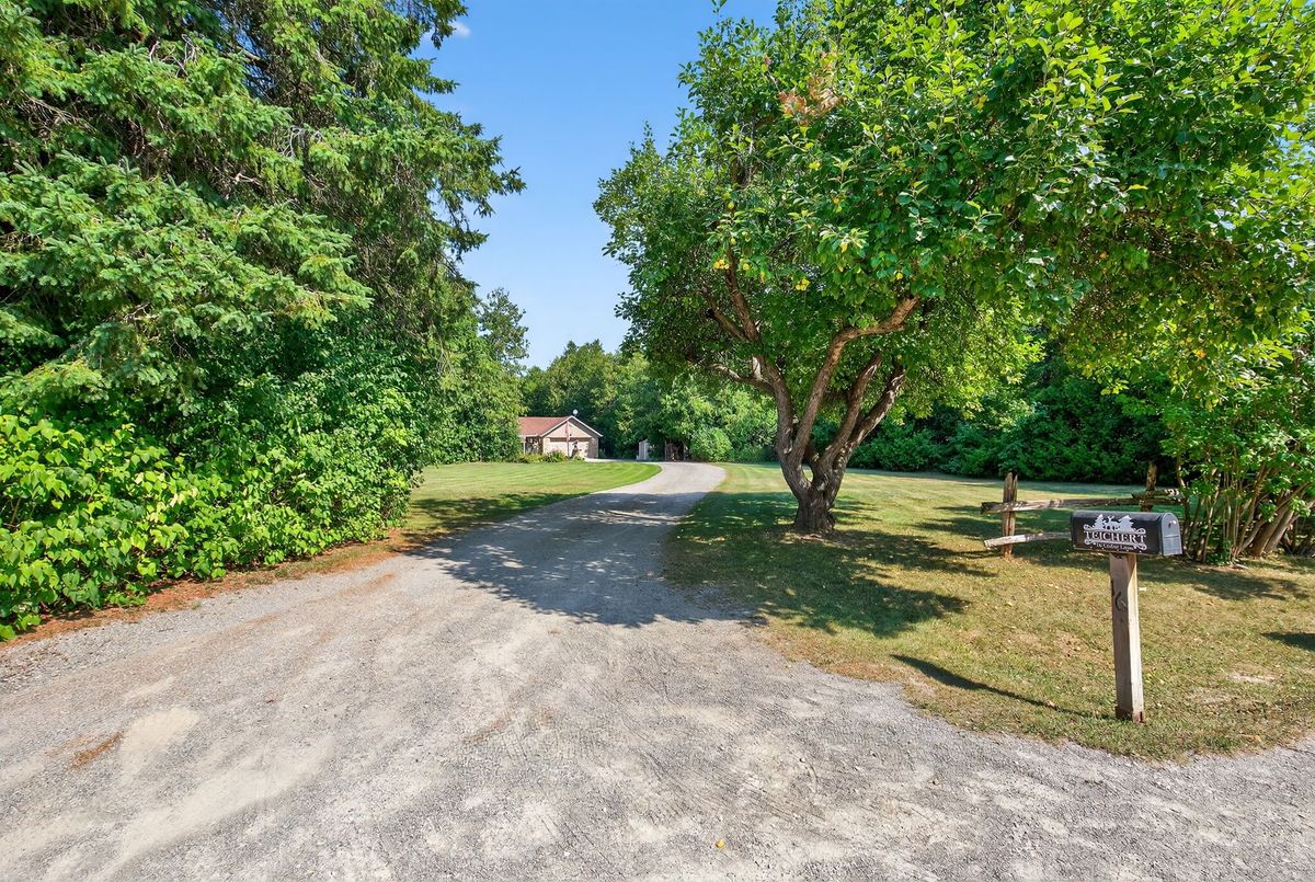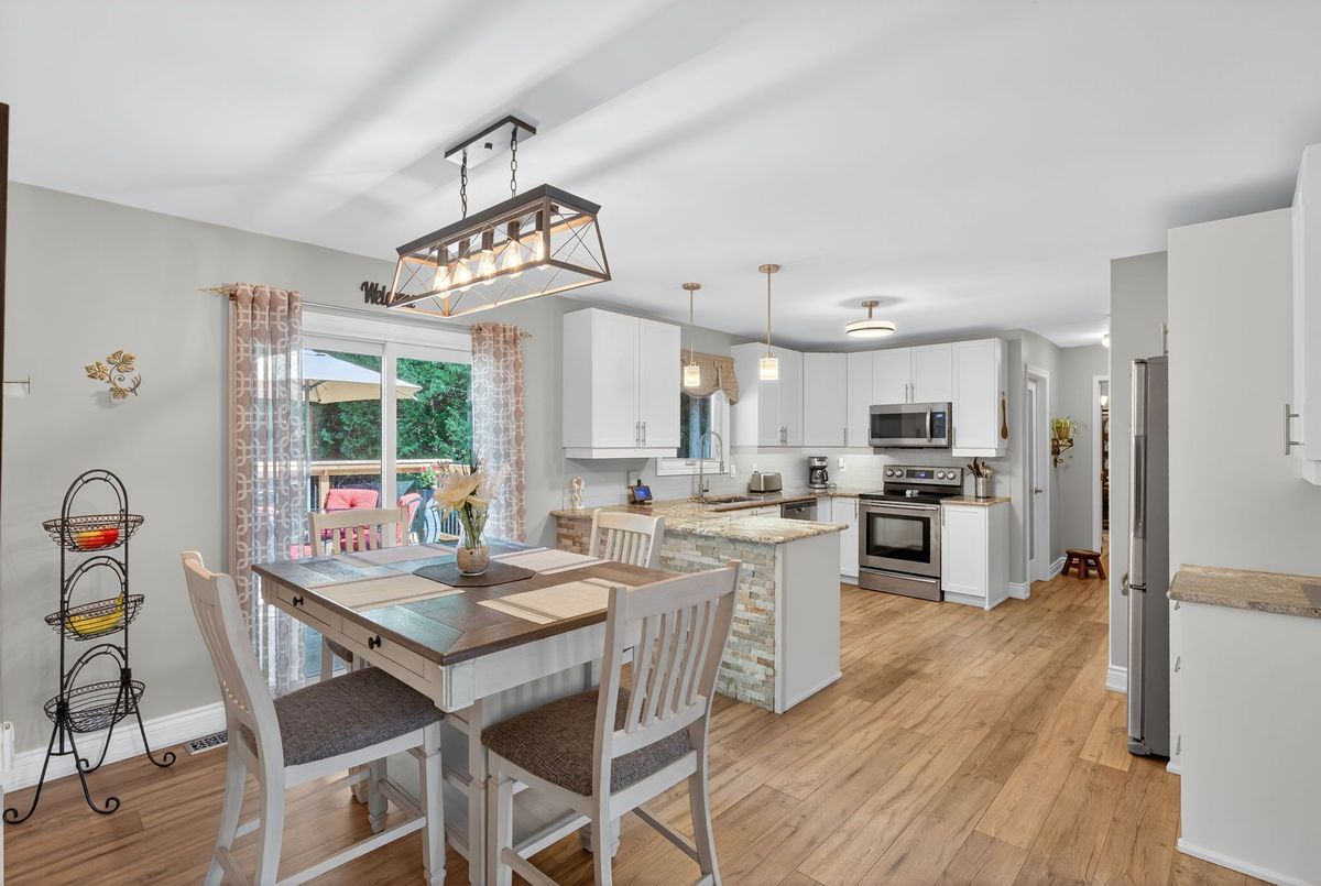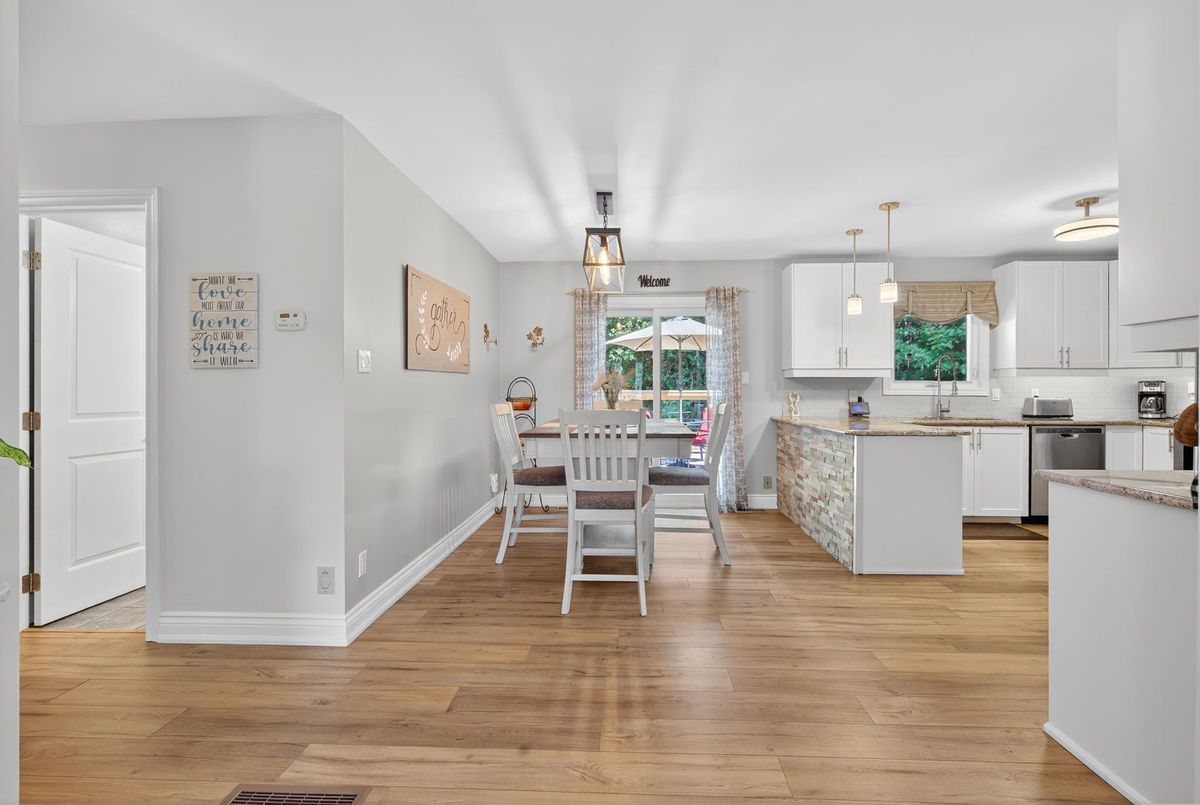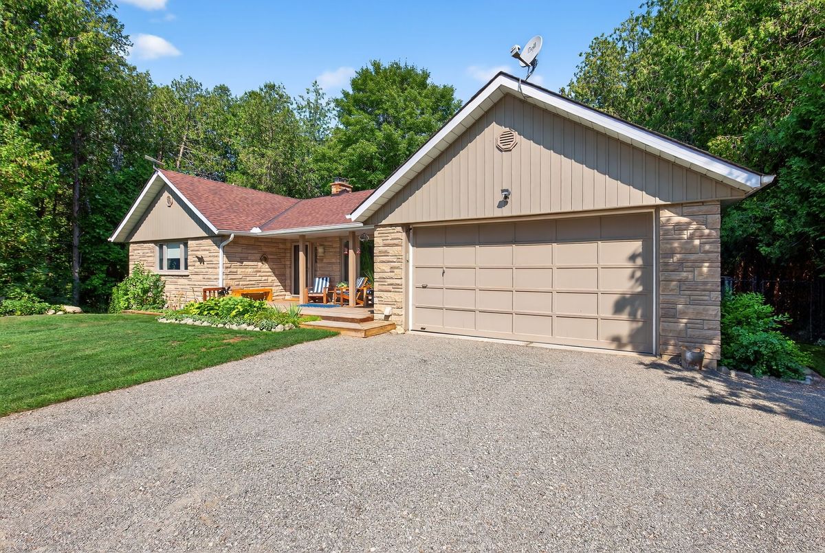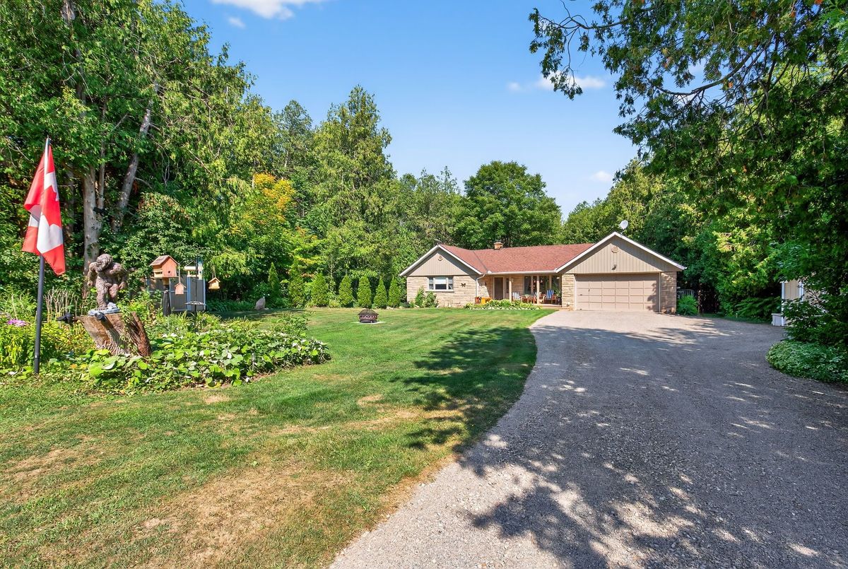 Discover this stunning bungalow nestled on a quiet dead-end country road, set on a breathtaking 1.2-acre lot with serene views and the peaceful sound of Sheldon Creek running behind the property. The main floor offers a spacious living room, formal dining room, and an updated kitchen featuring granite countertops and a walk-in pantry. Enjoy meals in the bright eat-in area, or step outside to the large 2022-built deck perfect for relaxing and entertaining. The home features 3 generously sized bedrooms, with the primary suite boasting a private 3-piece ensuite. Luxury vinyl flooring runs throughout the main level for a modern, low-maintenance finish. The lower level is ideal for both relaxing and entertaining, with a large recreation room, a walk-out to the patio and hot tub area (hot tub included as is), plus abundant storage. There is also a roughed-in sauna ready for your personal touch. Recent Updates & Features: Roof (2019)Windows (2010)Furnace & A/C (2015)Water Softener (2019)Ultra Violet System (2015)Hot Water Tank (Owned)Gas Stove & BBQ Line (2020)New Well Pump (2021)Whether you're looking to raise a family, downsize, or enjoy a peaceful retirement, this property offers the perfect blend of country charm and modern comfort. Enjoy evening walks on the Quiet Dead End Country Rd. Enjoy breakfast on an elevated deck surrounded by a canopy of trees and relax to the sound of the creek. Finished walk out basement has in-law potential. Side entrance from den to partially fenced back yard!