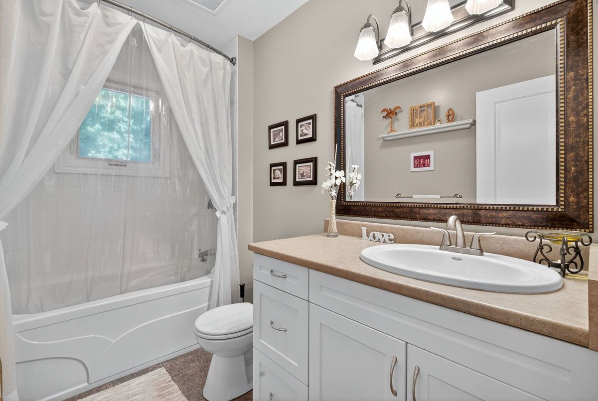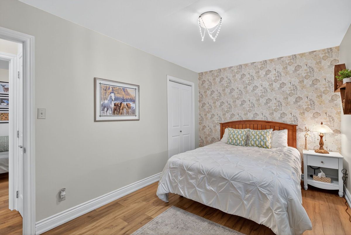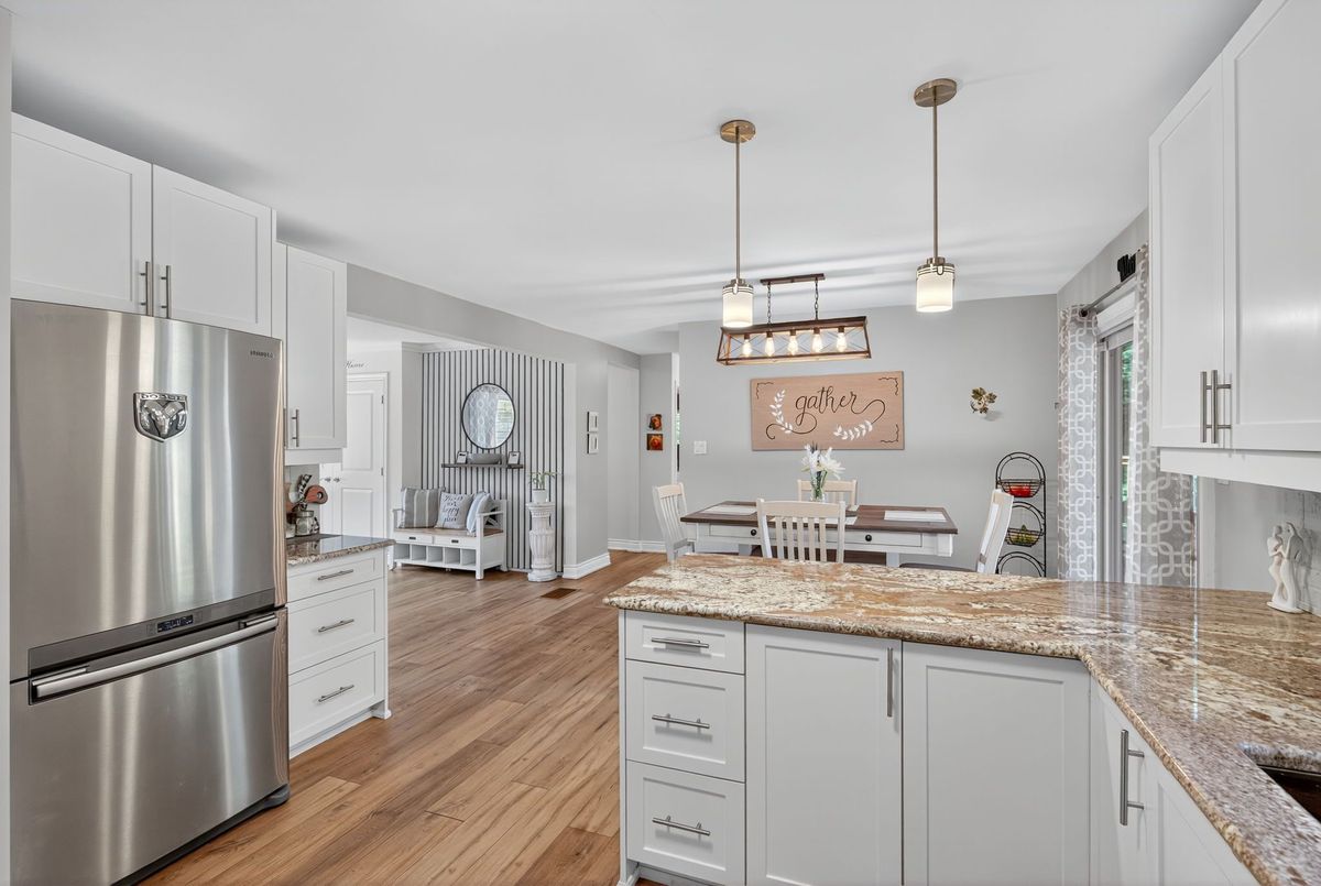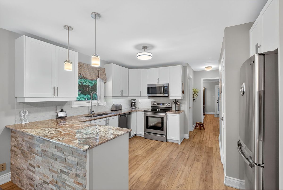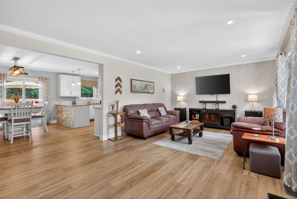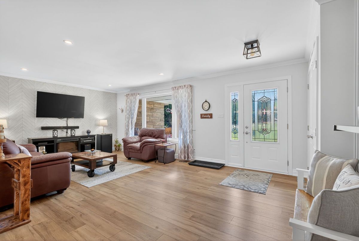 Discover this stunning bungalow nestled on a quiet dead-end country road, set on a breathtaking 1.2-acre lot with serene views and the peaceful sound of Sheldon Creek running behind the property. The main floor offers a spacious living room, formal dining room, and an updated kitchen featuring granite countertops and a walk-in pantry. Enjoy meals in the bright eat-in area, or step outside to the large 2022-built deck perfect for relaxing and entertaining. The home features 3 generously sized bedrooms, with the primary suite boasting a private 3-piece ensuite. Luxury vinyl flooring runs throughout the main level for a modern, low-maintenance finish. The lower level is ideal for both relaxing and entertaining, with a large recreation room, a walk-out to the patio and hot tub area (hot tub included as is), plus abundant storage. There is also a roughed-in sauna ready for your personal touch. Recent Updates & Features: Roof (2019)Windows (2010)Furnace & A/C (2015)Water Softener (2019)Ultra Violet System (2015)Hot Water Tank (Owned)Gas Stove & BBQ Line (2020)New Well Pump (2021)Whether you're looking to raise a family, downsize, or enjoy a peaceful retirement, this property offers the perfect blend of country charm and modern comfort. Enjoy evening walks on the Quiet Dead End Country Rd. Enjoy breakfast on an elevated deck surrounded by a canopy of trees and relax to the sound of the creek. Finished walk out basement has in-law potential. Side entrance from den to partially fenced back yard!