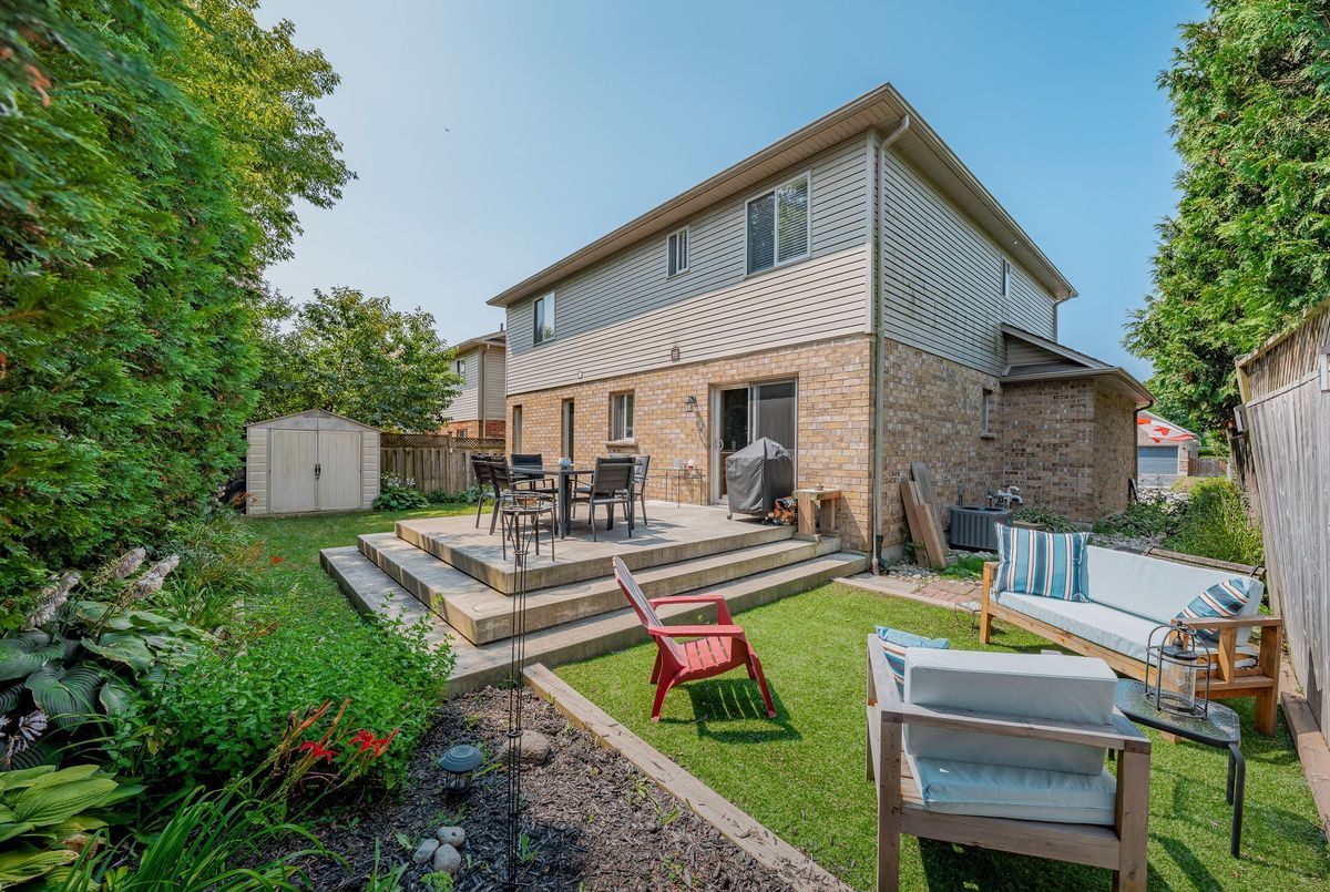 This well maintained two-storey home offers a blend of style, space, and functionality in one of Paris's most sought-after neighbourhoods. The main floor features a spacious sunken living room with vaulted ceilings and a gas fireplace, a large eat-in kitchen with Quartz countertops and slate tile, a versatile front room currently used as a den, a two-piece bath, and convenient main-floor laundry all within a carpet-free layout. Upstairs, the expansive primary suite includes a walk-in closet and private four-piece ensuite. The finished basement provides a generous recreation area and ample storage. Outside, enjoy the privacy of a fully fenced yard with a concrete patio perfect for relaxing or entertaining. With key updates including a new furnace, roof, and A/C, and located minutes from Highway 403, parks, schools, and downtown Paris, this move-in-ready home is an exceptional opportunity in a thriving community.