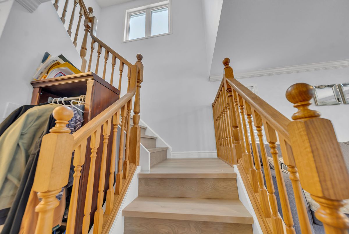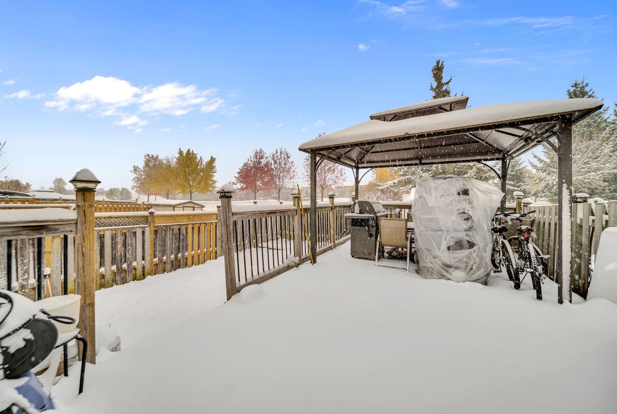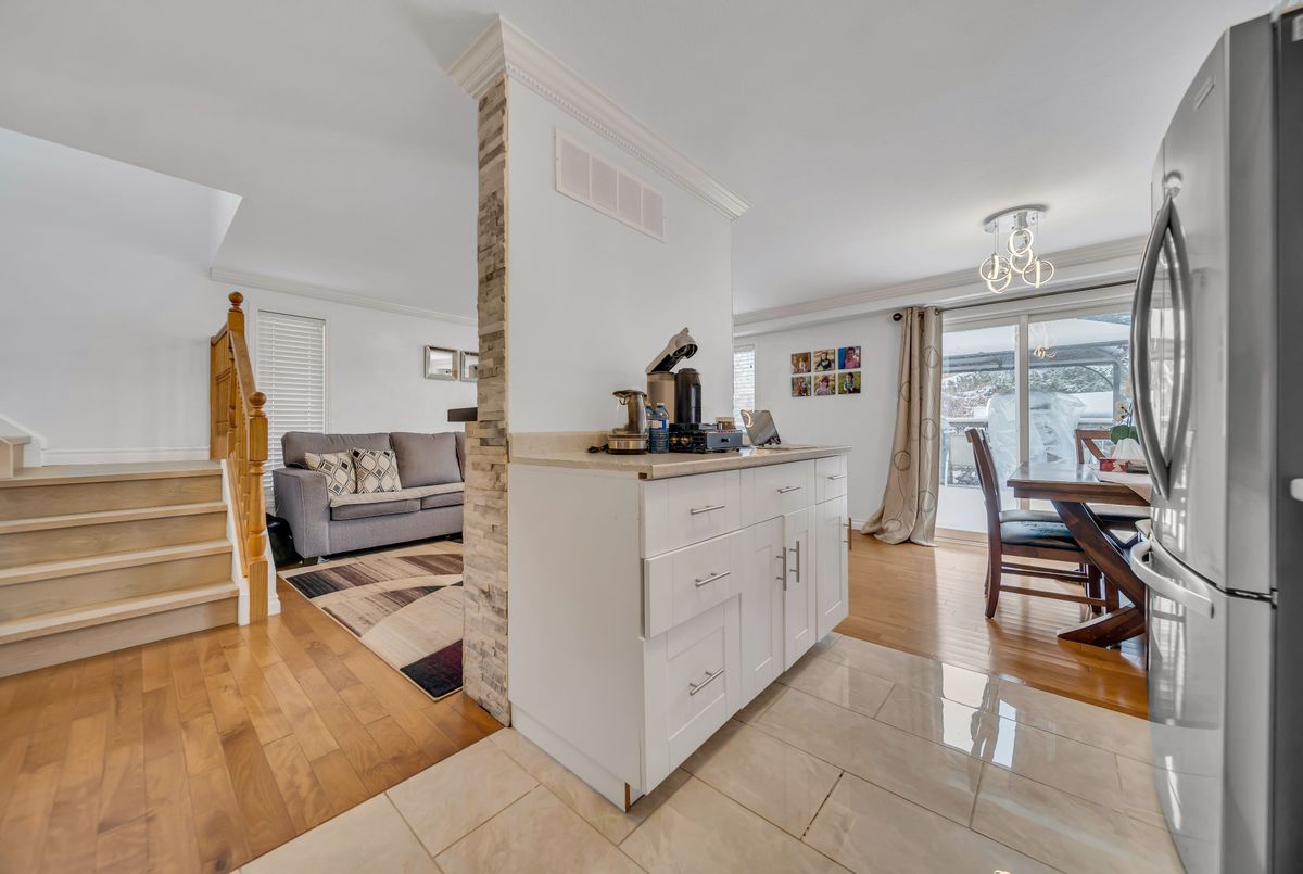Welcome to this beautifully updated freehold end unit townhouse. Located in a prime area, this home offers unparalleled convenience with schools, parks, shopping, recreation, and the expressway just a stone's throw away. Step inside to an inviting open-concept main floor with garage access, featuring a 2pc bath, dining area, eat-in kitchen with ample countertop space plus an island with sliders to the deck and fully fenced backyard which overlooks the serene Foxglove Park. The upper level features an oak staircase, spacious primary bedroom with a walk-in closet, offering plenty of storage. Two additional generously sized bedrooms and a well-appointed 4pc bathroom complete this level, making it ideal for a growing family. The professionally finished basement further extends your living space, providing a large rec room for entertainment and a 3pc bathroom for added convenience. Recent updates include vinyl flooring throughout the main and upper level, a new oak staircase, fresh paint throughout, and a roof shingles in 2020. The furnace and A/C were serviced in 2022, ensuring year-round comfort and efficiency. This delightful townhouse is move-in ready, offering all the modern comforts and conveniences you desire. Don't miss the chance to make this your new home!