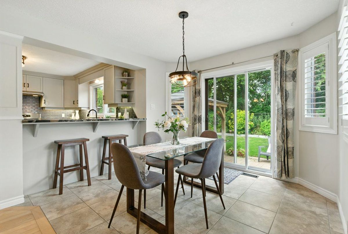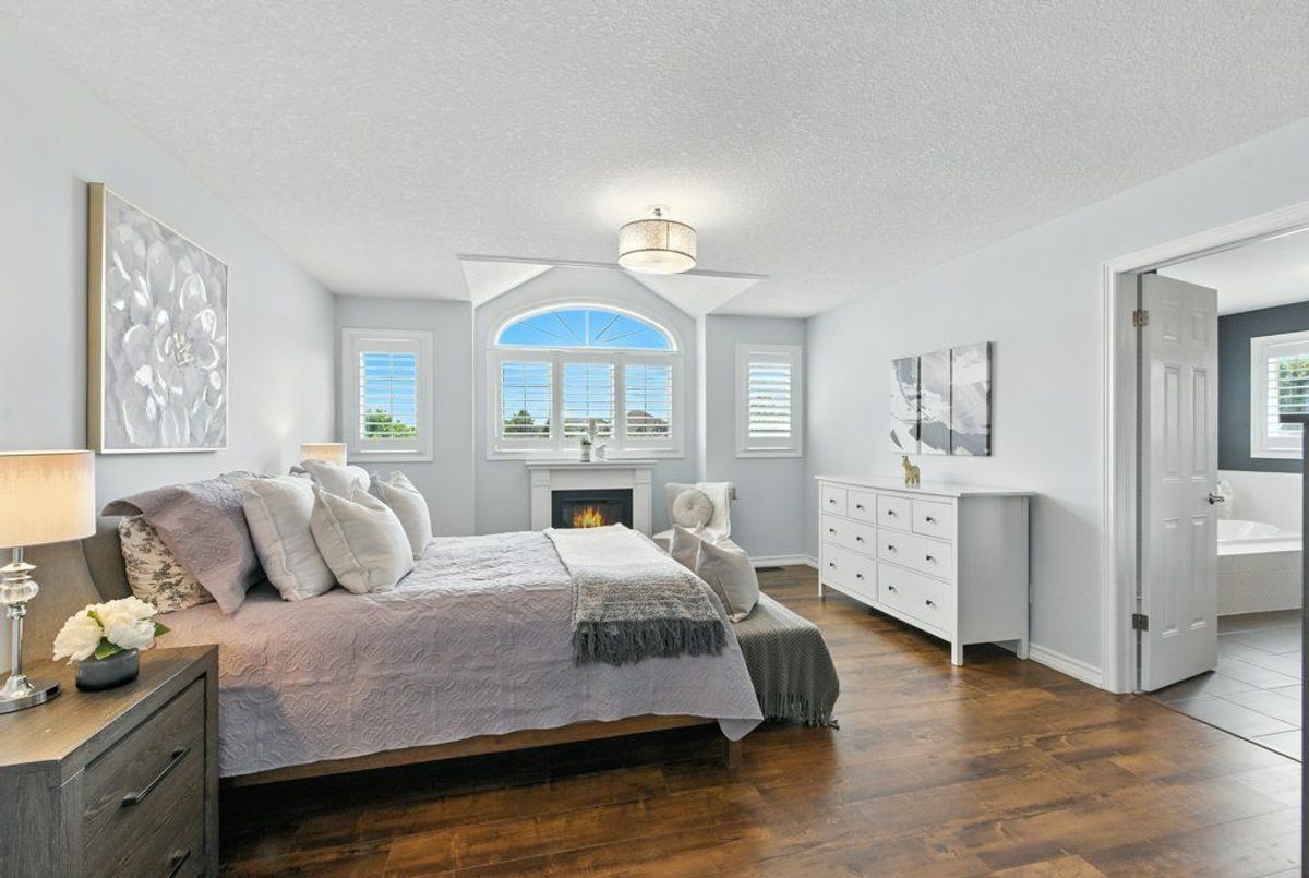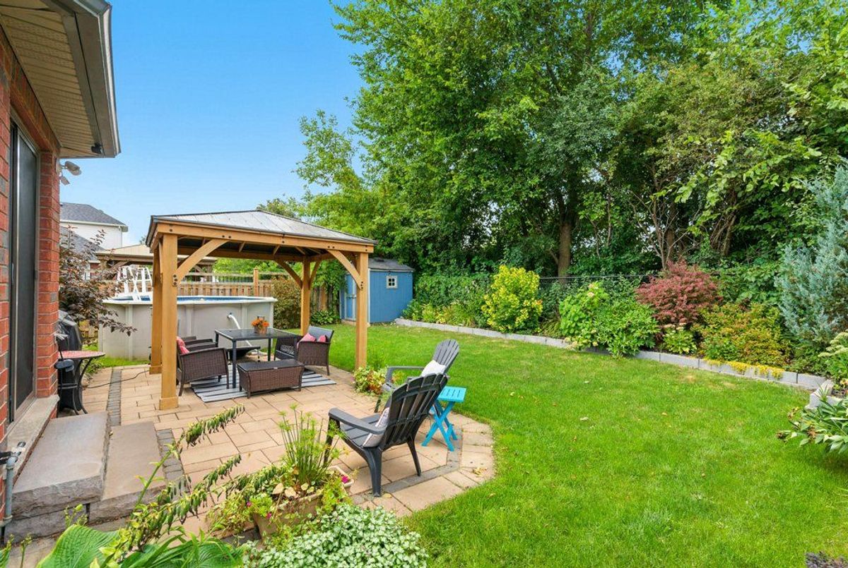 Beautiful, quiet family neighbourhood. This two-storey detached home offers 4+1 bedrooms, 4 baths, finished from top to bottom and located in a sought-after neighbourhood, the perfect mix of privacy and convenience. Nestled close to a park and backing onto walking trails, surrounded by tall trees and landscaped gardens, this property is a true family retreat. Step inside to a welcoming foyer open to above. Open-concept living and dining room with hardwood floors. The upgraded kitchen features custom cabinetry, newer stainless steel appliances, one of kind riverbed granite counters, a raised breakfast bar, and a sunny breakfast area with walkout to the backyard. Open concept cozy family room with fireplace, guest bathroom, and laundry with garage access complete the main floor. Upstairs, the private primary suite includes a fireplace, a massive walk-in closet, and a spa-like ensuite with soaker tub, glass shower, double vanity, and water closet (private toilet room). Three additional bedrooms with ample closets and a full bathroom provide plenty of family space.The fully finished basement adds versatility with a spacious rec room, guest or in-law bedroom, full 3-piece bathroom, plus options for a home office, gym, or extra bedroom. Outdoors, enjoy a double driveway, double garage, and a private backyard retreat with colourful gardens and a gazebo. Located just minutes to Fergus, Guelph, Waterloo/Kitchener, schools, shopping, major highway and lots of amenities around Elora & Fergus. This home is clean, bright and move-in ready.