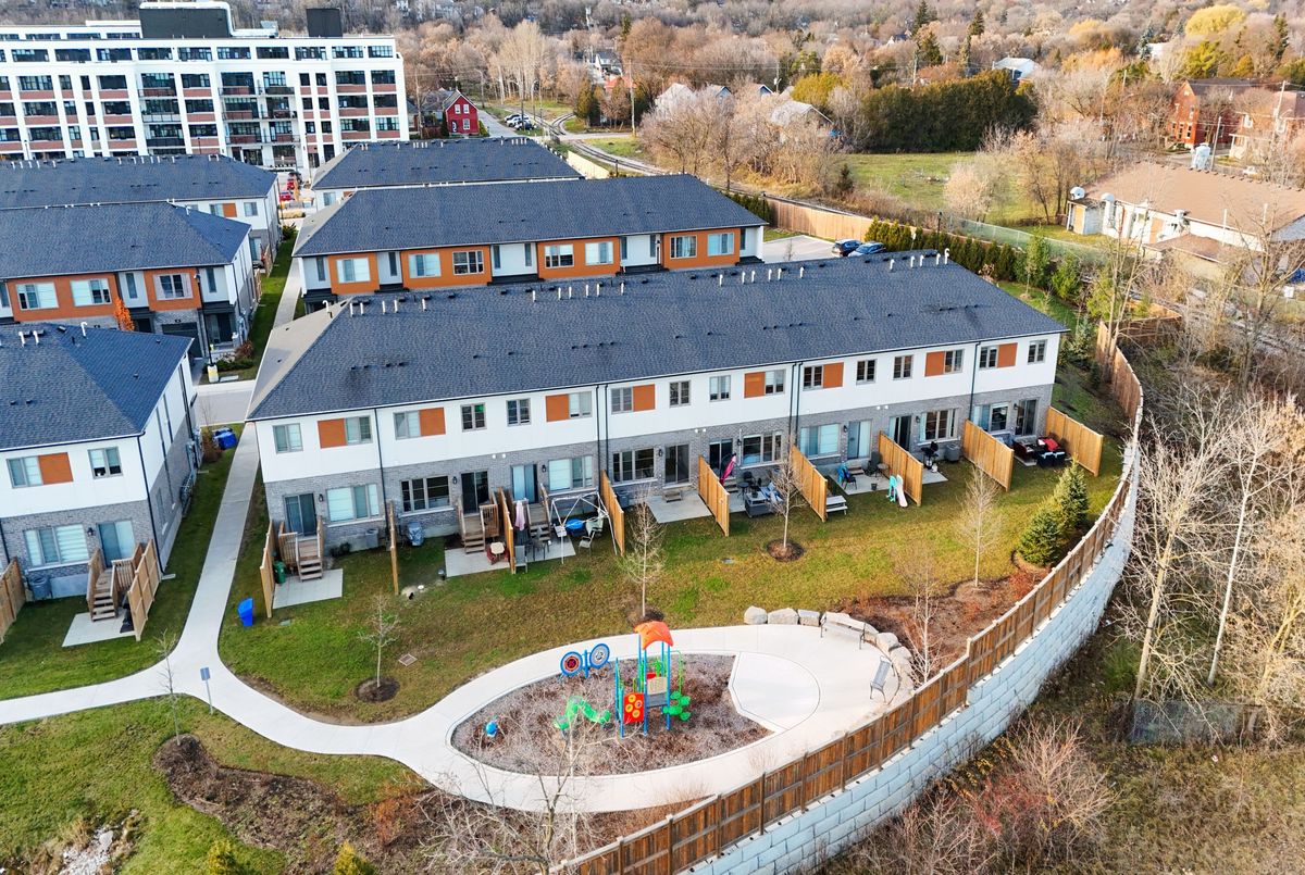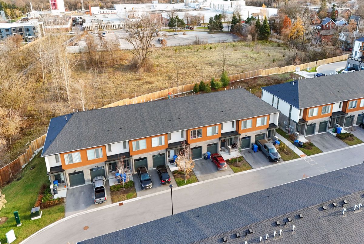 Location, Location !! Located in the heart of the rejuvenated St. Patrick's Ward, with local shops and restaurants, and walking distance, parks, schools, Railway Station and downtown Guelph! Built by Reids Heritage Homes, this two-storey townhome sits at 1294 square feet with 3 bedrooms and 2.5 bathrooms including a primary ensuite. Fresh Recently Painted, stainless steel appliances, backsplash, and pot lights. Its open-concept to the living room and dining room that has glass sliding doors to a private backyard with a small deck plus patio area and no rear neighbours. Upstairs has the three bedrooms and two full bathrooms plus a very convenient laundry area. This home is perfect for first-time home buyers, young families and parents of U of G students. The Monthly Maintenance Fees Cover All Ground Maintenance, Including Grass Cutting, Seasonal Clean-Up, And Snow Removal Ensuring A Truly Low-Maintenance Lifestyle In A Vibrant Community.