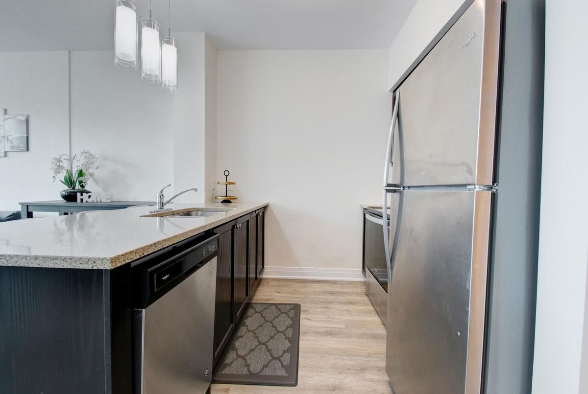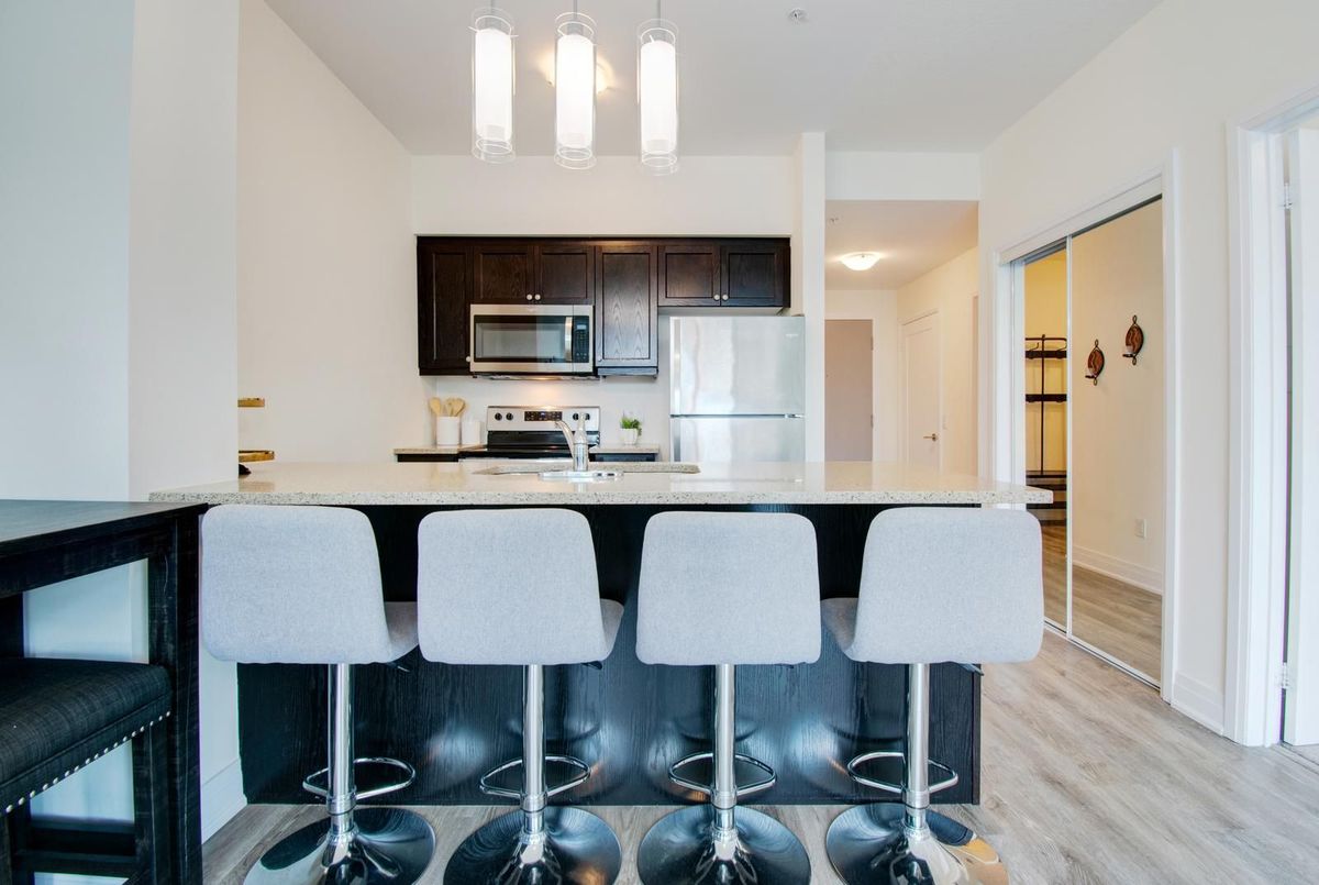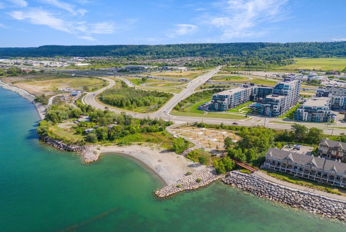Welcome to Aquazul-Resort-Style Living in Grimsby-on-the-Lake!Discover this bright and spacious 1-bedroom + den suite in the highly sought-after Aquazul Condominiums. Designed with comfort and modern living in mind, this home features 9 ft ceilings, floor-to-ceiling windows, and an open-concept layout that fills the space with natural light. The stylish kitchen boasts stainless steel appliances, elegant backsplash, upgraded cabinetry, and a breakfast bar, seamlessly flowing into the living and dining area-ideal for entertaining or relaxing. The primary bedroom includes a large walk-in closet, while the versatile den is perfect for a home office or guest space. Additional conveniences include in-suite laundry and high-end finishes throughout.Enjoy resort-inspired amenities including an outdoor heated pool with cabanas and BBQ stations, fully equipped fitness centre, rooftop terrace, modern party/club room, billiards and games room, and media lounge. The building also offers secure underground parking, a storage locker, EV charging stations, and beautifully landscaped grounds.Steps from cafés, restaurants, lakeside trails, and Casablanca Beach, and just minutes to the QEW & Grimsby GO, this location provides the perfect balance of convenience and lifestyle.Don't miss your chance to enjoy the best of Grimsby-on-the-Lake living - book your showing today!