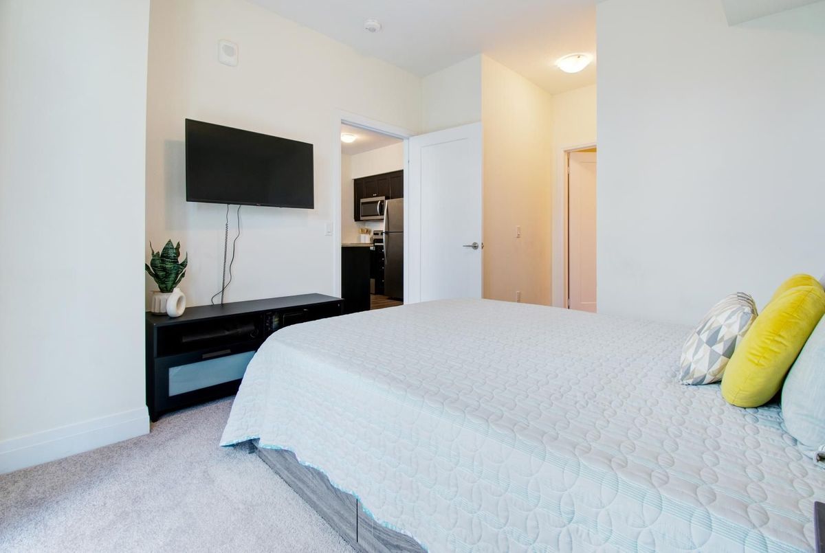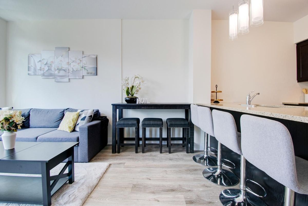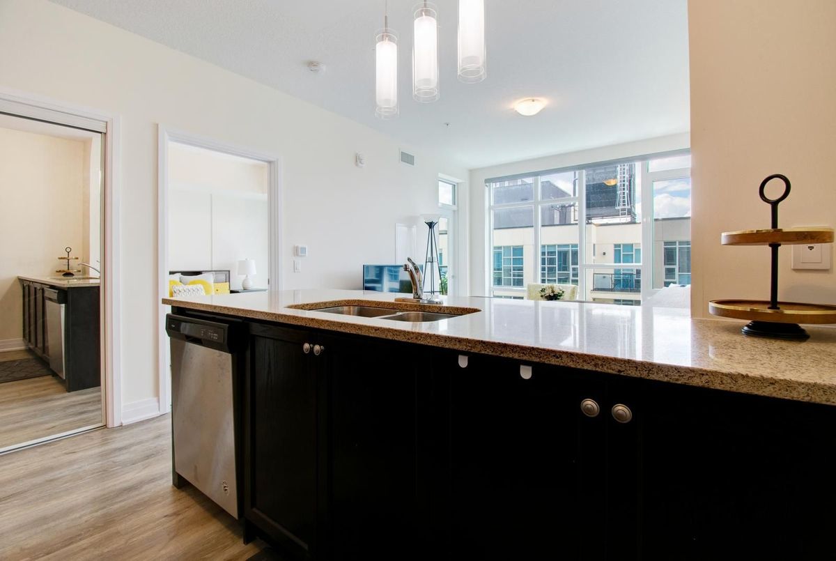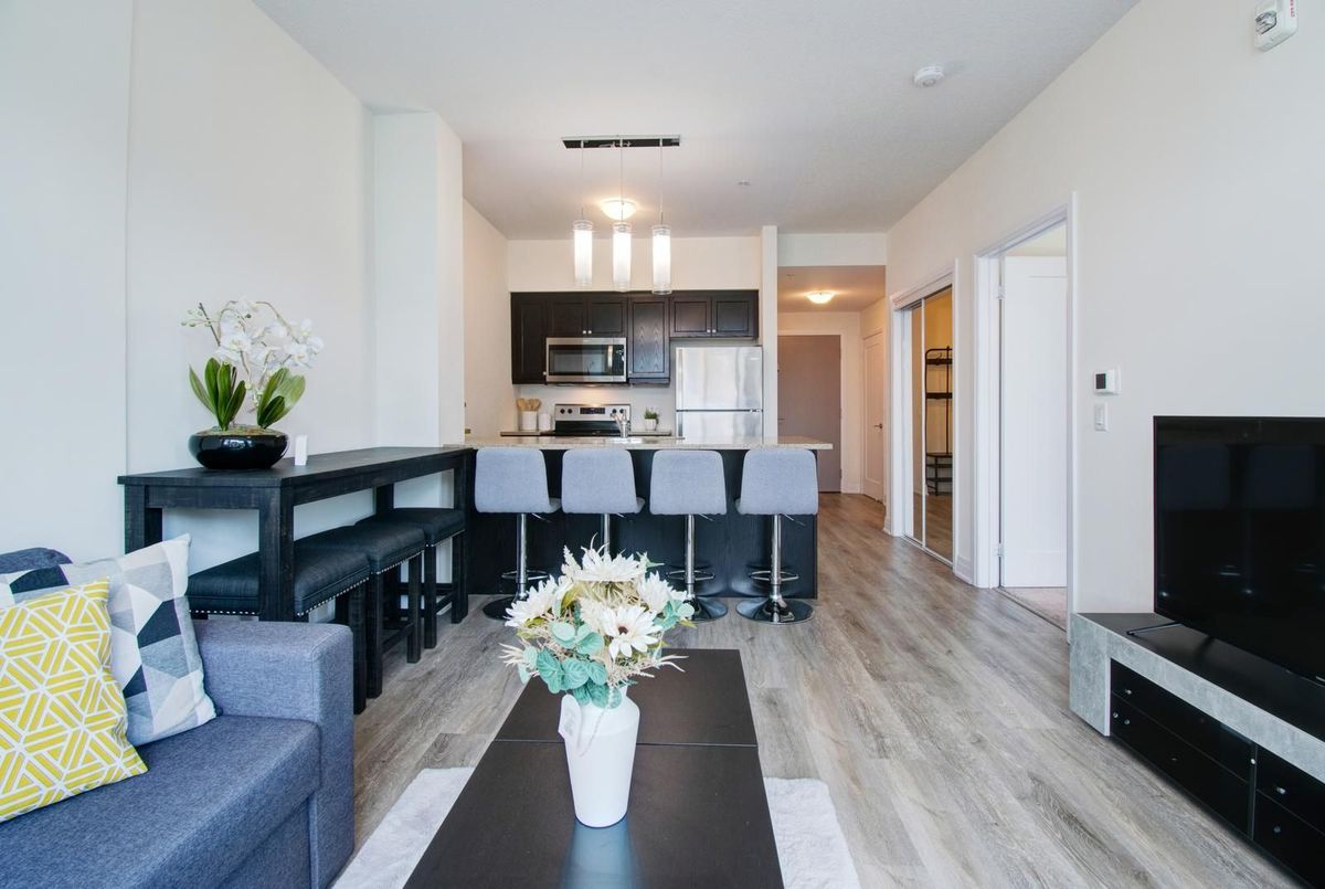 Welcome to Aquazul-Resort-Style Living in Grimsby-on-the-Lake!Discover this bright and spacious 1-bedroom + den suite in the highly sought-after Aquazul Condominiums. Designed with comfort and modern living in mind, this home features 9 ft ceilings, floor-to-ceiling windows, and an open-concept layout that fills the space with natural light. The stylish kitchen boasts stainless steel appliances, elegant backsplash, upgraded cabinetry, and a breakfast bar, seamlessly flowing into the living and dining area-ideal for entertaining or relaxing. The primary bedroom includes a large walk-in closet, while the versatile den is perfect for a home office or guest space. Additional conveniences include in-suite laundry and high-end finishes throughout.Enjoy resort-inspired amenities including an outdoor heated pool with cabanas and BBQ stations, fully equipped fitness centre, rooftop terrace, modern party/club room, billiards and games room, and media lounge. The building also offers secure underground parking, a storage locker, EV charging stations, and beautifully landscaped grounds.Steps from cafés, restaurants, lakeside trails, and Casablanca Beach, and just minutes to the QEW & Grimsby GO, this location provides the perfect balance of convenience and lifestyle.Don't miss your chance to enjoy the best of Grimsby-on-the-Lake living - book your showing today!