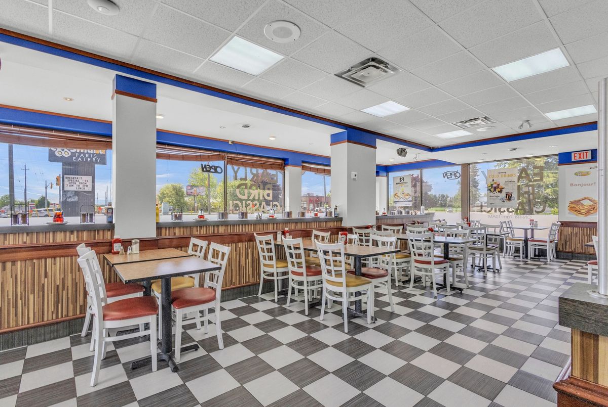 Take advantage of this exceptional opportunity to own a successful and well-established restaurant located at one of the county's busiest intersections, ensuring maximum exposure and high foot traffic. Operating daily from 7:00 AM to 3:00 PM, the business offers a popular and diverse menu of breakfast and brunch options with dine-in, takeout, and delivery services. The spacious 1,700 sq ft retail area includes seating for 64 guests indoors plus additional patio seating, and is supported by ample on-site parking. This turn-key operation features growing sales, low food costs, affordable franchise fees, and strong profit margins. With low rent, a long-term lease, and comprehensive training and support provided, this is an ideal opportunity for both new and experienced operators. Don't miss your chance to own a thriving business in a high-demand location. Low Monthly Rent: $5,860 including TMI and HST