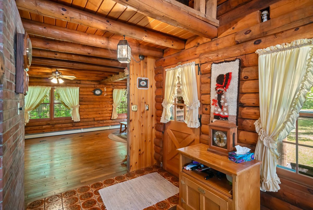 Discover your own private paradise with this lovingly crafted custom log home, built in 1980 by the original owners. Nestled on just under 42 acres featuring a mix of lush forest, open land, and protected wetlands/conservation area (NPCA). this unique property offers peace, privacy, and endless potential. The home features a classic log design with soaring ceilings, rustic charm, and an unfinished basement ready for your vision. The current layout could easily be reconfigured into a 3-bedroom retreat, with one master bedroom on the main floor - making it perfect for families or those looking for a countryside escape. Outside, a detached 3-car garage provides ample storage or workshop space, while the expansive acreage offers trails, wildlife, and the kind of tranquility that's hard to find. Whether you're seeking a hobby farm, a recreational retreat, or simply a serene place to call home, this property delivers. A rare opportunity to own a custom-built log home with character and soul, surrounded by nature yet within reach of town amenities. Clients have a water collection and water reuse system in place and have used only rain water to run this home for many years. Buyer and Buyers Agent to verify all information with regards to the Conservation/wetlands, zoning, room sizes.