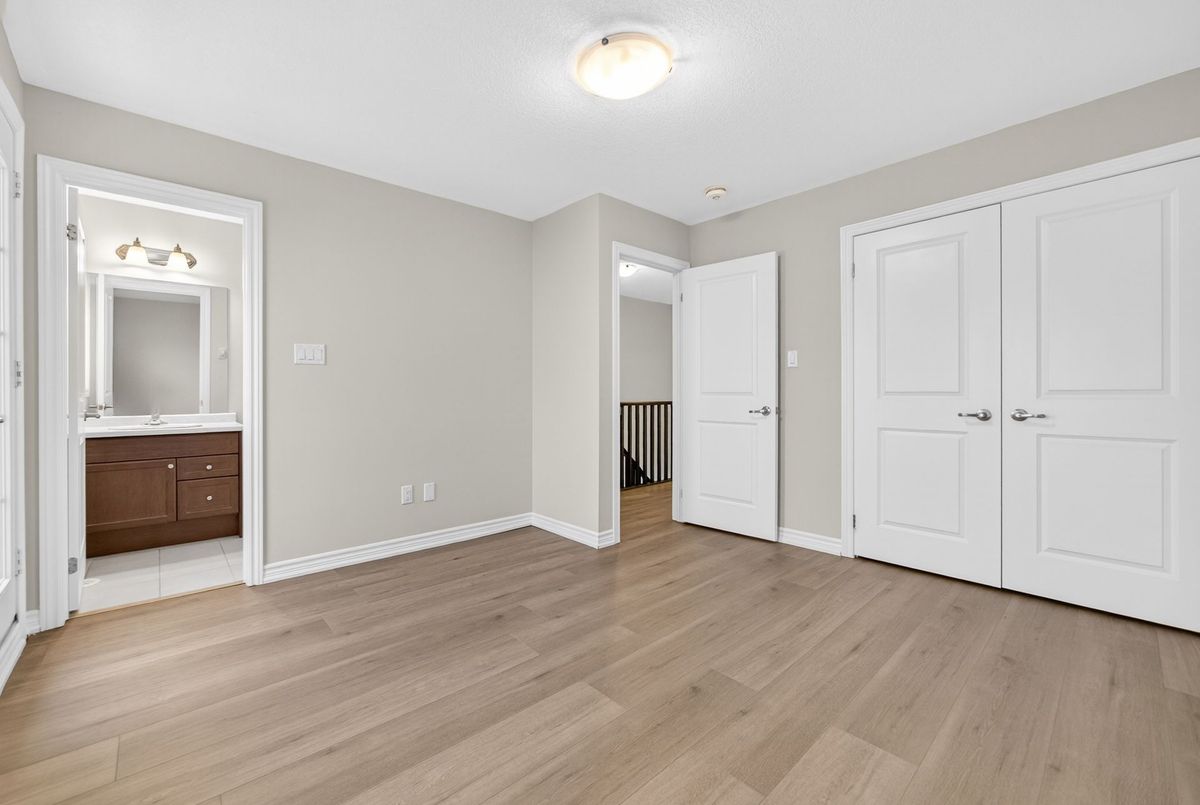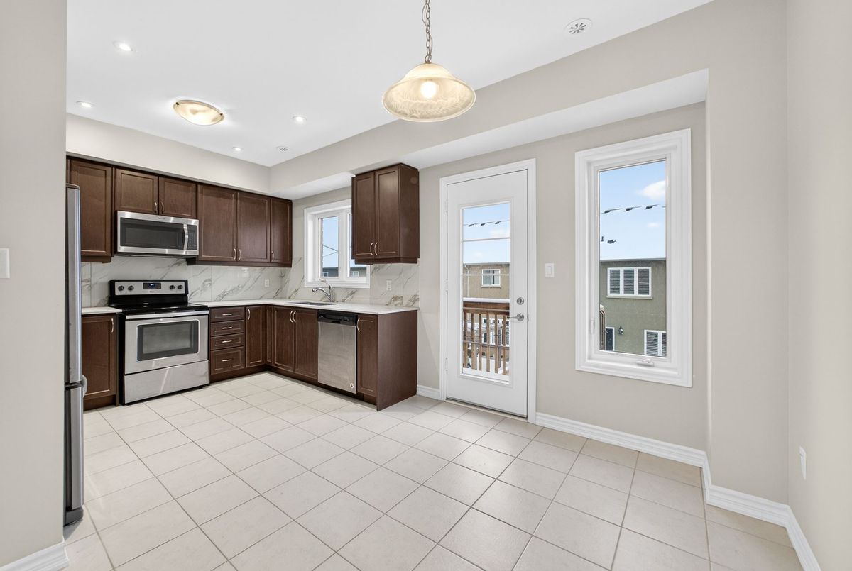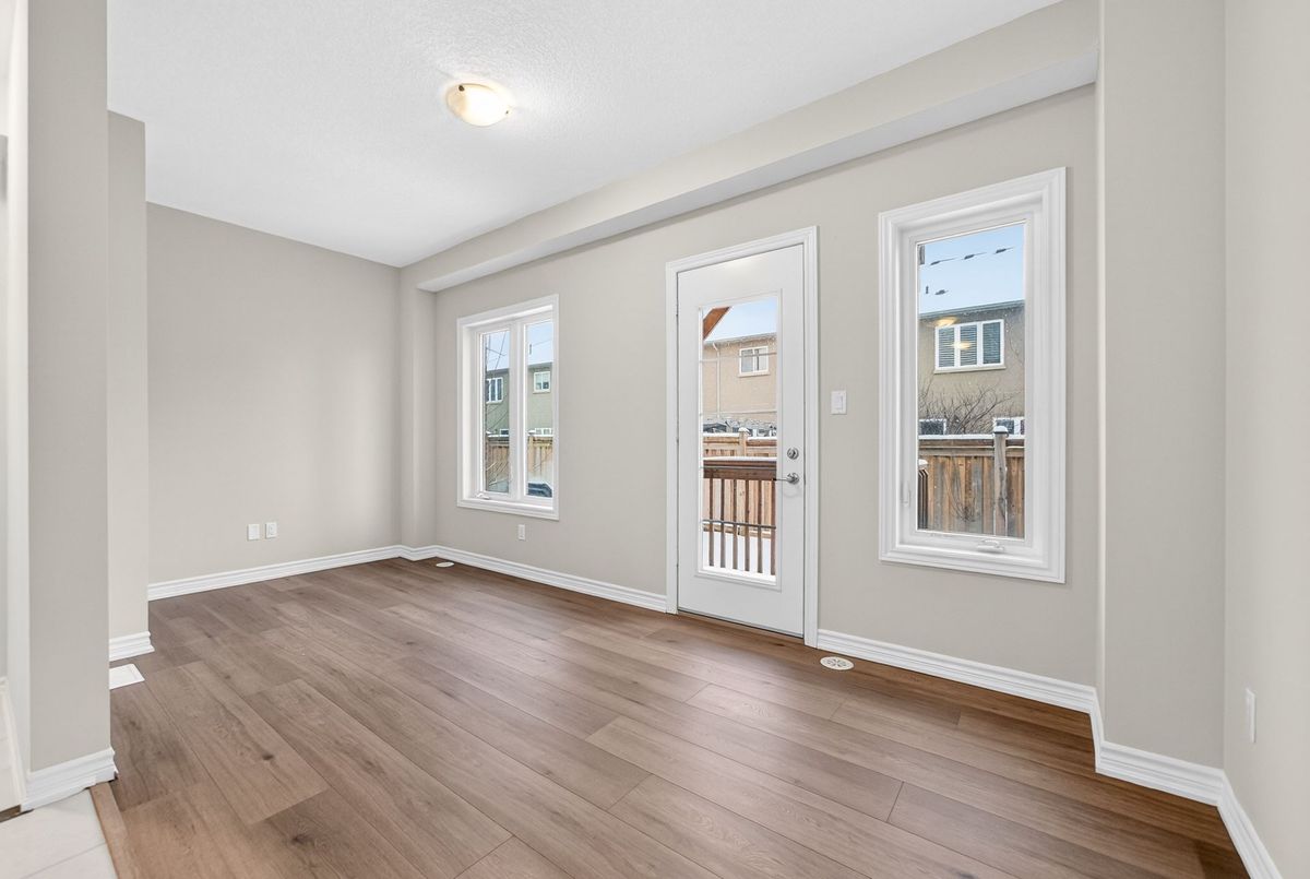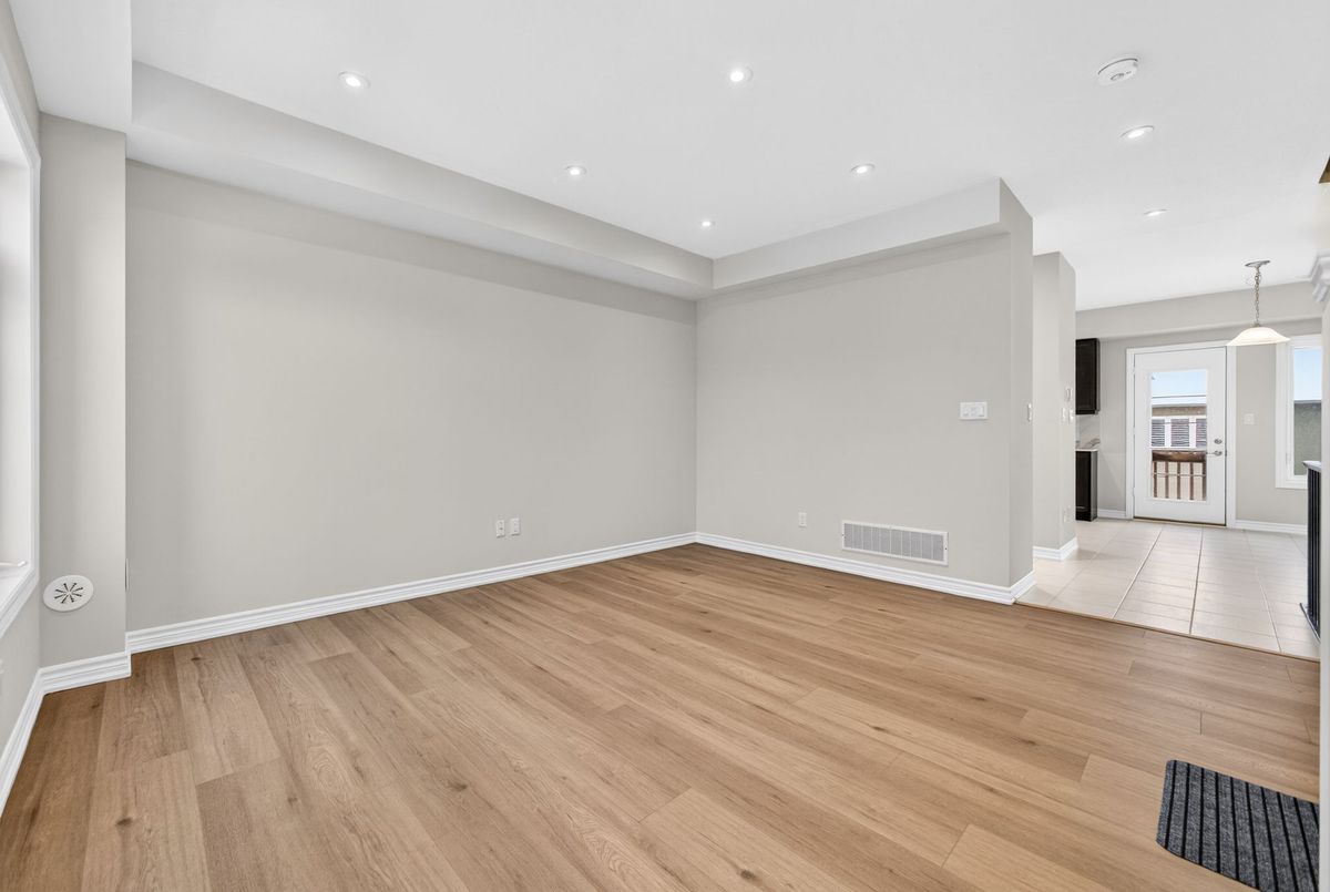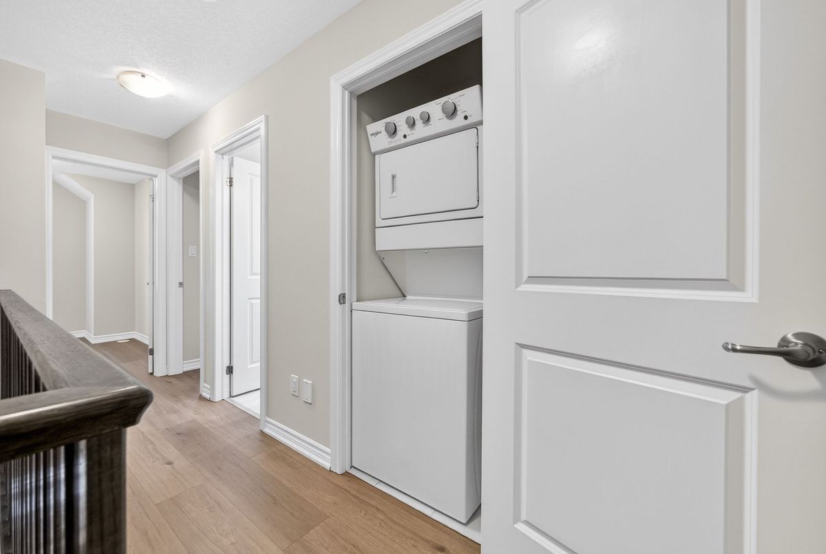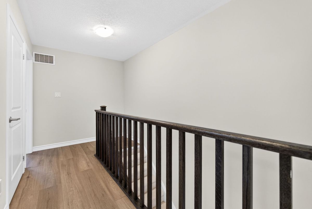 Modern, Sun-Filled Townhome in Prime Waterdown Location - Move-In Ready, Welcome to this beautifully maintained, move-in-ready 3-storey townhouse offering just under 2,000 sq. ft. of thoughtfully designed living space, perfectly suited for first-time home buyers, downsizers, and savvy investors. Ideally located steps from a serene pond and scenic walking trails, this freshly painted 3-bedroom, 2.5-bath home features brand-new laminate flooring, 9-foot ceilings, and an abundance of natural light throughout. Situated in the heart of Waterdown's vibrant and family-friendly community, enjoy walking distance to shops, parks, and schools, with quick access to major highways-making it an excellent choice for commuters and tenants alike. The versatile ground level offers a flexible space ideal as a bedroom, recreation room, or private home office, complete with a walkout to the patio and deck, plus direct access to the attached garage. An unfinished basement provides ample storage or future customization potential-perfect for added value.The open-concept main floor is designed for everyday living and entertaining, featuring a bright living and dining area with large windows and pot lights. The modern kitchen boasts quartz countertops, a contemporary backsplash, stainless steel appliances, and a walkout to a Juliette balcony. A convenient powder room completes this level. Upstairs, the spacious primary retreat offers a walk-in closet, a luxurious 4-piece ensuite with glass walk-in shower, and private balcony access. Two additional bedrooms provide flexibility for family, guests, or work-from-home needs. Upper-level laundry adds everyday convenience. All builder upgrades included.A perfect blend of location, functionality, and modern design, this home presents an excellent opportunity to live comfortably, downsize smartly, or invest confidently in one of Waterdown's most desirable neighbourhoods.Don't miss this exceptional opportunity.