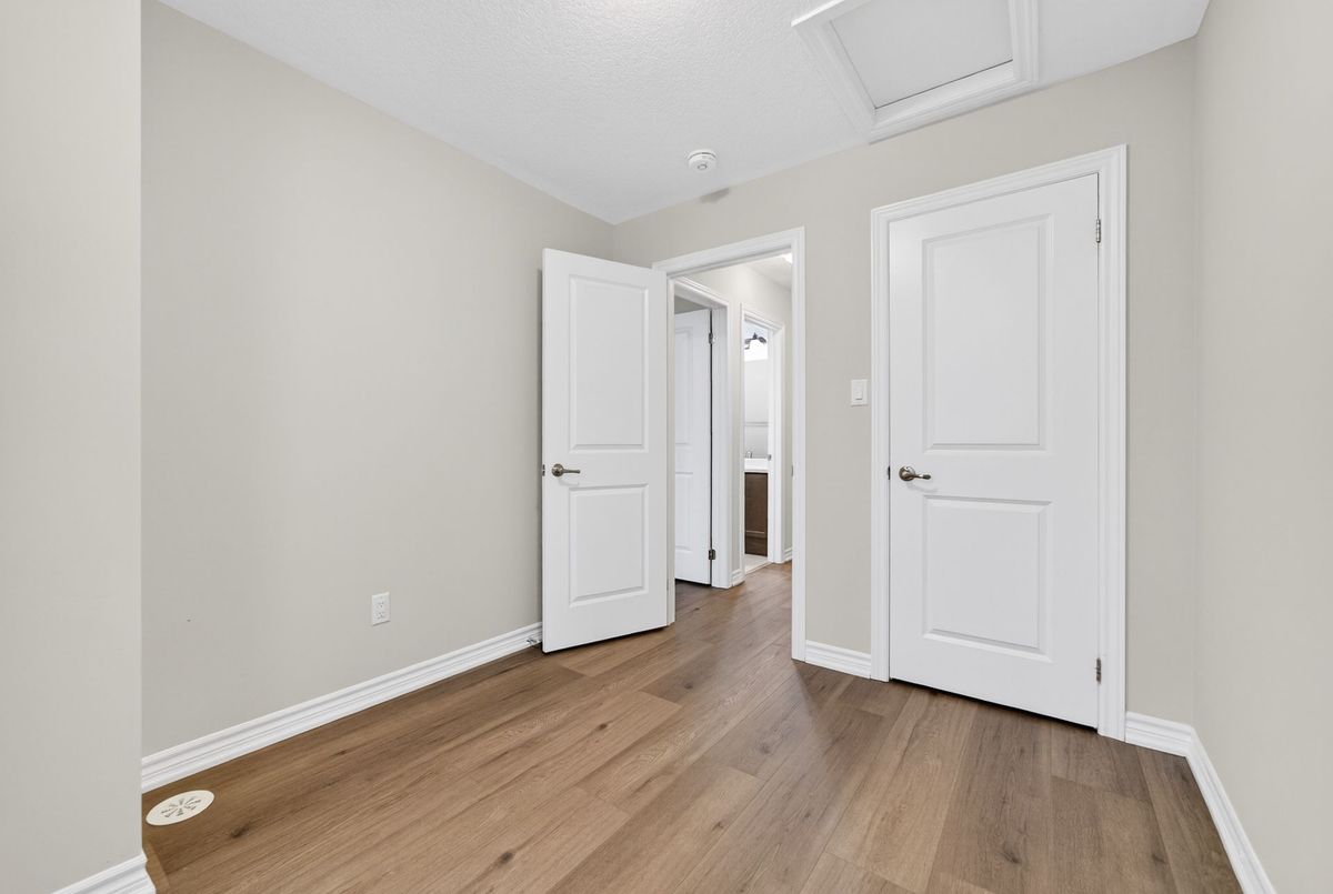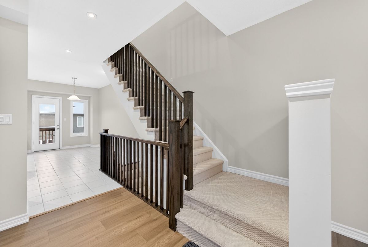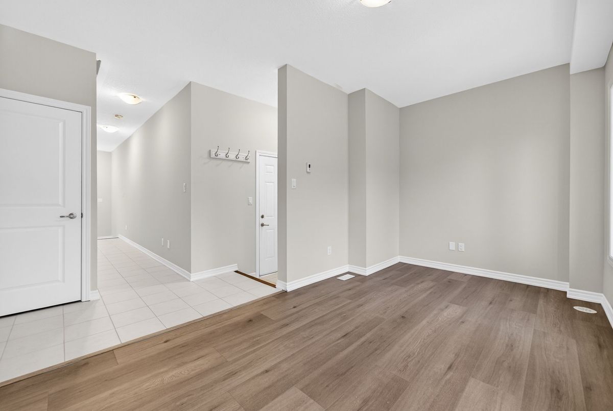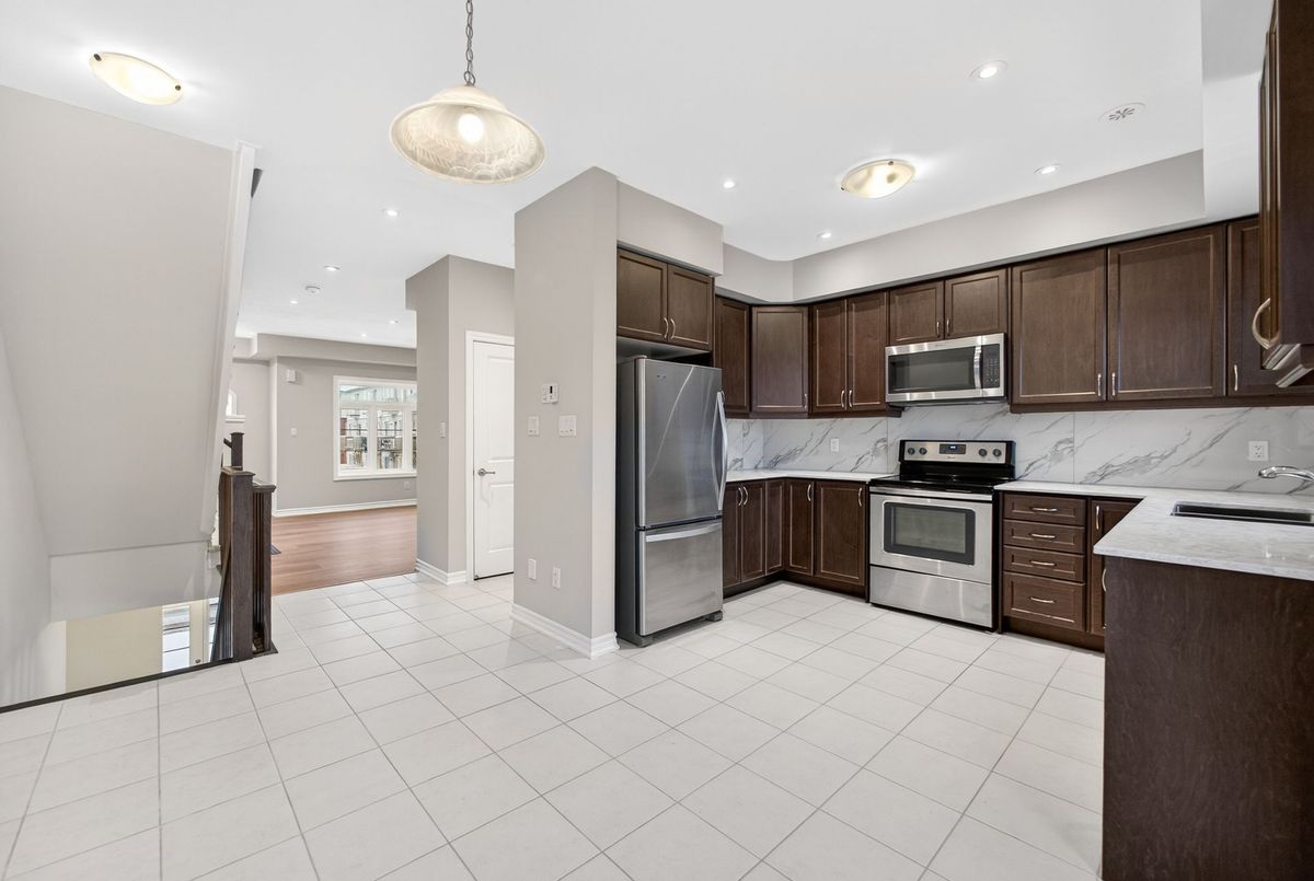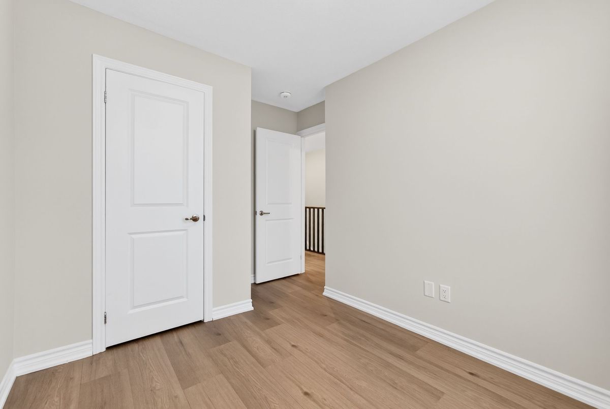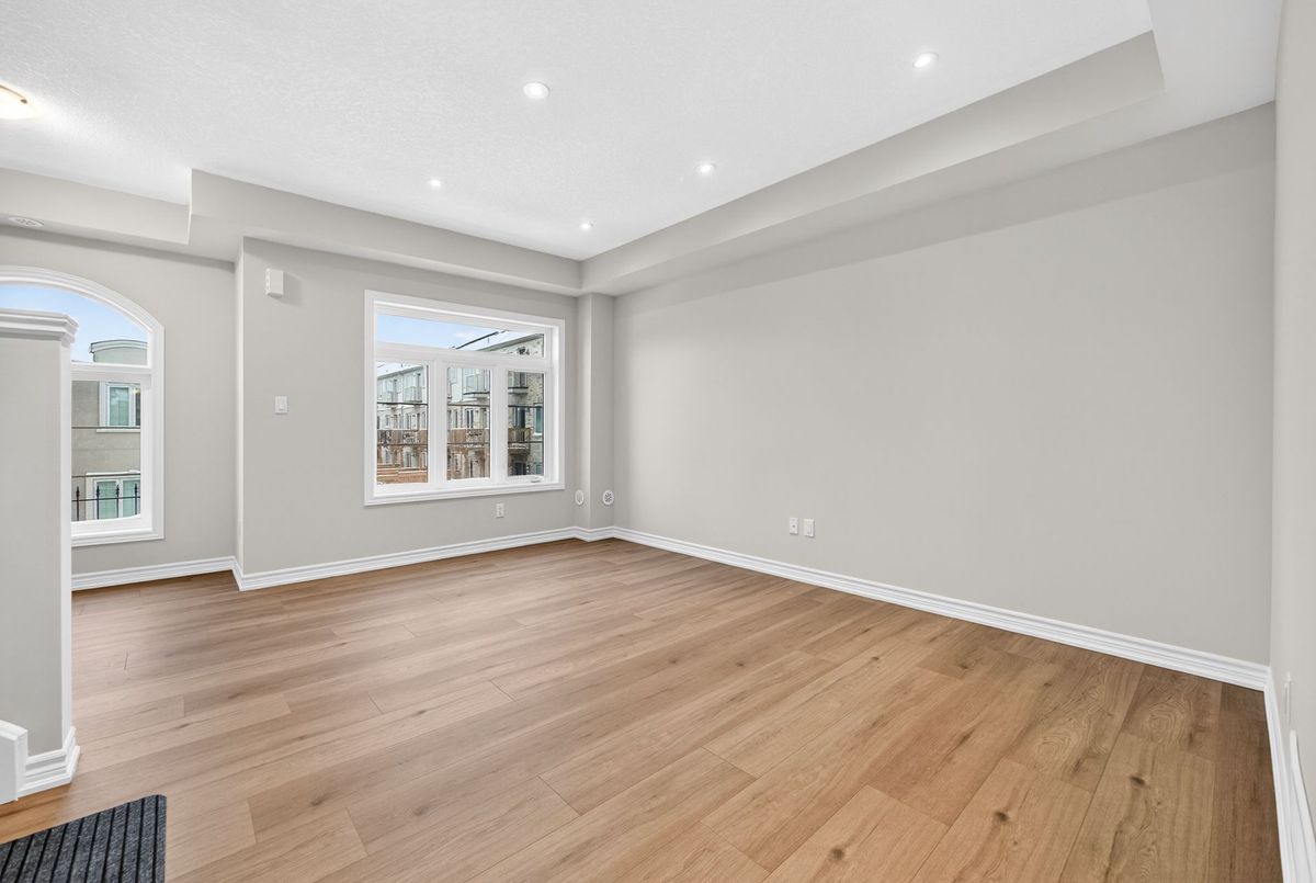 Modern, Sun-Filled Townhome in Prime Waterdown Location - Move-In Ready, Welcome to this beautifully maintained, move-in-ready 3-storey townhouse offering just under 2,000 sq. ft. of thoughtfully designed living space, perfectly suited for first-time home buyers, downsizers, and savvy investors. Ideally located steps from a serene pond and scenic walking trails, this freshly painted 3-bedroom, 2.5-bath home features brand-new laminate flooring, 9-foot ceilings, and an abundance of natural light throughout. Situated in the heart of Waterdown's vibrant and family-friendly community, enjoy walking distance to shops, parks, and schools, with quick access to major highways-making it an excellent choice for commuters and tenants alike. The versatile ground level offers a flexible space ideal as a bedroom, recreation room, or private home office, complete with a walkout to the patio and deck, plus direct access to the attached garage. An unfinished basement provides ample storage or future customization potential-perfect for added value.The open-concept main floor is designed for everyday living and entertaining, featuring a bright living and dining area with large windows and pot lights. The modern kitchen boasts quartz countertops, a contemporary backsplash, stainless steel appliances, and a walkout to a Juliette balcony. A convenient powder room completes this level. Upstairs, the spacious primary retreat offers a walk-in closet, a luxurious 4-piece ensuite with glass walk-in shower, and private balcony access. Two additional bedrooms provide flexibility for family, guests, or work-from-home needs. Upper-level laundry adds everyday convenience. All builder upgrades included.A perfect blend of location, functionality, and modern design, this home presents an excellent opportunity to live comfortably, downsize smartly, or invest confidently in one of Waterdown's most desirable neighbourhoods.Don't miss this exceptional opportunity.