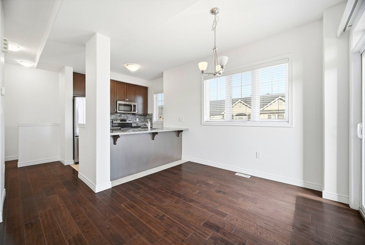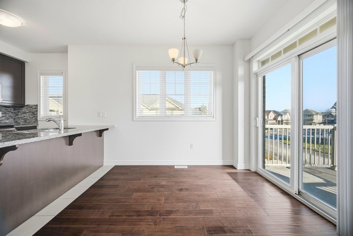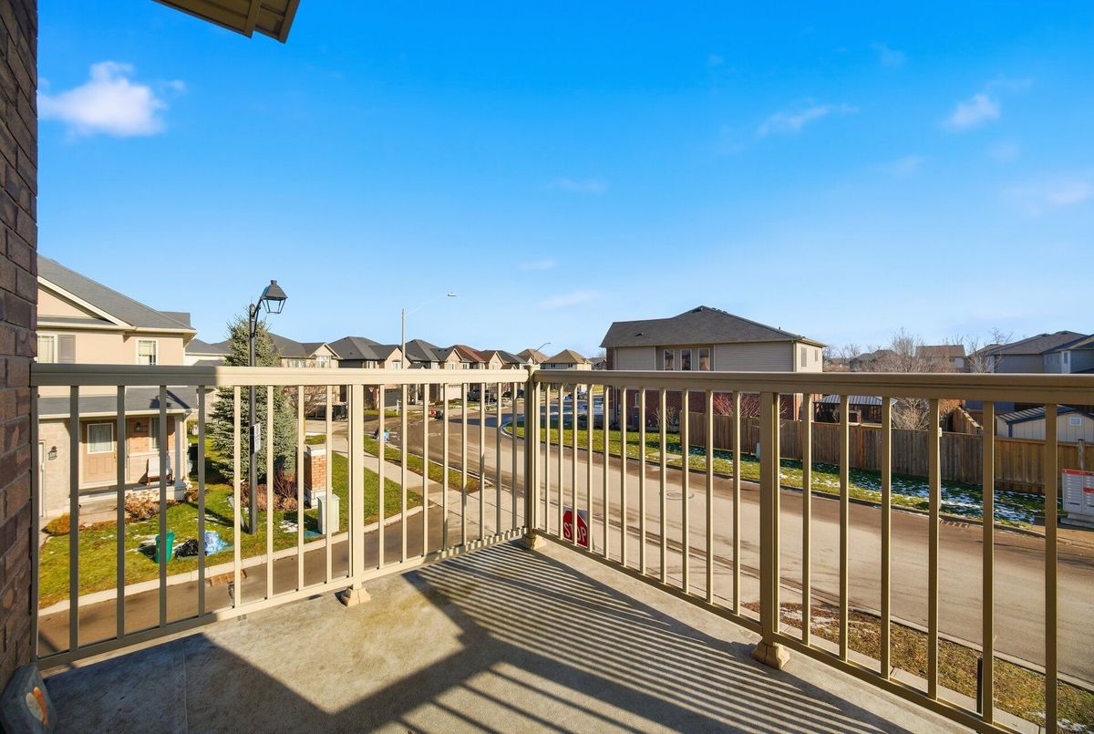 Welcome Home To This Bright, Full of Natural Light, Stunning and Graceful 3 Storey CORNER Urban Townhome in The Much Sought after Heritage Green area of Stoney Creek. Ideal for Singles, Young Couples/Families This Corner Freehold Offers a lot. Welcoming Huge Foyer adds additional space (can be used as an office). 2nd Floor w/ Gleaming Hardwood Floors & 9' Ceilings. Beautiful Maple Kitchen w/ upgraded extended cabinets, Granite Counters Stainless Steel appliances and Under Cabinet Valance is sure to impress. Breakfast Bar to Enjoy quick bite w/ family. Separate Dining area to entertain family and friends. Open balcony to enjoy summer months .3rd Floor offering 3 spacious bedrooms and full washroom. Close to parks, plaza and other amenities. This house has no backyard .