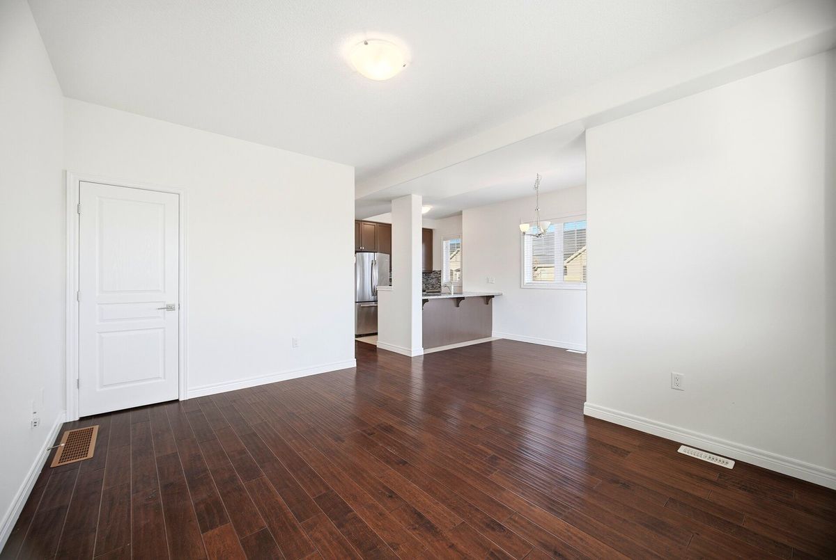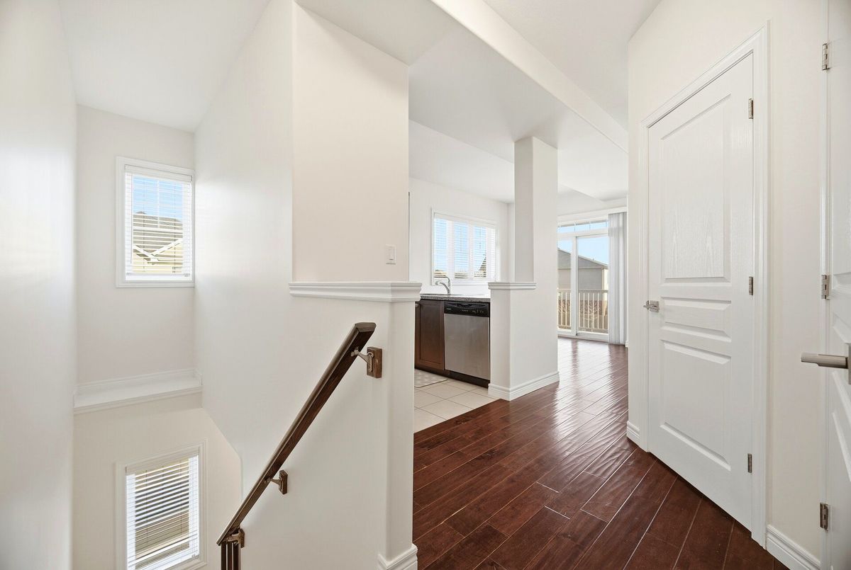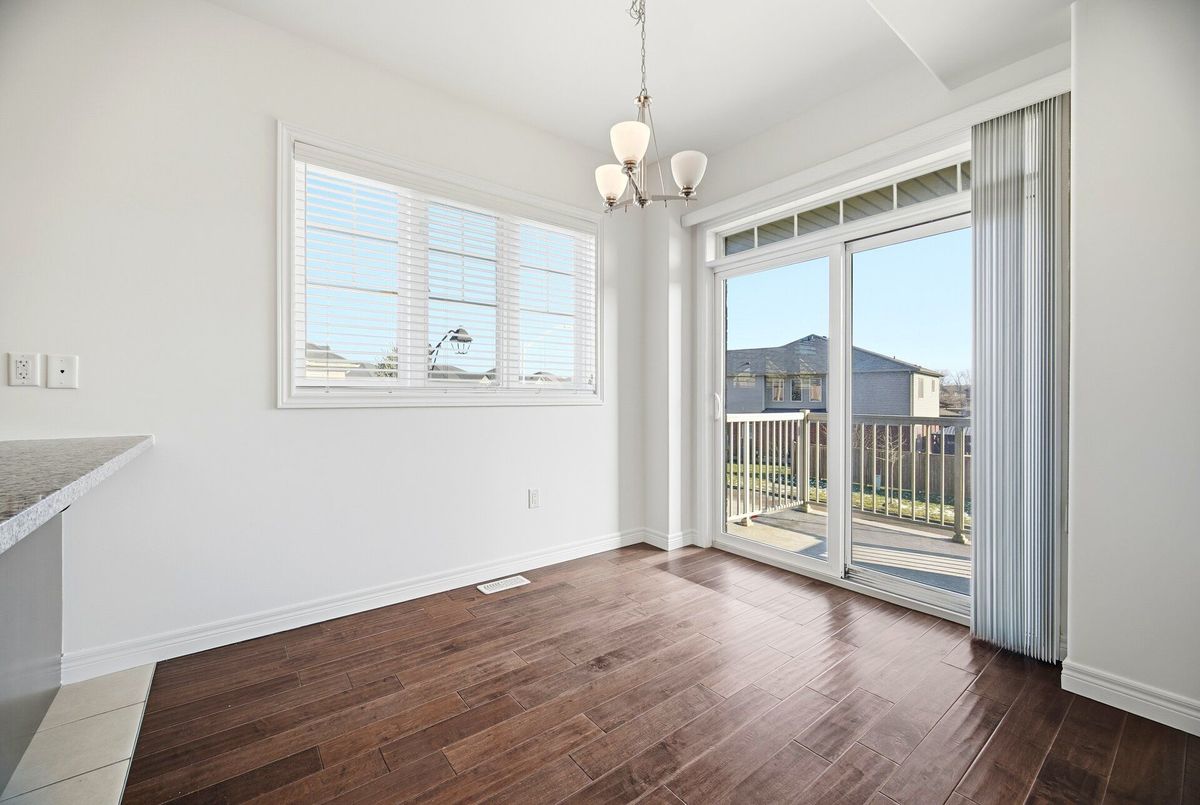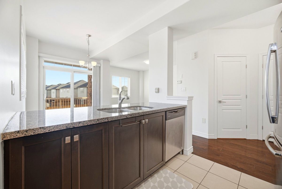 Welcome Home To This Bright, Full of Natural Light, Stunning and Graceful 3 Storey CORNER Urban Townhome in The Much Sought after Heritage Green area of Stoney Creek. Ideal for Singles, Young Couples/Families This Corner Freehold Offers a lot. Welcoming Huge Foyer adds additional space (can be used as an office). 2nd Floor w/ Gleaming Hardwood Floors & 9' Ceilings. Beautiful Maple Kitchen w/ upgraded extended cabinets, Granite Counters Stainless Steel appliances and Under Cabinet Valance is sure to impress. Breakfast Bar to Enjoy quick bite w/ family. Separate Dining area to entertain family and friends. Open balcony to enjoy summer months .3rd Floor offering 3 spacious bedrooms and full washroom. Close to parks, plaza and other amenities. This house has no backyard .