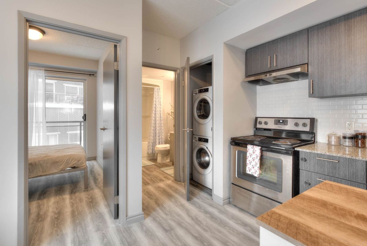 Looking for the ideal one-bedroom plus den home in the heart of Waterloo? Explore 275 Larch Street, Unit 216-a beautifully renovated condo that combines modern design with a prime location. Just minutes from the University of Waterloo, Wilfrid Laurier University, Conestoga College, shopping, dining, and all the city's vibrant amenities, this unit is perfect for students, professionals, or investors. Inside, an open-concept layout welcomes you with comfort and versatility, ideal for relaxing, studying, or entertaining. Large windows bathe the space in natural light, while contemporary finishes and warm tones create a cozy, inviting atmosphere. The bedroom is generously sized, and the den provides flexible space for work, study, or hobbies. The updated four-piece bathroom adds a touch of style and luxury. With convenient access to Waterloo Park, transit, top-rated restaurants, and more, this home offers unmatched lifestyle and convenience. Schedule your private tour today!