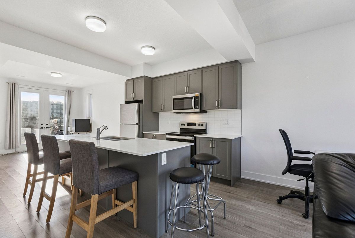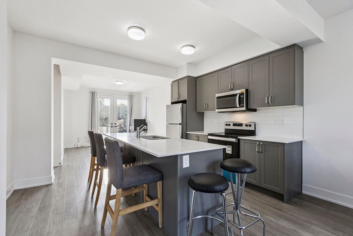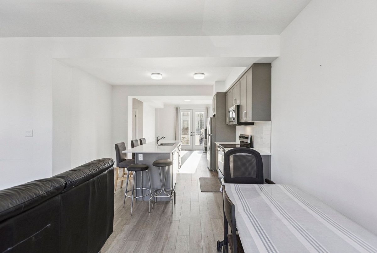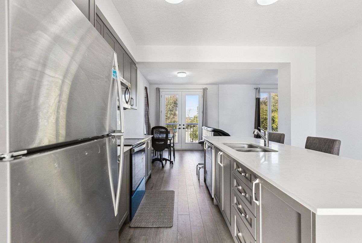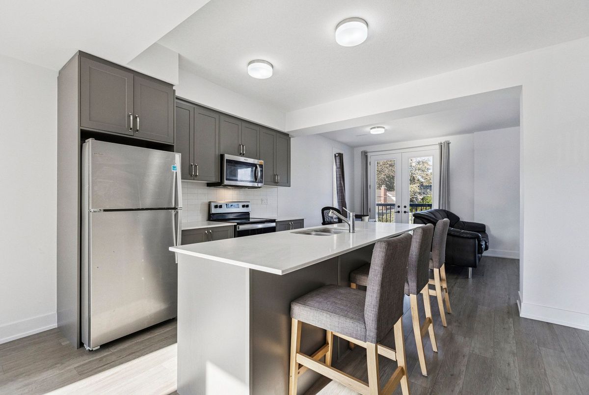 Live in the heart of Waterloo, in an area where Google and the tech community thrive! This executive-style, nearly new 3-bedroom, 2.5-bathroom home offers over 1,850 sq. ft. of modern luxury. Bright interiors feature massive picture windows and 9-ft ceilings, while the upgraded kitchen and bathrooms showcase quartz countertops, stainless steel appliances, and luxury vinyl plank flooring, plus in-suite laundry. Upstairs, three generously sized bedrooms include a primary suite with walk-in closet, ensuite bath with quartz vanity and standing shower, and a step-out balcony. Perfectly located, enjoy easy access to the LRT, Google, the tech corridor, University of Waterloo, Wilfrid Laurier University, Grand River Hospital, and Downtown Kitchener with shopping, dining, and parks. Outdoor enthusiasts will love the Spur Line Trail next door and a new park coming soon. Ideal for end-users or investors, this property offers strong rental potential in one of Waterloos most sought-after neighborhoods. *Disclaimer: Some images have been virtually staged to help visualize the property's potential. Furniture and decor are for illustrative purposes only.*