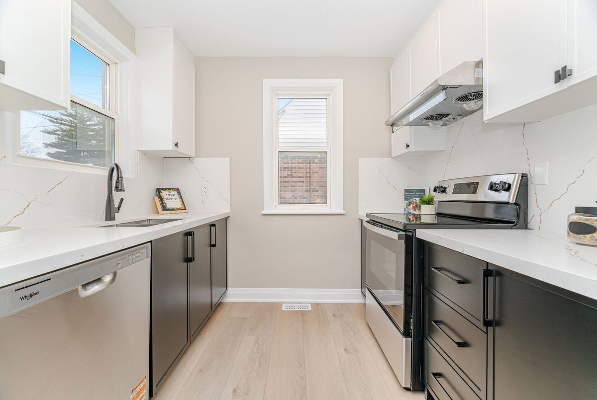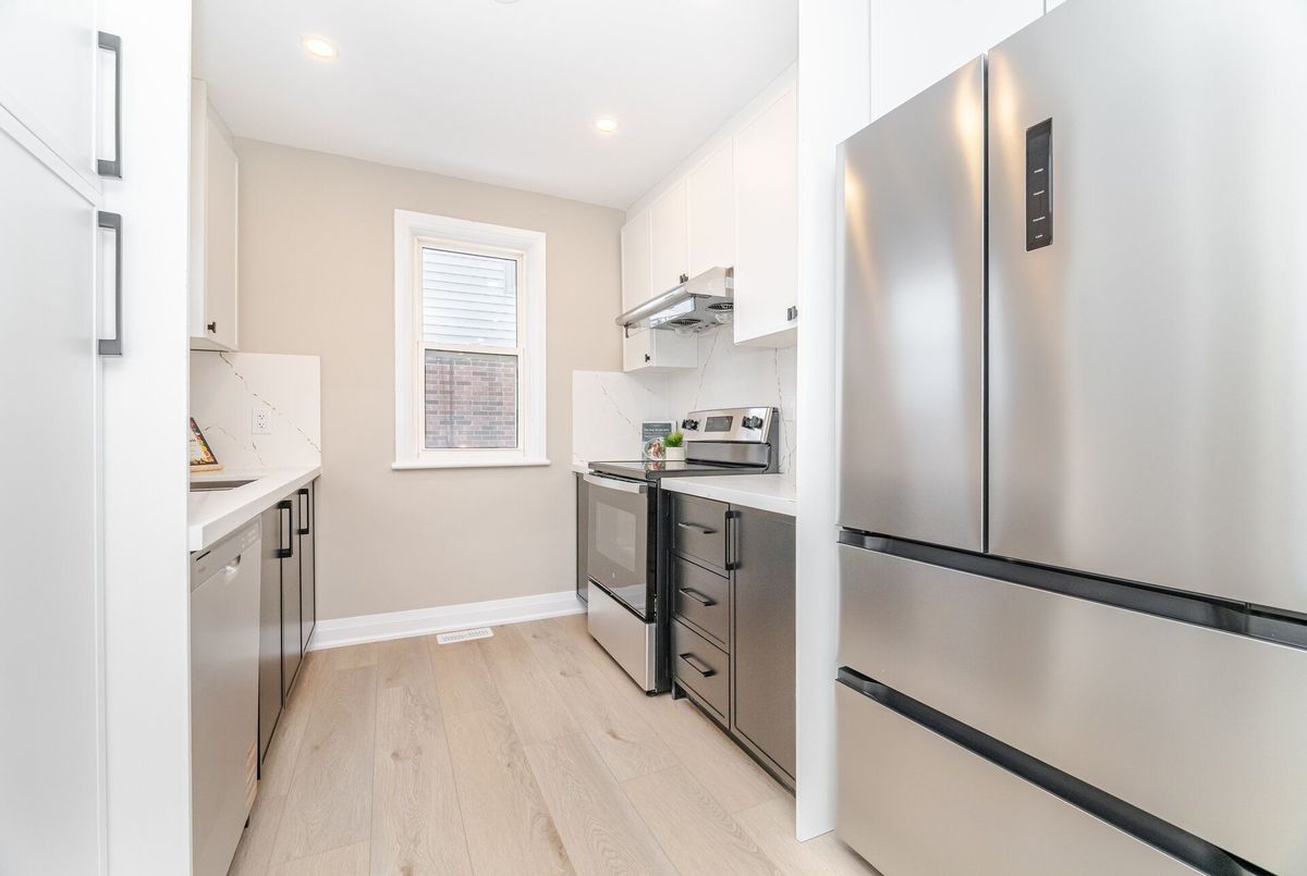 Introducing 635 Queensdale Avenue East - a beautifully renovated family home backing directly onto Eastmount Park in Hamilton's desirable Central Mountain. Fully transformed with modern finishes and rare features, this home offers exceptional functionality, natural light, and a layout designed for today's families.The bright and welcoming main level features a brand-new kitchen with stylish finishes and new appliances, a cozy breakfast area, a separate dining room, and a versatile bedroom overlooking the park. A comfortable living room and updated 4-piece bathroom complete this level.Upstairs, discover two generously sized bedrooms and a rare second full bathroom, newly added and thoughtfully designed.The fully finished basement with a separate entrance provides excellent in-law or extended family potential. It includes a spacious recreation room, an additional bedroom, an office/play area nook, and a new 2-piece powder room.Outside, enjoy exceptional privacy in the large, park-facing backyard, with no rear neighbours and direct access to green space. The extra-deep driveway accommodates at least three vehicles, with new asphalt to be completed by the seller (weather permitting). Recent updates include:Brand-new roof,New kitchen with appliances,High-end waterproof vinyl flooring throughout,Updated main-floor 4-piece bath,Newly added 3-piece bath on second level,New basement powder room,New doors, trims, pot lights, and fixtures Ideally located with convenient access to hospitals, transit, schools, parks, and community amenities, this move-in-ready home combines comfort, style, and an unbeatable park-side setting. A rare opportunity on the Central Mountain - completely updated and ready to enjoy. The Seller willing to build closets in 2nd floor bedrooms.