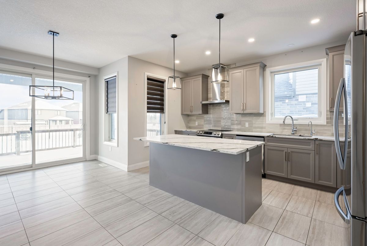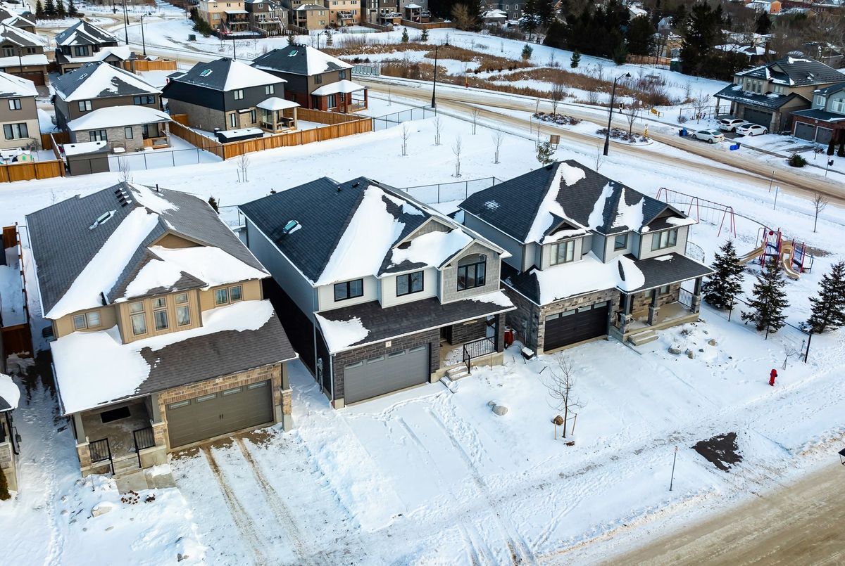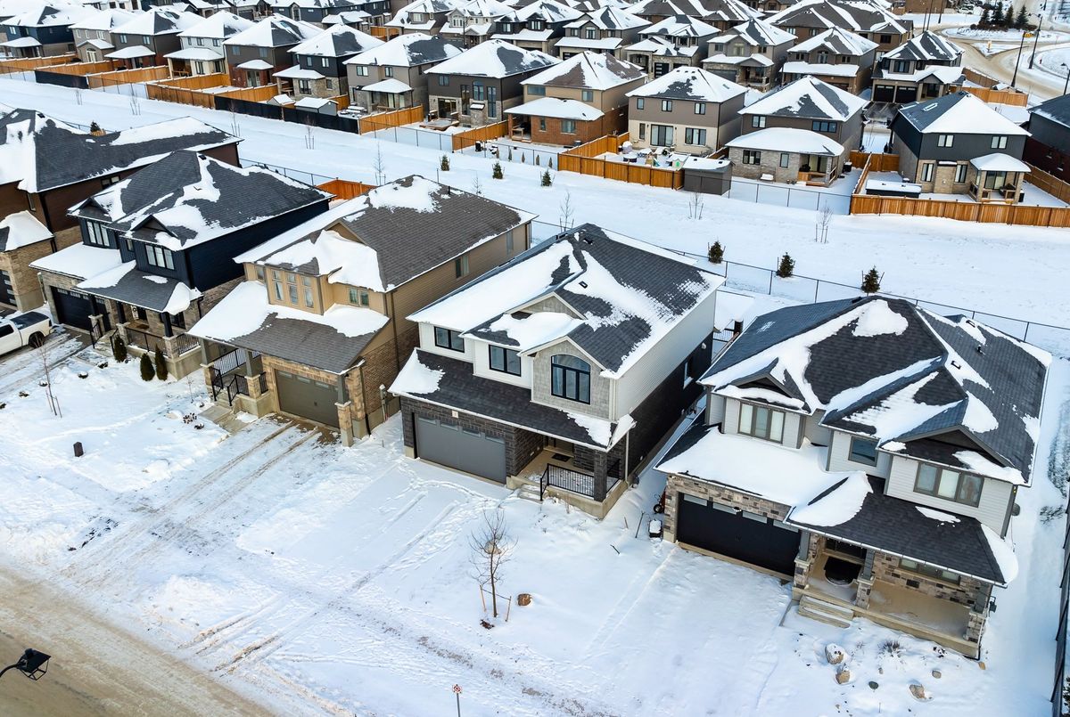Built in 2022 by Thomasfield, this light-filled and thoughtfully designed home in Grand Valley offers 2,564 square feet of modern living space (as per MPAC) with four bedrooms and three bathrooms. A covered front porch leads into an open-concept main floor where the contemporary kitchen features quartz countertops and backsplash, stainless steel appliances, under-cabinet lighting, a walk-in pantry, and seamless flow into the dining area and vaulted living room. Overlooking the main living space is a versatile loft, ideal for a home office, playroom, or media room. The main floor also includes convenient laundry, interior access to the double garage, and a private primary suite complete with a spa-inspired ensuite featuring double vanities and a glass-enclosed shower. Step outside from the dining area onto a fully covered deck and enjoy a peaceful, private backyard backing onto green space and walking trails, perfect for quiet mornings or relaxed evenings. The unfinished basement includes a roughed-in bathroom and cold room, offering excellent potential for future customization. Additional highlights include an oak staircase, water softener, bonus loft room, covered deck walkout, and modern finishes throughout.
