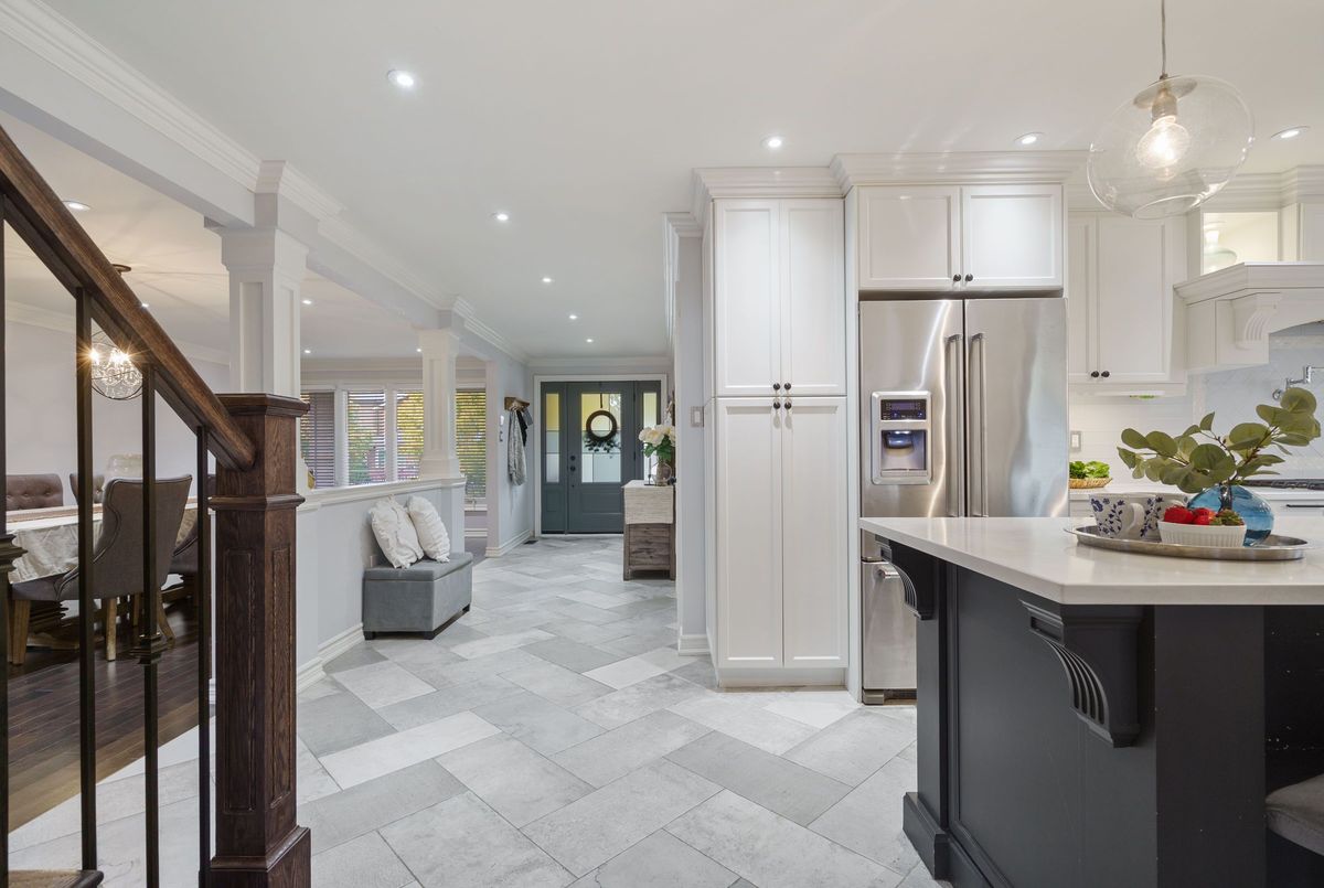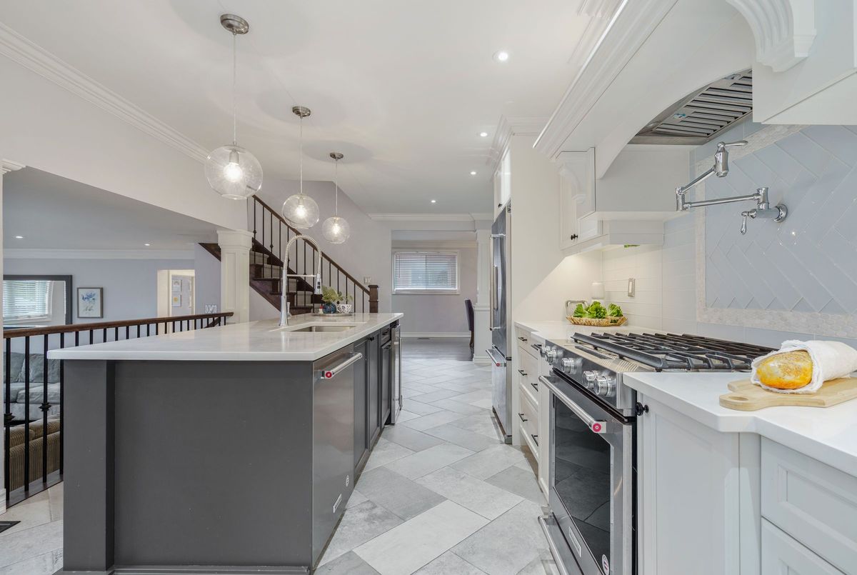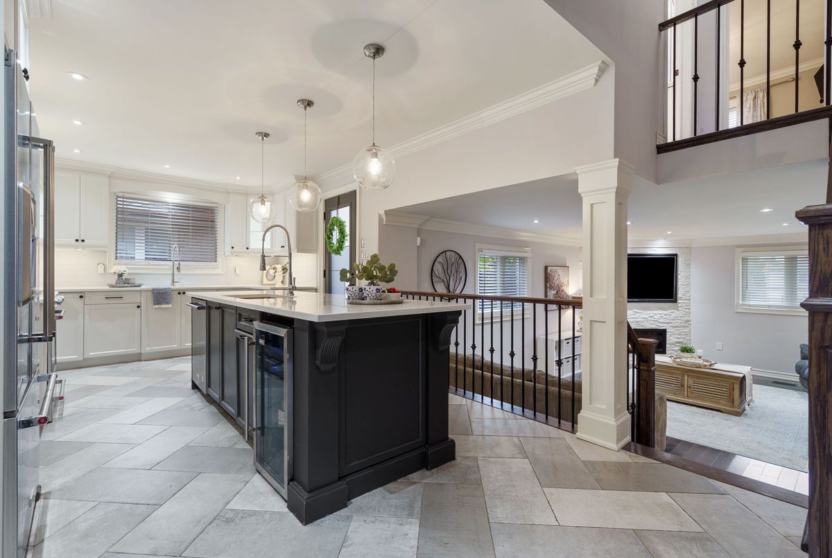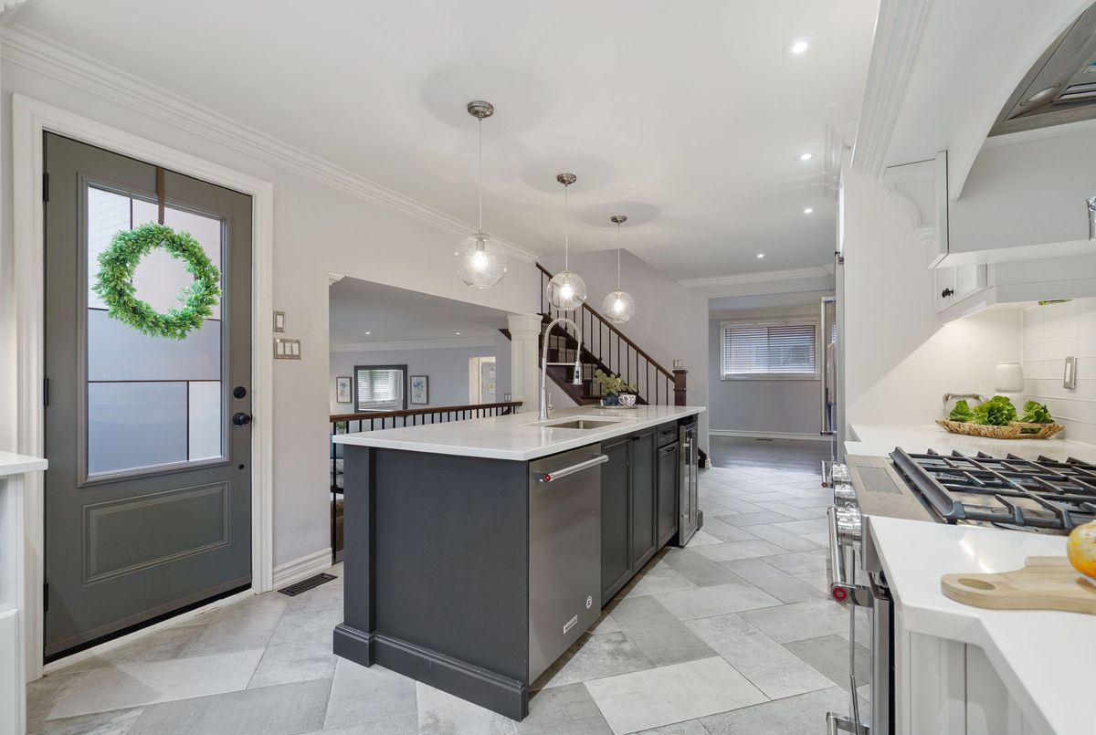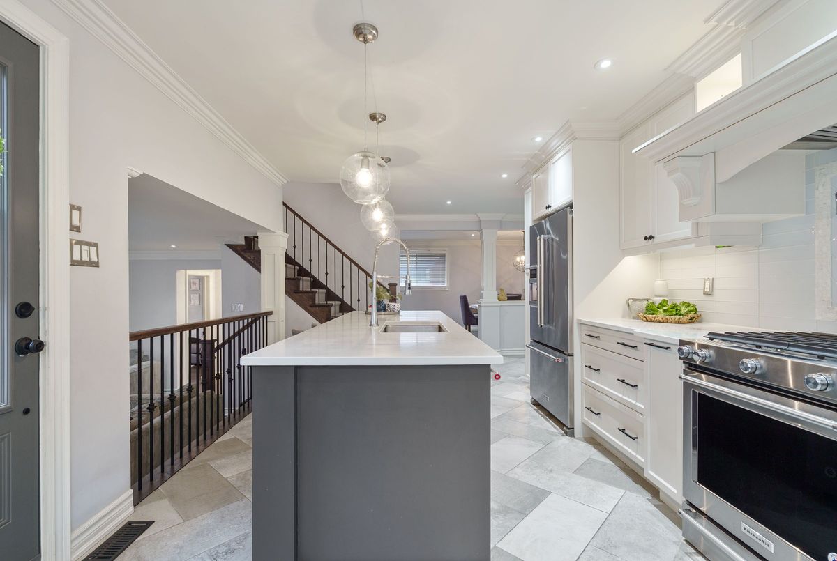 Welcome to this beautifully renovated all-brick 5-level backsplit offering over 2,005+ sq. ft. of finished living space above grade, perfectly situated on a quiet, tree-lined street just steps from Ferris Park. This exceptional home blends timeless craftsmanship with modern upgrades and offers excellent in-law potential, featuring a separate entrance to the basement with a second kitchen already in place. The main level showcases a bright open-concept layout with hardwood maple flooring, crown moulding, and pot lights throughout. The stunning custom maple kitchen is a true showpiece, featuring solid soft-close cabinetry, dual sinks, a 9-ft quartz island, pot filler over the gas stove, under-cabinet lighting, glass backsplash and stainless steel appliances-striking the perfect balance of beauty and function. Just two steps down, the spacious family room welcomes you with a custom-built stone gas fireplace, ideal for gatherings or relaxing nights in. Conveniently located on this level is a 3-piece bath and a versatile rec room or fourth bedroom, perfect for guests, a home office, or playroom. The elegant wrought iron staircase connects all levels seamlessly. Upstairs, you'll find three generous bedrooms and a beautifully renovated 4-piece bath with custom cabinetry and premium finishes. The fourth and fifth levels are partially finished, ready to unlock approximately 700+ sq. ft. on the fourth level and an additional 600 sq. ft. on the fifth, providing substantial potential to expand living space. Outside, enjoy a fully fenced backyard with an irrigation system, a two-car garage, and a wide private driveway. Recent updates include a new roof, air conditioning, and furnace (2023). Located close to parks, schools, transit, and shopping, with QEW access in under five minutes, this move-in-ready Stoney Creek home perfectly combines modern comfort, space, and style.