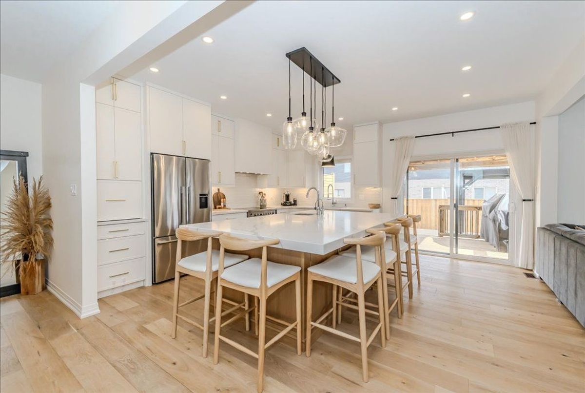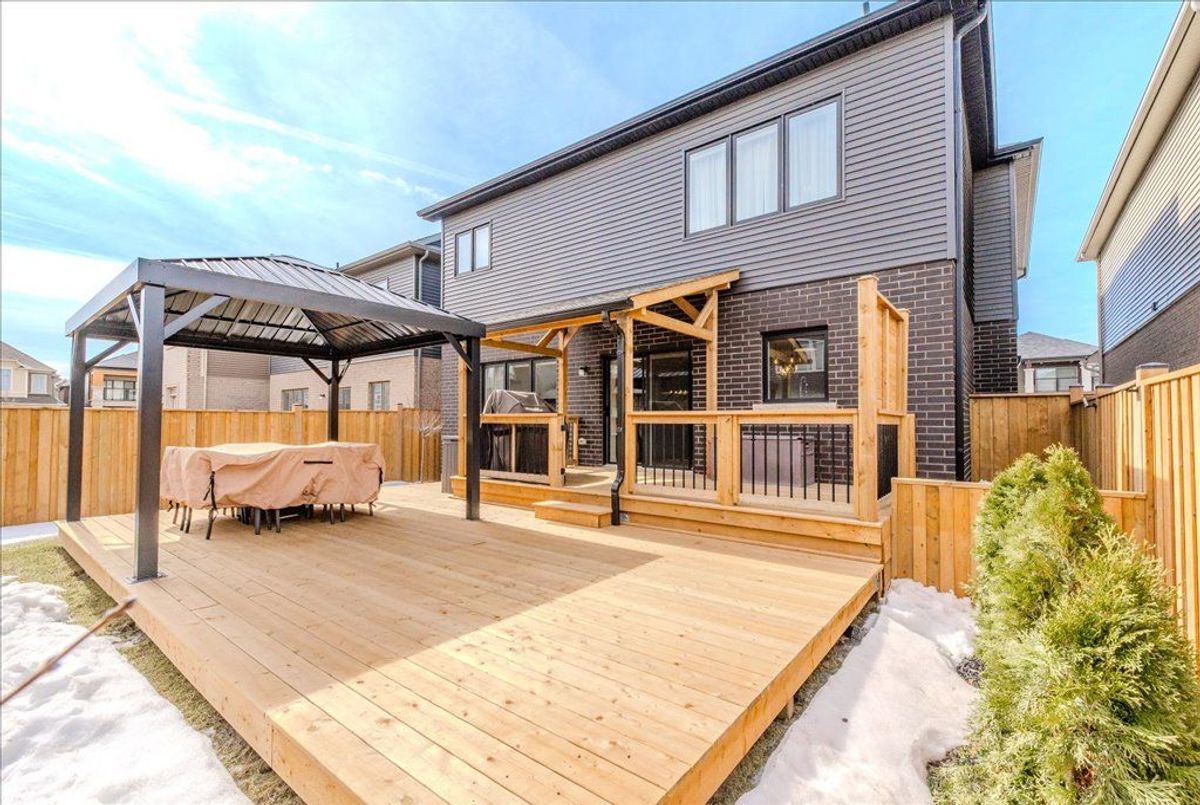 Stunning 4-bedroom, 3.5-bathroom home in the heart of Paris, Ontario, built by LIV Communities, offering 2,646 sq ft of luxurious living space. This fully upgraded home features wide plank European white oak hardwood throughout, 9-foot ceilings on the main floor, and custom lighting and window shades throughout (2022). The grand living room boasts a quarried stone fireplace with custom white oak built-ins and a large premium Napoleon gas fireplace (2023). The chef-inspired kitchen (2022) is a dream, with floor-to-ceiling soft-close cabinetry, a 36" Fischer & Paykel induction range, Miele dishwasher, and an oversized quartz island with seating for six. Enjoy convenient extras like a built-in Insinkerator for instant near-boiling water, reverse osmosis system, a large pantry, and hidden appliance garage.The spacious primary ensuite offers a large double vanity, tempered glass shower, and a large soaker tub. Two more bedrooms offer a Jack & Jill ensuite bathroom and the third bedroom boasts its own ensuite bathroom. The upstairs is complete with an LG washer and dryer (2021) which provides added convenience. The private backyard features a new wooden privacy fence (2024), a two-tiered deck (20' x 25'), and a new 12' x 10' gazebo, perfect for entertaining. Additional highlights include a 4-car driveway, 2-car garage with Wi-Fi opener, and a covered porch and second floor balcony. The basement is unspoiled and waiting for your finishing touches.This home blends modern upgrades with classic craftsmanship and is ready for you to move in and enjoy.