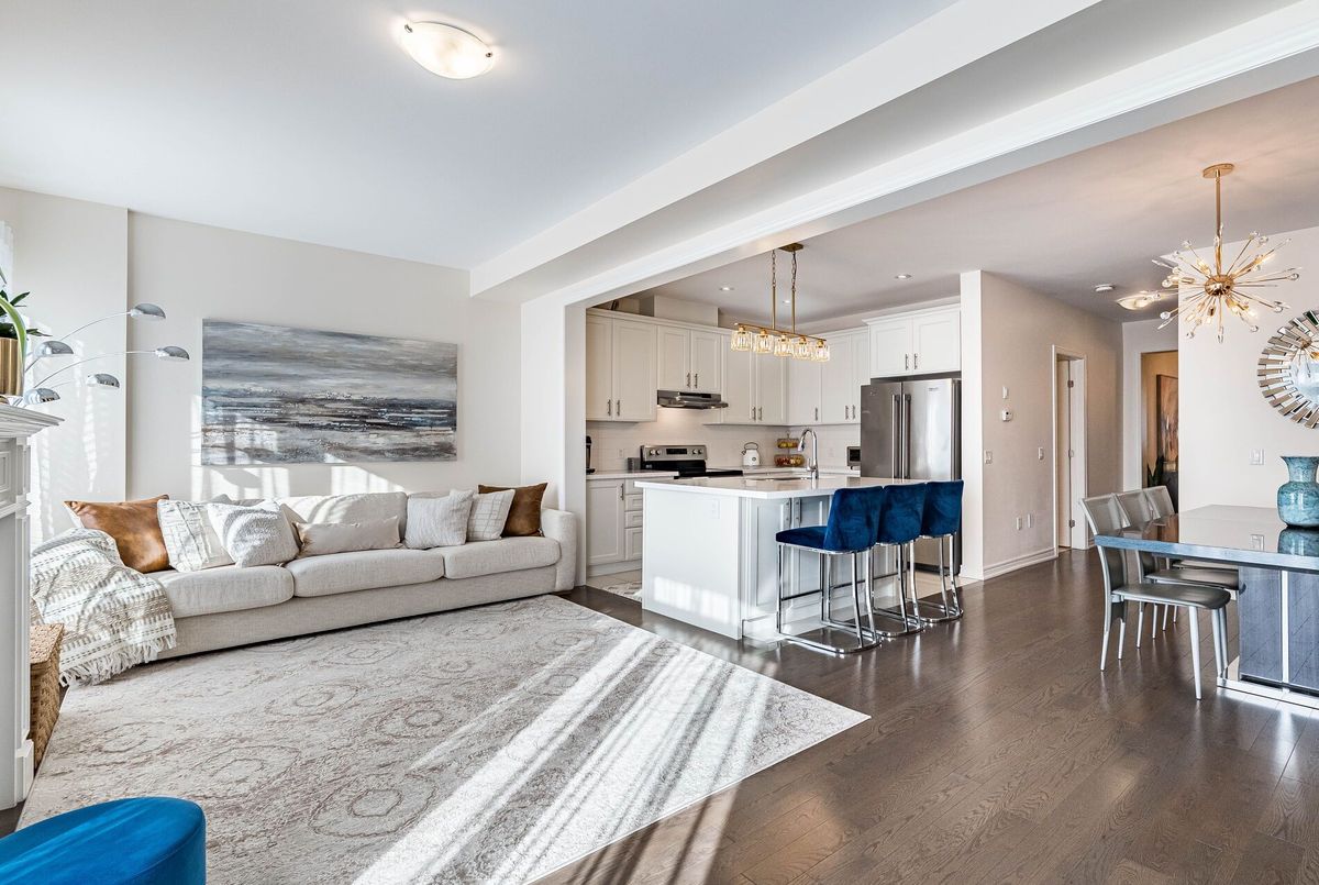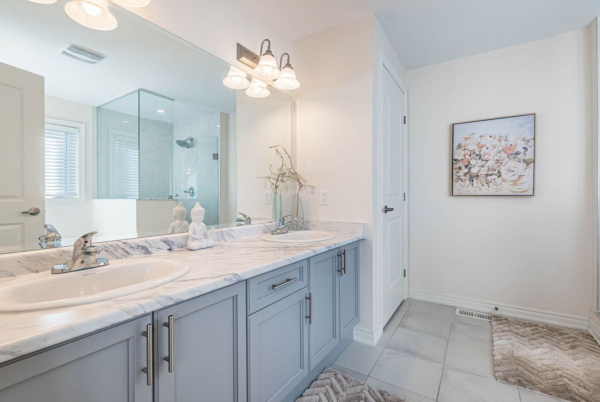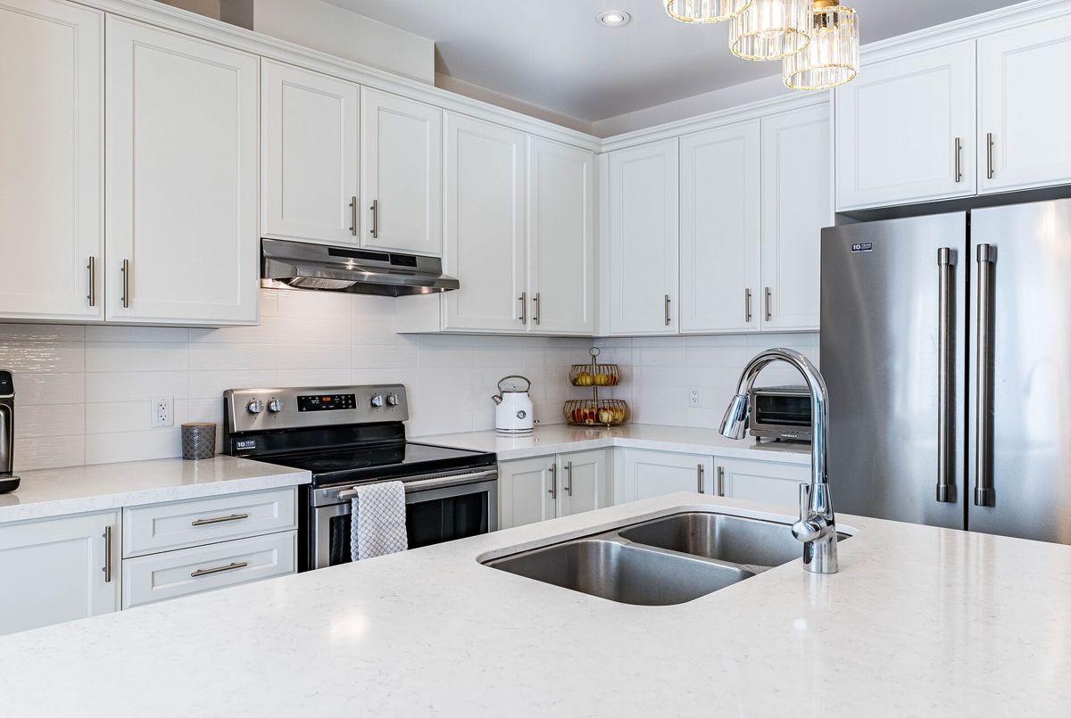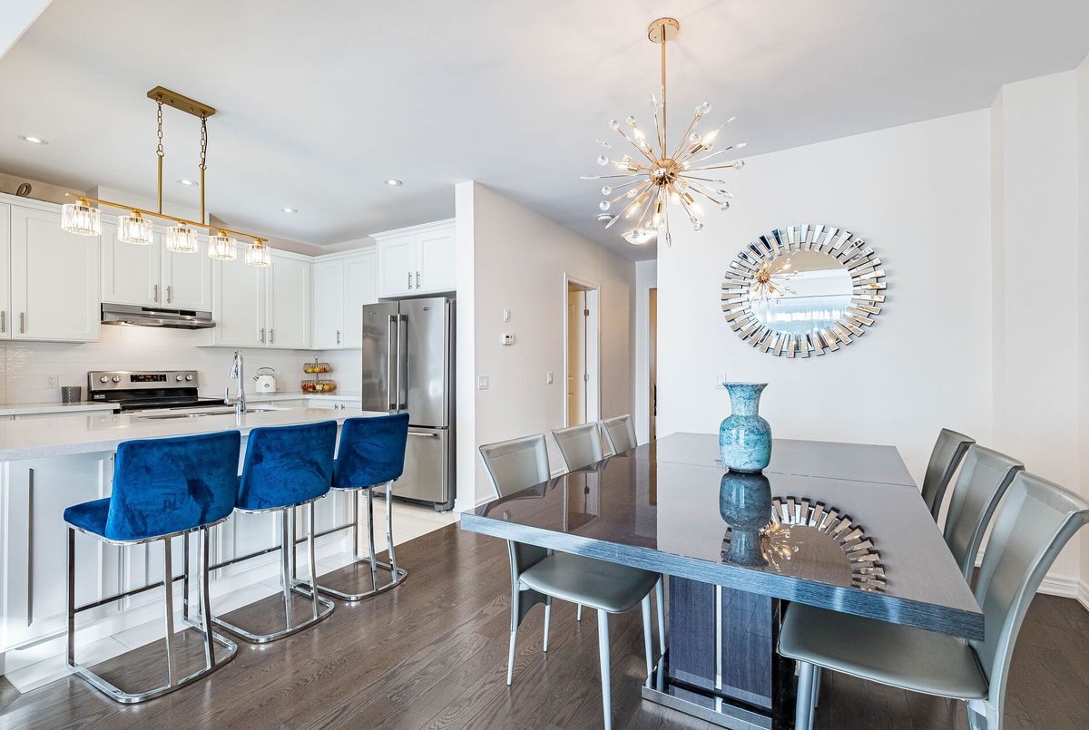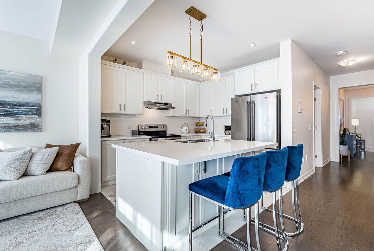 This stunning & spacious 1,987 sq. ft. bright townhouse offers modern living at its finest and is even larger than many semi-detached homes in the neighborhood. It features 3 generously sized bedrooms and 2.5 baths, with hardwood floors throughout, including brand-new hardwood flooring and fresh paint in all bedrooms (2025). The kitchen features a quartz countertop, elegant backsplash (2025), pot lights, stainless steel appliances, and large windows that bring in natural light. Master bedroom offers a spacious walk-in closet, upgraded blinds, and a luxurious ensuite with double sinks, a glass shower, and a modern tub. The bright backyard, with a newer fence (2023), is perfect for entertaining or relaxing. A bright, carpet free, move-in-ready home with contemporary charm, thoughtful upgrades, and plenty of space for comfortable living!
