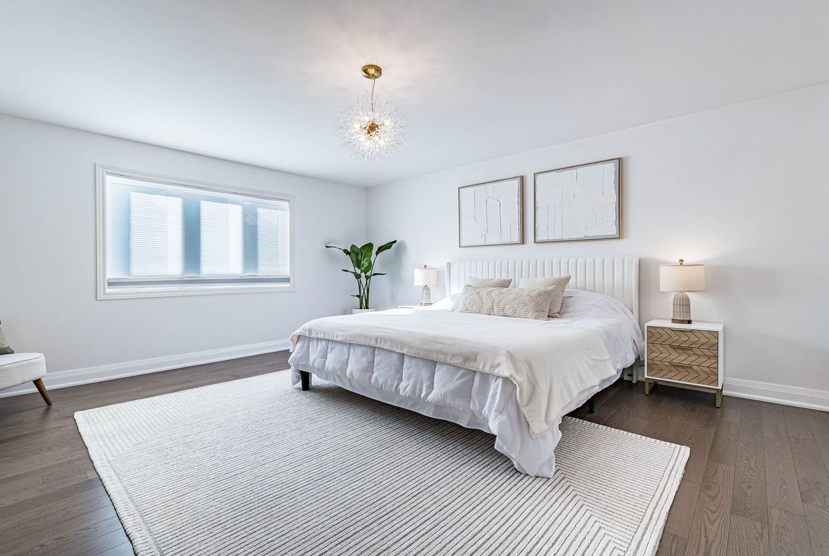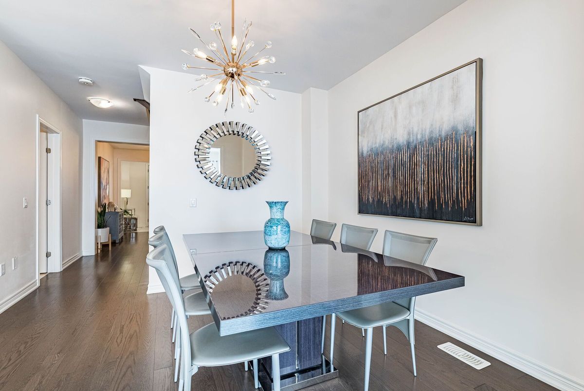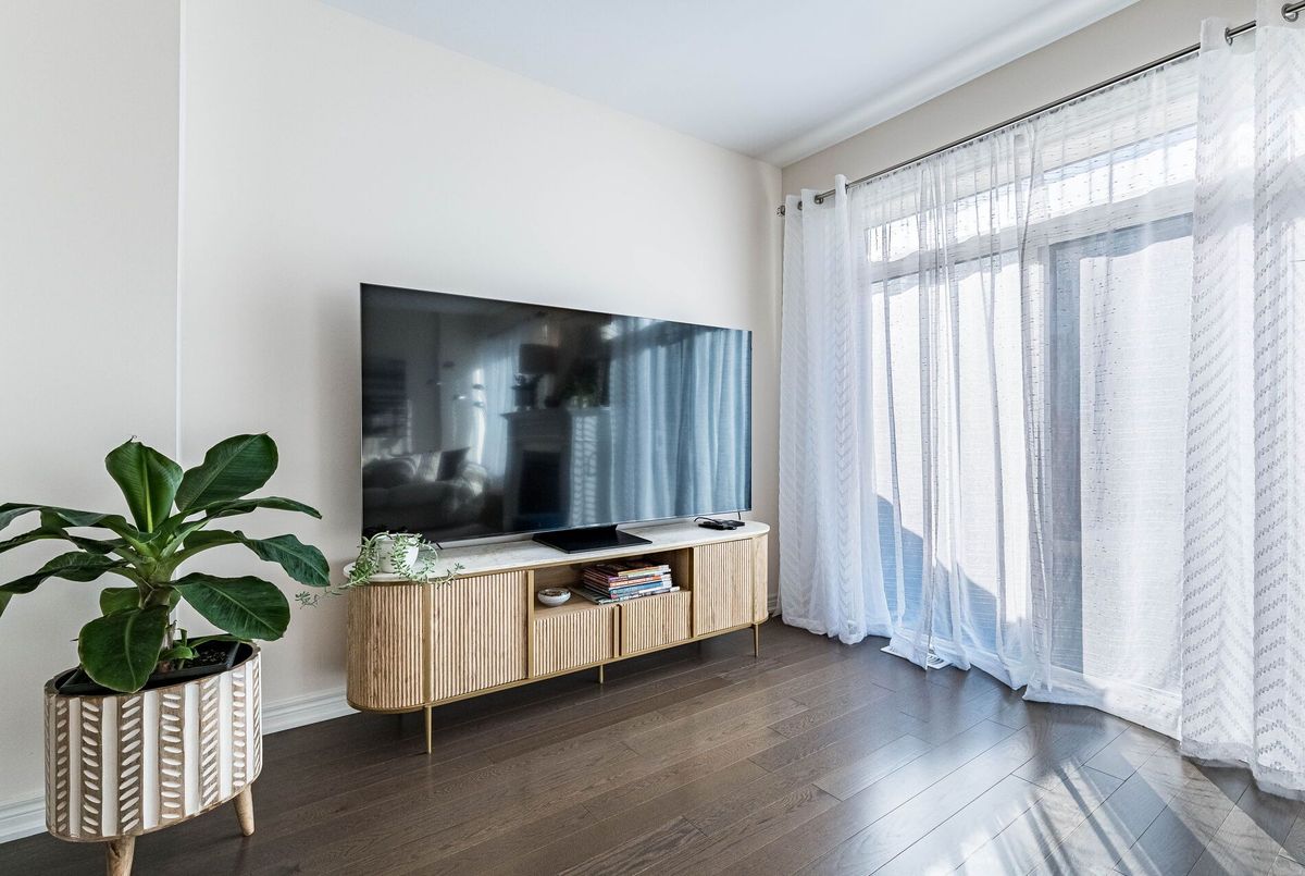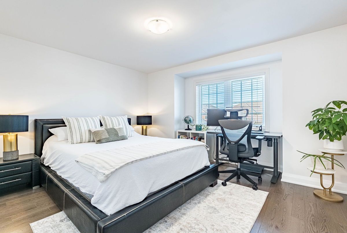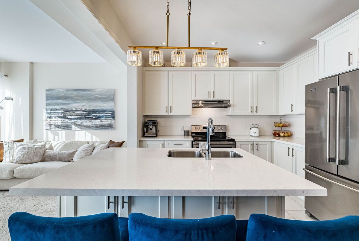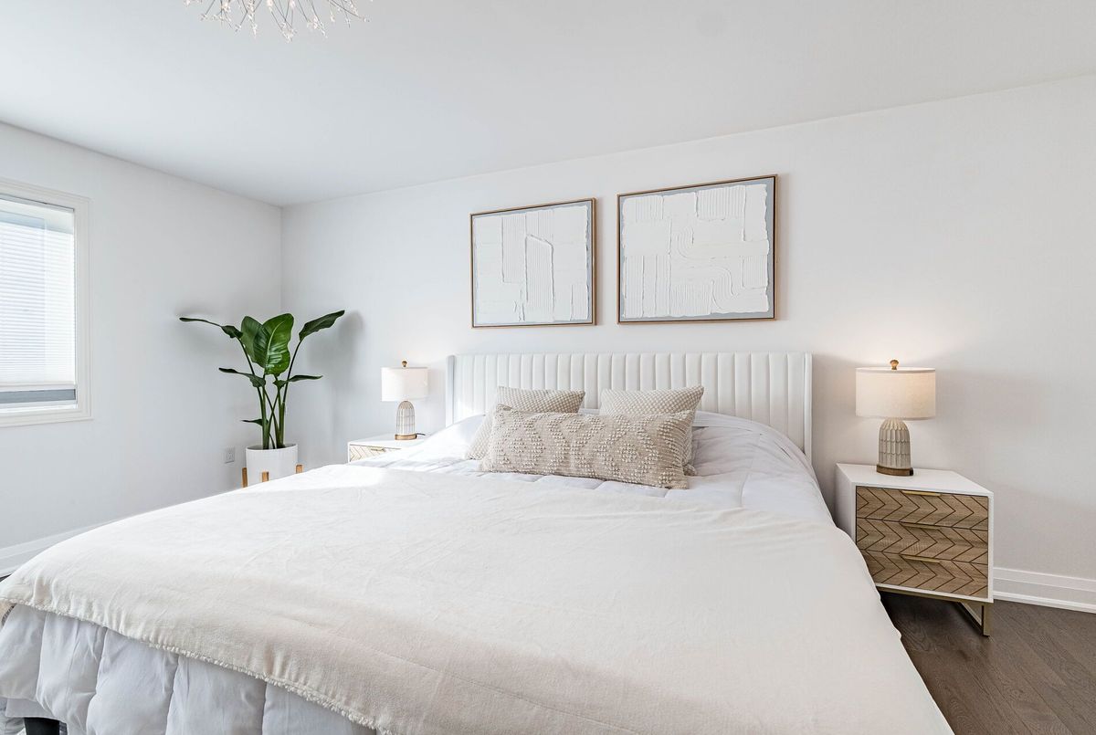 This stunning & spacious 1,987 sq. ft. bright townhouse offers modern living at its finest and is even larger than many semi-detached homes in the neighborhood. It features 3 generously sized bedrooms and 2.5 baths, with hardwood floors throughout, including brand-new hardwood flooring and fresh paint in all bedrooms (2025). The kitchen features a quartz countertop, elegant backsplash (2025), pot lights, stainless steel appliances, and large windows that bring in natural light. Master bedroom offers a spacious walk-in closet, upgraded blinds, and a luxurious ensuite with double sinks, a glass shower, and a modern tub. The bright backyard, with a newer fence (2023), is perfect for entertaining or relaxing. A bright, carpet free, move-in-ready home with contemporary charm, thoughtful upgrades, and plenty of space for comfortable living!