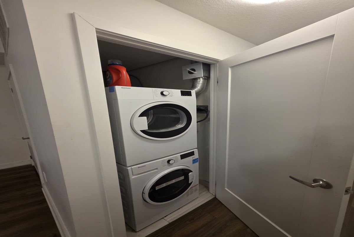 Beautiful 2 bed, 2 full bath end unit offering bright one-level living. Modern kitchen with stainless steel appliances, quartz countertops, tile backsplash, and large eat-at island open to the living room with sliding doors to a private patio. Primary bedroom features a full ensuite, plus a second full bath for guests. In-suite laundry and 1 parking space included. Conveniently located close to shopping, transit, McLennan Park, and highway access.
